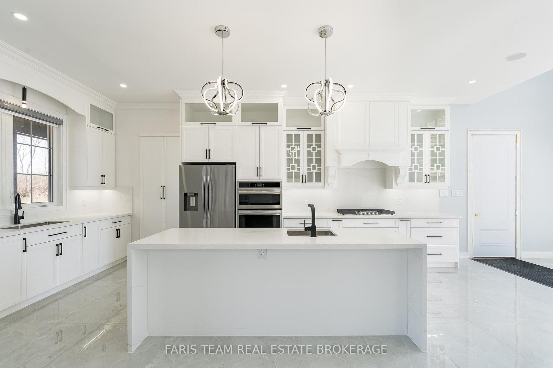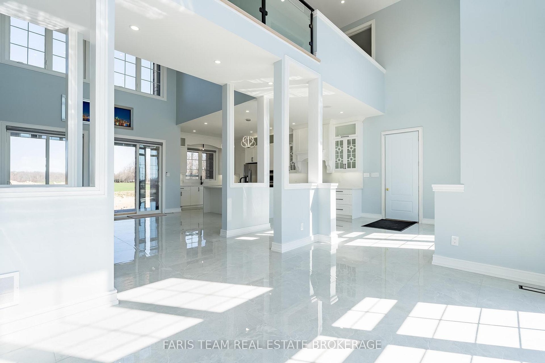 Top 5 Reasons You Will Love This Home: 1) Welcome to a one-of-a-kind, newly built estate where timeless elegance meets cutting-edge design, situated on 3.6 private acres, this architectural gem offers over 4,500 square feet of above-ground living space, meticulously crafted for discerning buyers who appreciate refined finishes, grand scale, and luxurious details 2) From the moment you arrive, the stone exterior and triple car garage hint at the level of excellence within, make your way onto the covered front porch and through custom double doors with decorative glass inserts into a breathtaking foyer with porcelain 24"x48" tiles underfoot and soaring 24' ceilings set the tone for the awe-inspiring interior, where natural light pours through floor-to-ceiling windows in the foyer, living/dining, and family rooms 3) Designed for entertaining and everyday indulgence, the open-concept layout flows seamlessly into an expansive living/dining area and a spectacular chef's kitchen, where no detail has been overlooked, with stunning quartz countertops and waterfall island, gas range, built-in oven and microwave, double sinks, and a large walk-in pantry with direct garage access 4) Five stunning bedrooms, each with a designer ensuite and walk-in closet, provide personal sanctuaries for every member of the household, while the main level principal suite offers convenience and luxury with its spa-like bath and custom walk-in closet, alongside an office on the main level; upstairs you'll find a second principal suite, along with three more bedrooms, a large laundry room, and a catwalk that enhances the homes 5) This home features amenities throughout with an elevator, LED colour-changing lighting, smart frameless mirrors, built-in surround sound, dual furnaces and AC systems for year-round comfort, and a pool and cabana permit available. 4,538 above grade sq.ft. plus an unfinished basement. *Please note some images have been virtually staged to show the potential of the home.