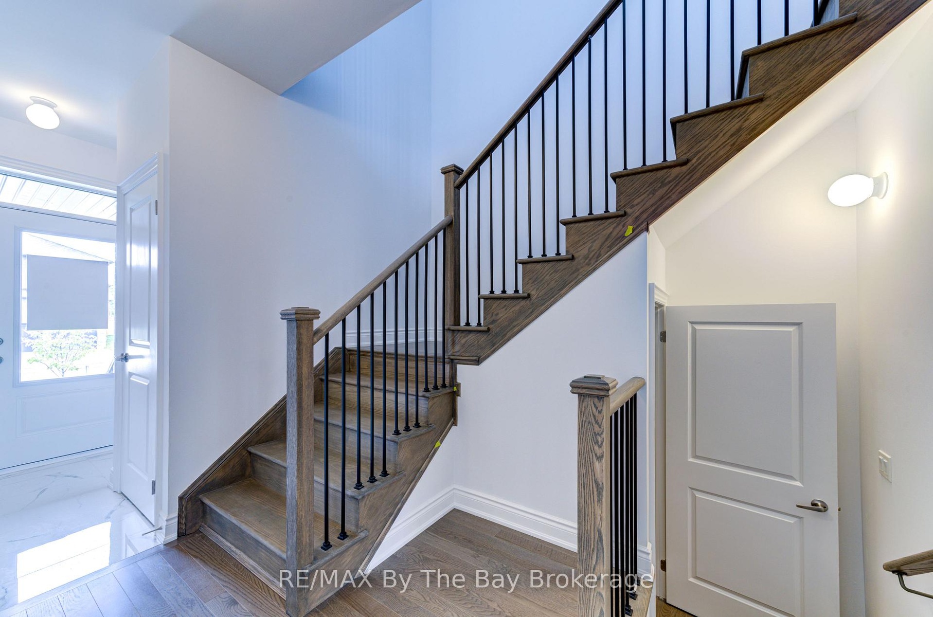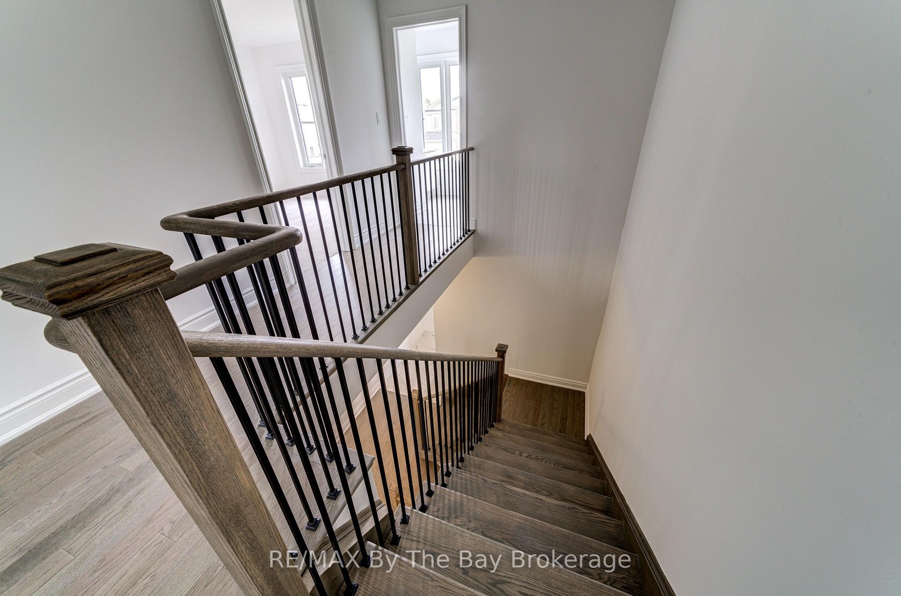 Welcome to 28 Autumn Drive in the Villas of Upper Wasaga - a beautifully finished Amber Model freehold townhome by Baycliffe Communities, offering 1,734 sq. ft. of thoughtfully designed living space. Move-in ready and never lived in, this 3-bedroom, 2.5-bath home combines modern comfort with low-maintenance living in a sought-after Wasaga Beach location. Step inside to 9-foot ceilings, wide-plank engineered hardwood, and a solid oak staircase with elegant wrought iron spindles. The open-concept main floor flows seamlessly from the upgraded kitchen - featuring quartz countertops, soft-close shaker cabinetry with glass uppers, and an oversized island - into the bright dining and living areas, ideal for everyday living and entertaining.Upstairs, the spacious primary suite includes a walk-in closet and a private 4-piece ensuite with double sinks and a tiled shower. Two additional bedrooms, a full bath, and convenient upper-level laundry complete the space. The unfinished basement offers flexibility for storage or future finishing. Tarion Warranty included. Ideally located close to schools, shopping, trails, and the world's longest freshwater beach - and just 15 minutes to Collingwood and 20 minutes to the town of Blue Mountains - this property is perfect for full-time living, a weekend retreat, or a smart investment in one of Ontario's most desirable beach towns.