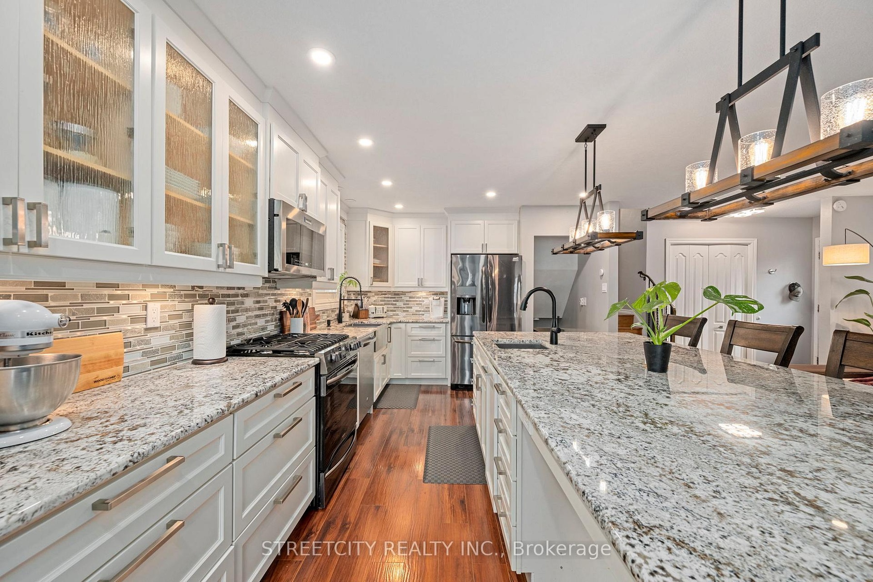 Welcome to the property where family memories are made. This home offers a perfect blend of high-end function and year-round entertainment. The heart of the home is the professionally built chef's kitchen with gas range. A giant granite slab island provides the centerpiece for large family functions, surrounded by shaker cabinets with soft-close drawers. The kitchen is rounded out with a premium Gallery and Professional Frigidaire appliance package. This space flows into a comfortable living area, allowing the home chef to stay part of the action. Catch the game or a family show on the wall-mounted TV, positioned above a cozy, built-in Napoleon fireplace. In the summer the backyard becomes an entertainer's paradise. It features a multi-tiered deck, natural gas hookups for a barbecue and fire table, and beautifully landscaped grasses. The pool offers a perfect way for kids to beat the summer heat. The home's charm extends to the front, where a huge porch provides a comfortable spot to relax and keep an eye on kids playing in the neighbourhood. When the weather turns, the entertainment moves indoors to the professionally installed home theatre. Get the popcorn popping, lower the remote-controlled screen, and enjoy a movie night any night of the week. The property includes an upgraded patterned concrete driveway leading to a large detached garage. Inside, convenience is key with high-end Electrolux laundry machines and an on-demand gas water heater for endless comfort. This home provides so much to do, you may find yourself saving money on outside entertainment. Book a showing soon so you can see how your family will fit into this thoughtful home like the final piece of a puzzle.