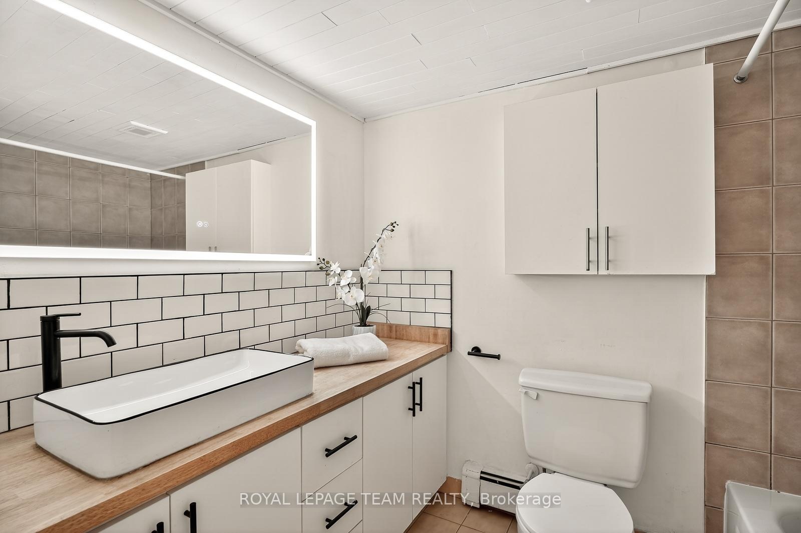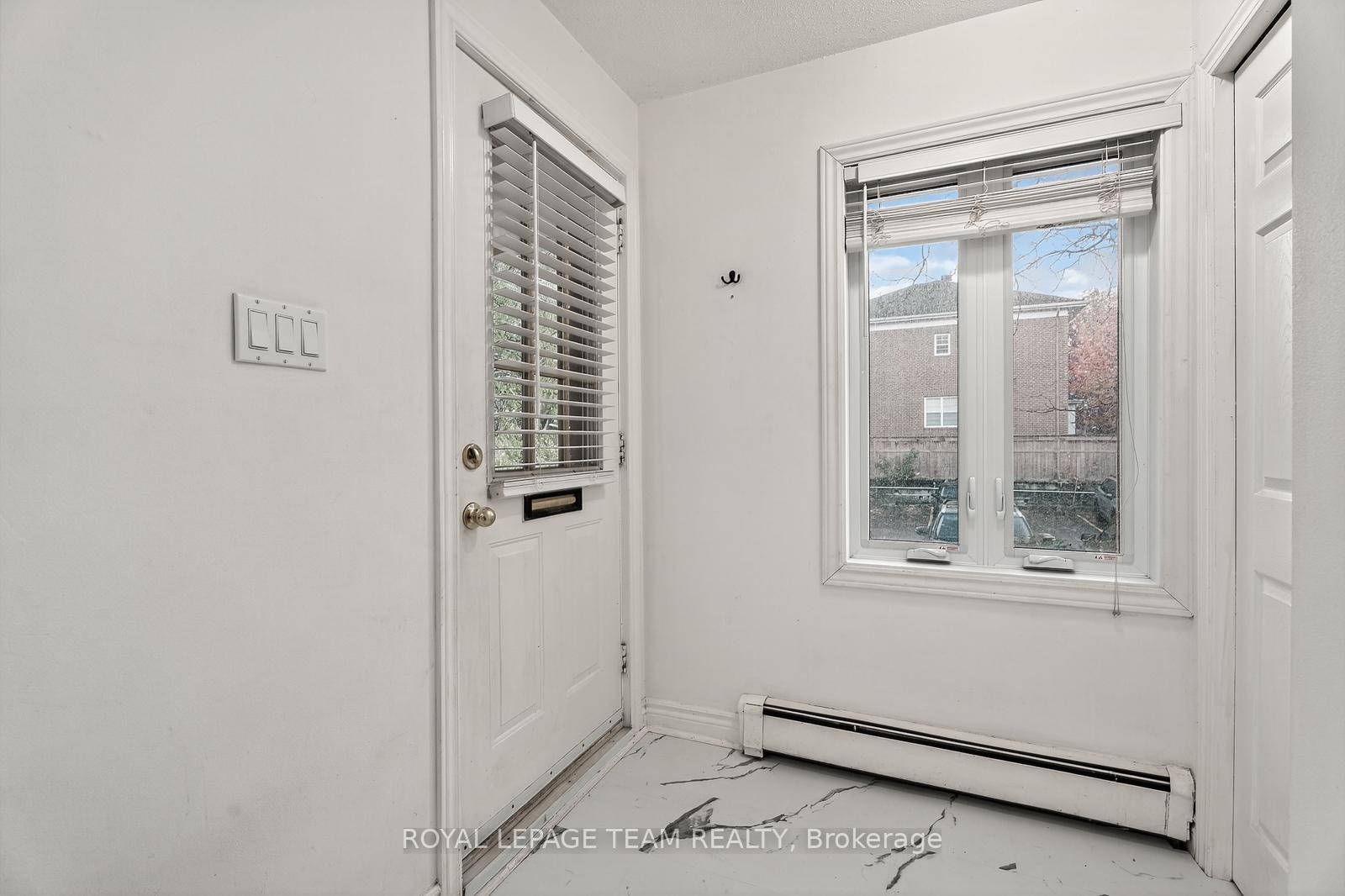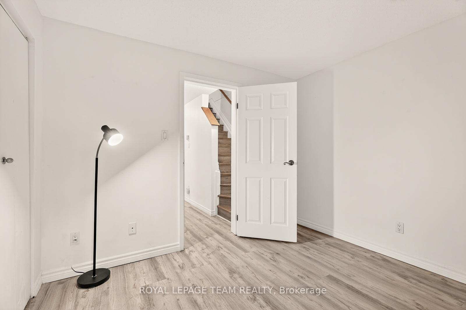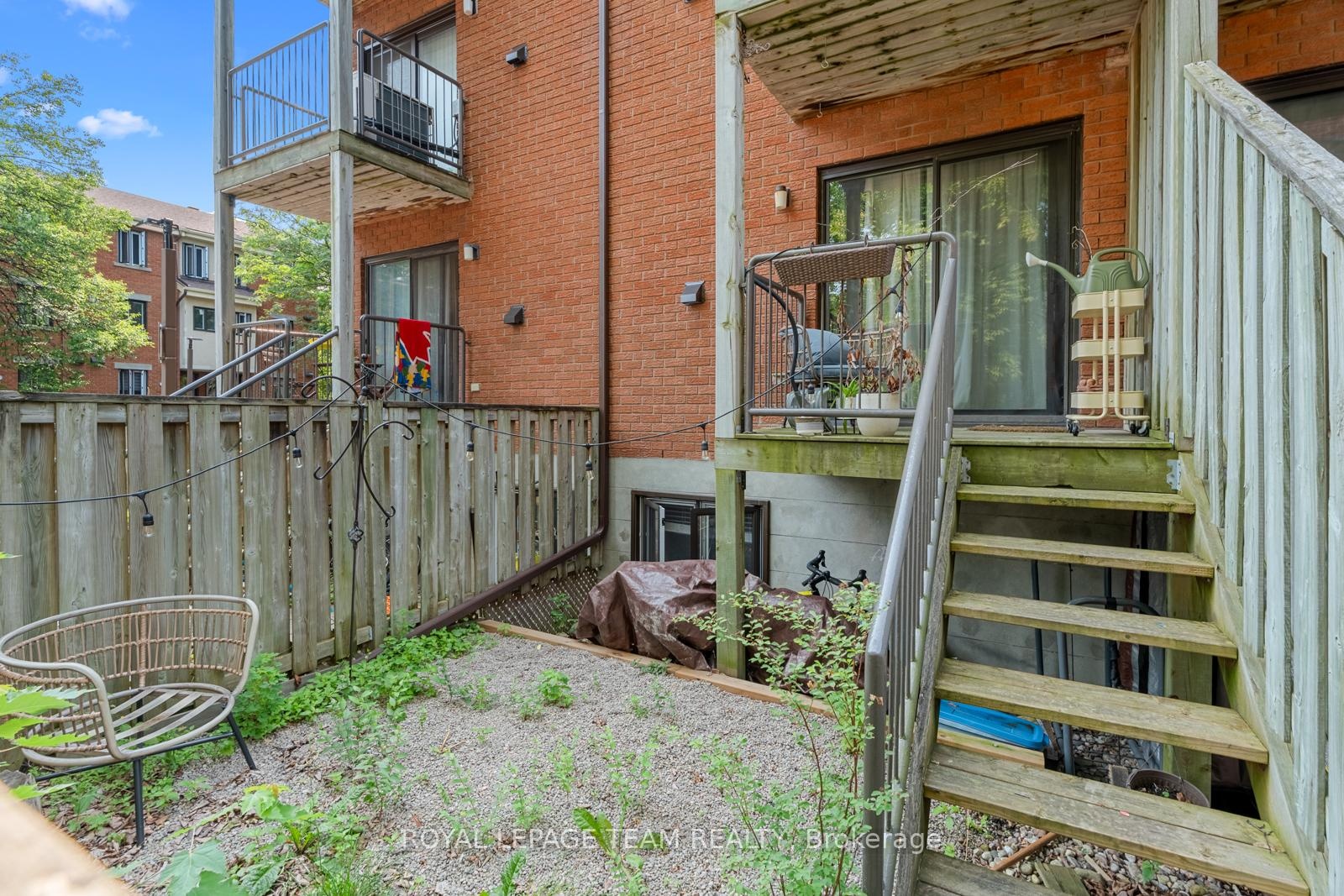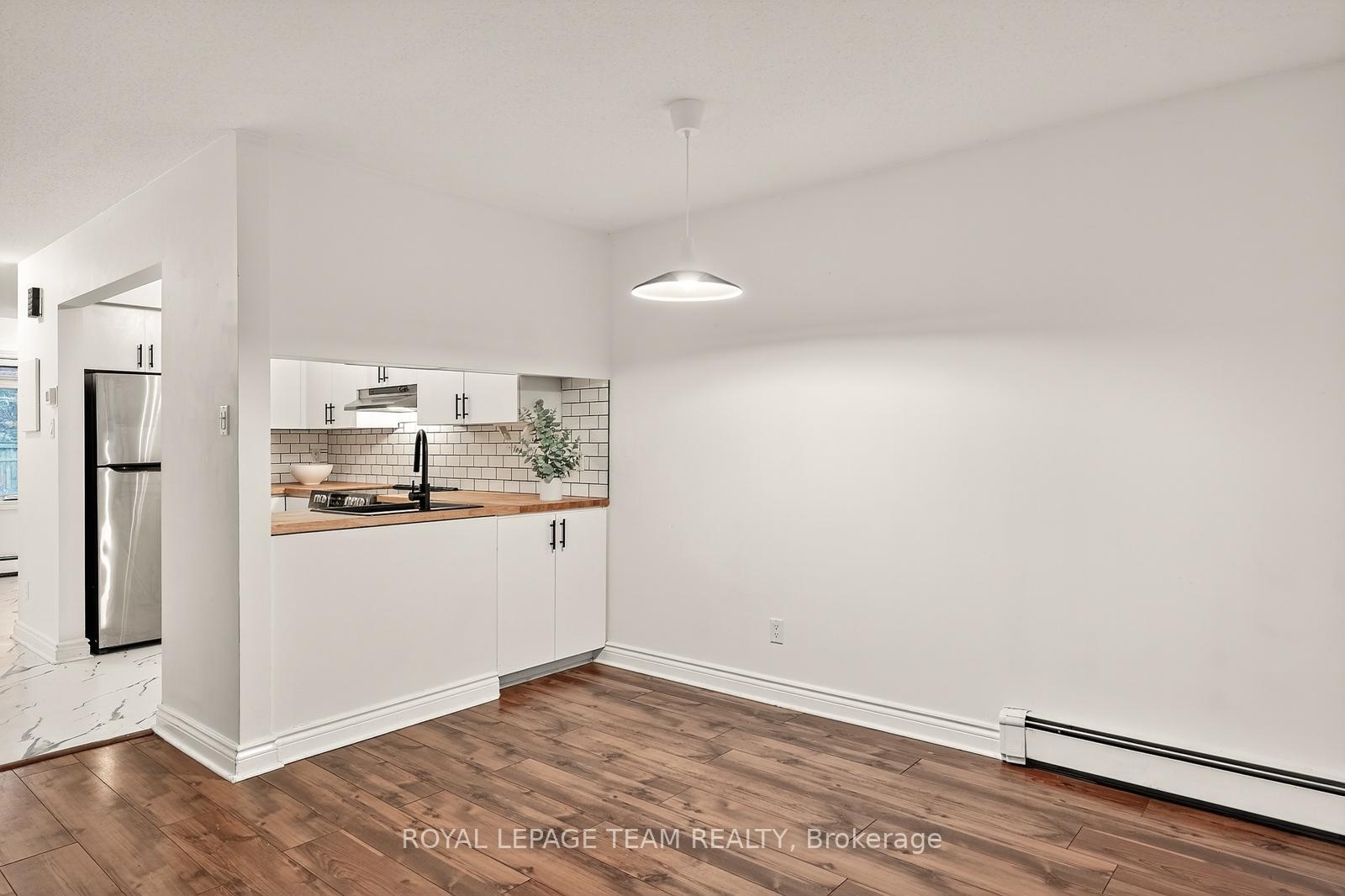 Welcome to this beautifully updated 2-bedroom stacked townhome in the sought-after neighbourhood of Manor Park. Step into a welcoming front foyer complete with a convenient powder room and a recently renovated kitchen featuring butcher block countertops, classic white subway tile backsplash, chic black hardware, and newer stainless steel appliances. The kitchen's open sight-lines overlook an airy living and dining area, enhanced by a cozy wood-burning fireplace and glass sliding doors that lead to a private back deck and fenced in garden. Downstairs, discover two spacious bedrooms with deep windows that offer both natural light and a serene space to retreat to. An updated 4-piece bathroom with modern fixtures and finishes tie seamlessly into the home's aesthetic. This level also includes a dedicated laundry room and ample storage space. Enjoy the convenience of an outdoor parking spot, and a charming parkette just steps away, perfect for walking the dog or enjoying a bit of green space close by. This home is a perfect blend of comfort, style, and location; a true gem with low condo fee's, ideal for first-time buyers, down-sizers, or investors alike. Proximity to gorgeous nature trails, the Ottawa River, shopping, schools and the 417.