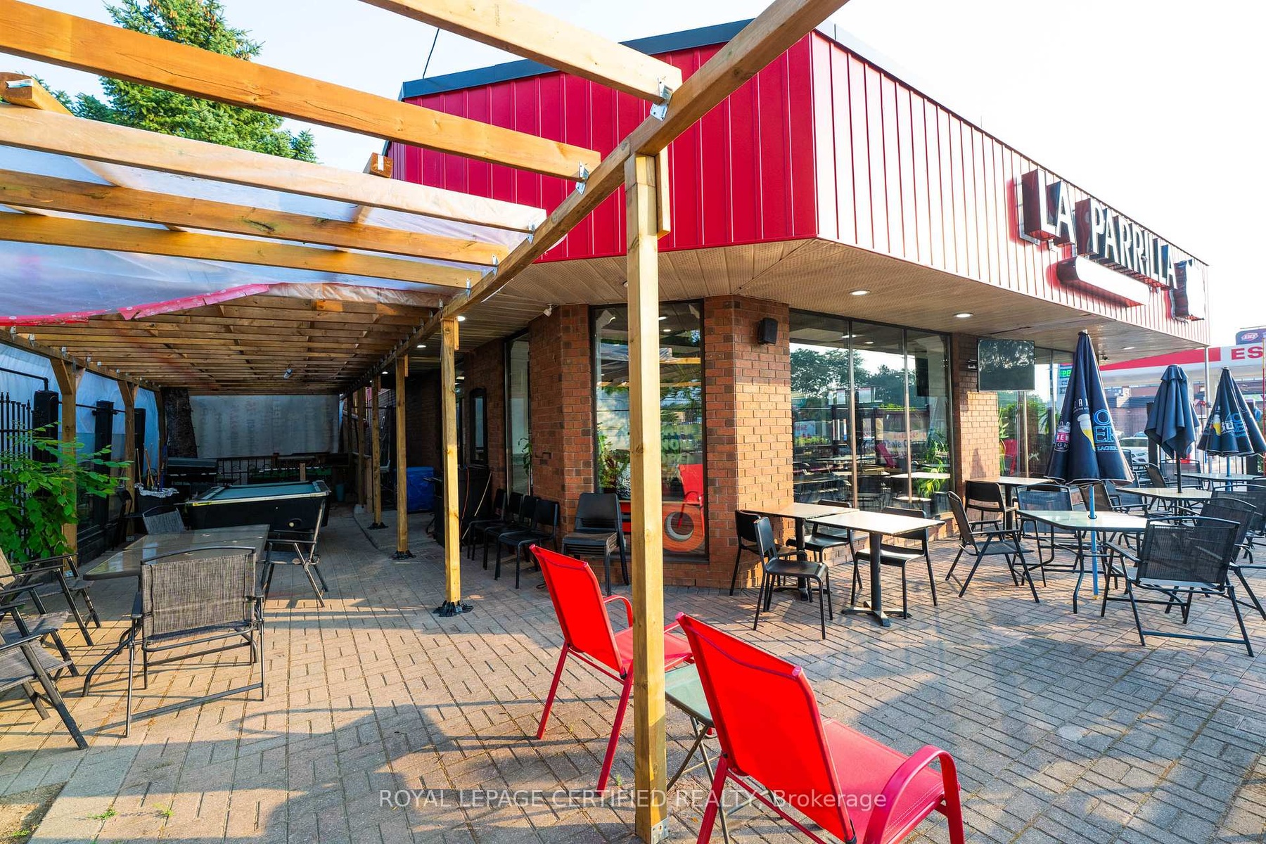 SUCCESSFULLY RUNNING LATIN RESTAURANT STAND ALONE PROPERTY LOCATED AT A BUSY INTERSECTION, FULLY EQUIPPED COMMERCIAL GRADE EQUIPMENTS WITH RATIONAL OVENS PLUS A SUPPER LARGE PATIO WITH LIQUOR LICENSE, PLAZA HAS LOTS OF PARKING SPACE FOR EVENTS AFFORDABLE RENT OF $7400 WHICH IS INCLUSIVE OF TMI & HST LONG TERM LEASE TILL 2033 AND PLUS 5 YEARS RENEWAL OPTION. PLEASE DO NOT GO DIRECT BOOK A SHOWING VIA LISTING BROKERAGE.