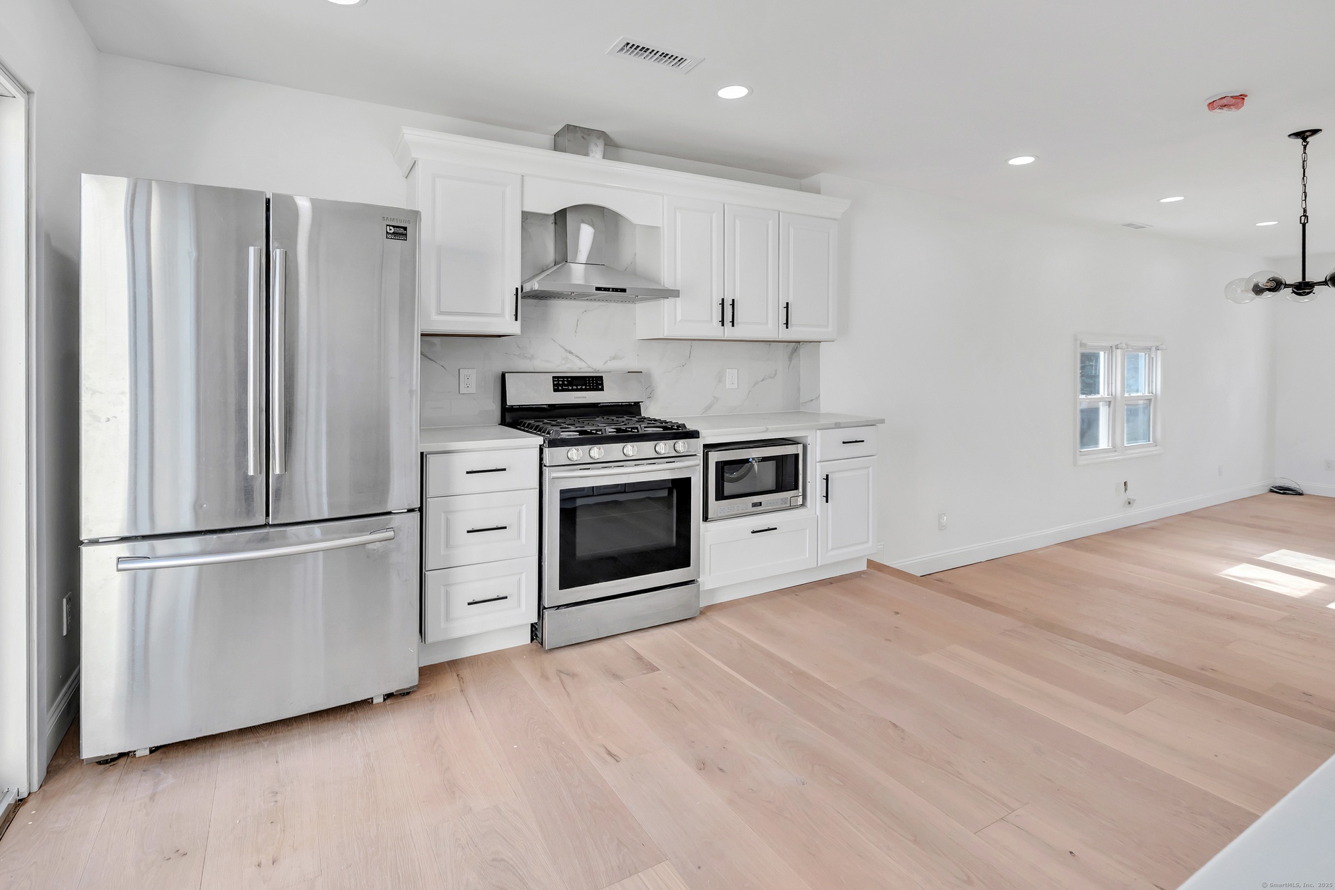 Welcome to this beautifully remodeled upper-floor unit in a charming multi-family home, ideally located just steps from Norwalk Hospital, SoNo's vibrant restaurants and shops, and the train station for easy commuting. This light-filled apartment blends modern comfort with thoughtful luxury details throughout, including solar panels for energy efficiency, new oak floors and open living space, modern kitchen with quartz counters, stainless steel appliances and sleek finishes, updated bathrooms with designer touches. Street parking, small backyard shared with lower unit, private deck with stunning view. Laundry in unit, most appliances are brand new. Keyless entry being installed and Ring doorbell. A minimum of one year lease required. One pet allowed with restrictions.