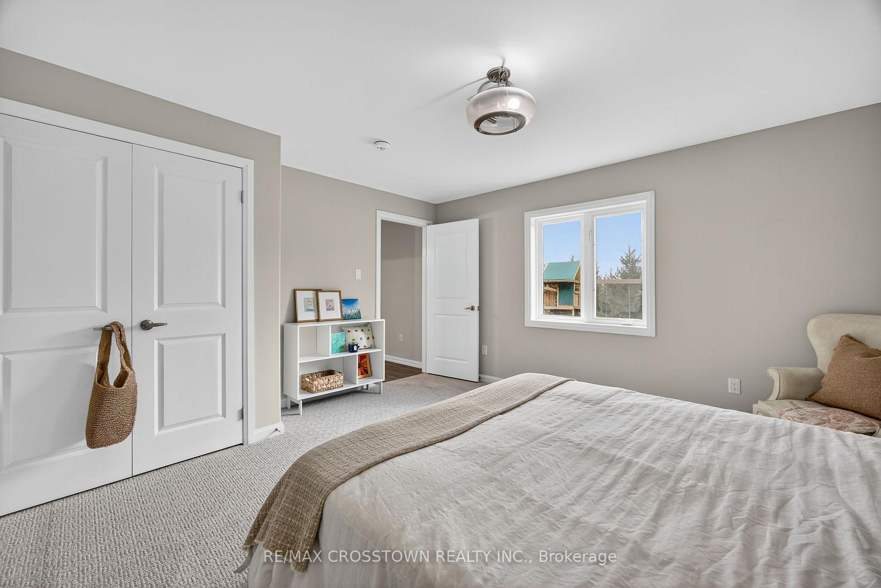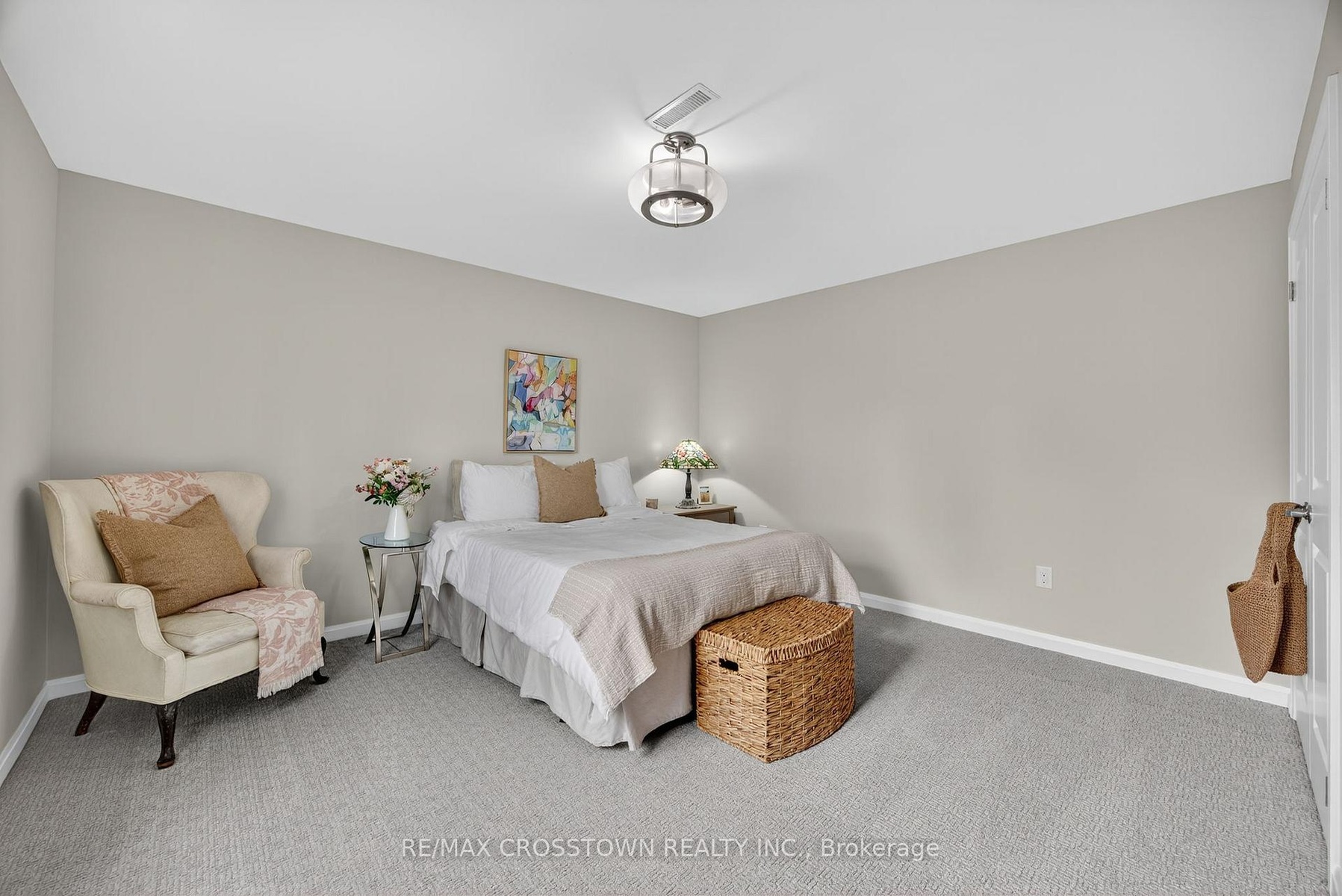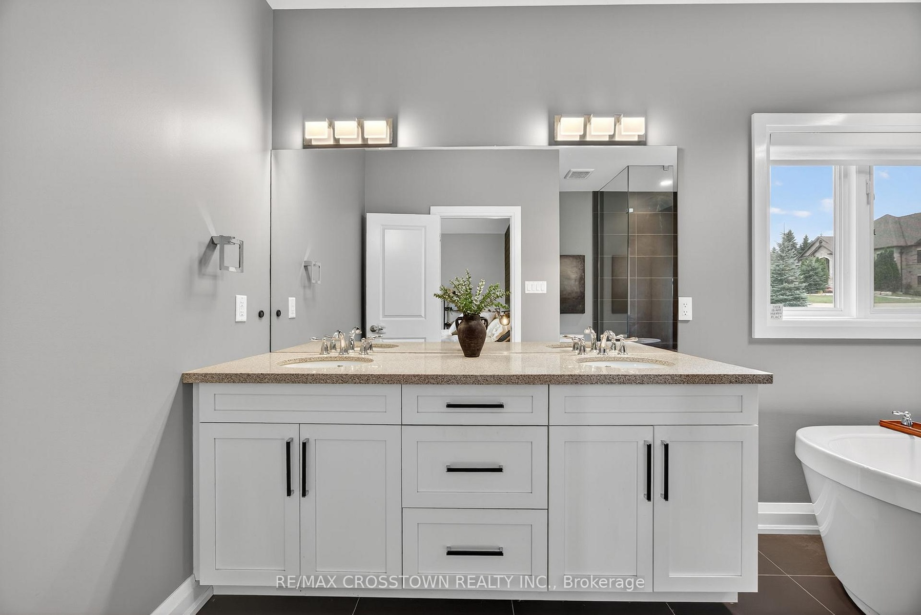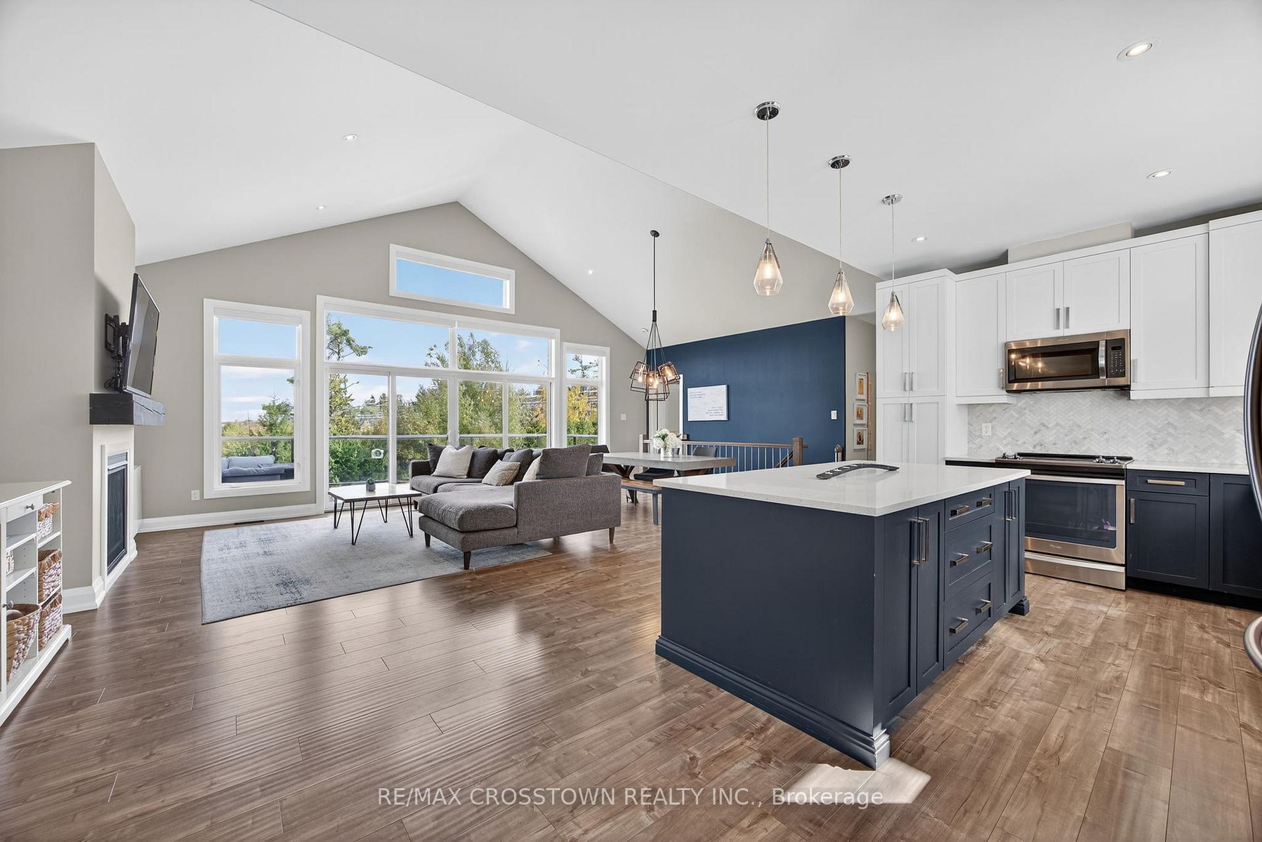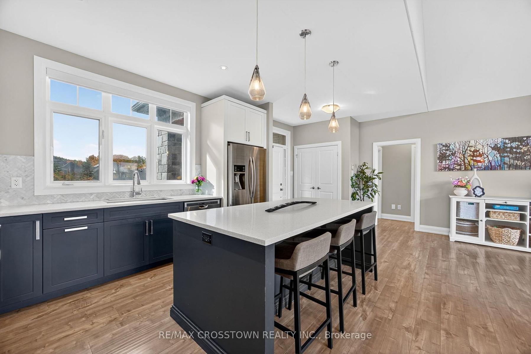 Bright and beautiful open concept bungalow. Vaulted ceiling with a stunning array of windows. Lofty view over the spacious private back yard and awesome glass-railing deck, perfect for your enjoyment. Modern kitchen with the right-sized island, crisp white counter tops. Super layout for families, with Primary bedroom on one side and 2 more bedrooms on opposite side.....works very well! Modern ensuite bath with freestanding tub and walk-in shower. Lower level fully finished with wet bar and wide open living space....so nice and so bright. 3 more bedrooms (or office, studio, gym, library) offers so much flexibility to your use of this space. Walkout to the back yard and no neighbours behind your home (you don't know how great this is until you have it!) Beautiful neighbourhood with all-custom homes....very classy!