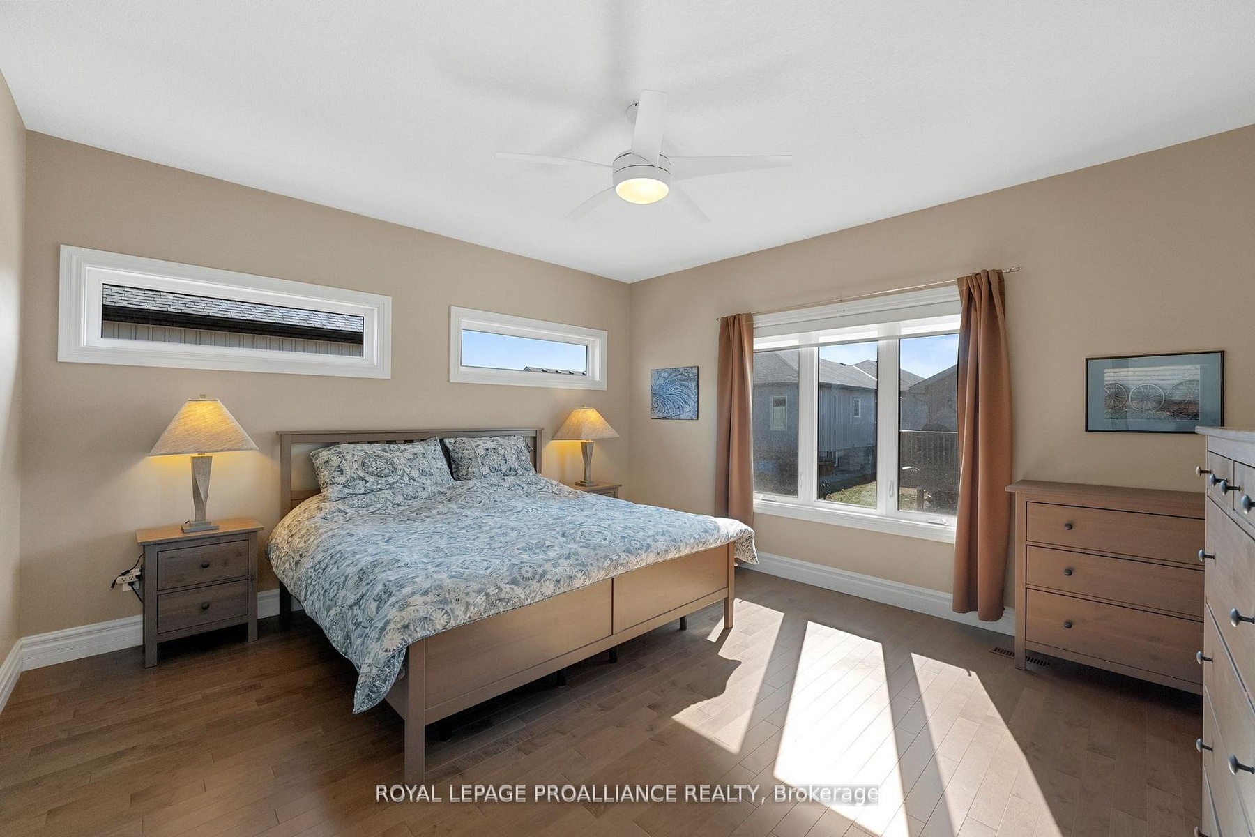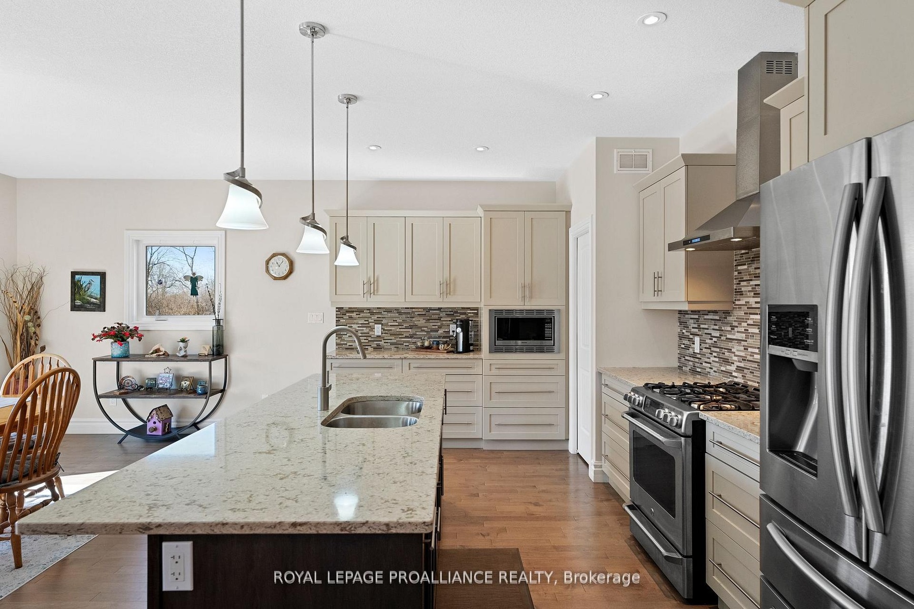 Experience the best of retirement living in the sought-after adult community of Wellington-On-The-Lake in Prince Edward County. This immaculate 3-bedroom, 2-bathroom freehold bungalow, the popular "Cabernet" model, offers 1,640 sq. ft. of thoughtfully designed space with modern finishes and exceptional upgrades. A new interlock walkway, stone stairs, and pristine landscaping enhances the front entrance, creating stunning curb appeal. Inside, the home features soaring 9' ceilings and elegant engineered hardwood floors, creating an open and airy atmosphere. The chef's dream Kitchen features a gas range & high end SS appliances, quartz countertops, an extended island with breakfast bar, a spacious walk-in pantry, custom cabinetry, a stylish back splash and slide-out waste bin drawers for added convenience. Cozy up in the Living Room by the gas fireplace with your favorite book and unwind in warmth & comfort. Step through the Dining area's patio doors onto a spacious 12' x 24' deck, complete with a BBQ gas line and gazebo - an ideal extension of your living space for relaxing or entertaining. The bright Primary suite is a private retreat, boasting a large WI closet and an ensuite with a double vanity and walk-in shower. Two additional bedrooms provide flexible space for guests, an office, or a hobby room. The full-height basement offers the potential for additional finished space and acold cellar for your wines and preserves. Direct access to the 2 car garage with a220-volt outlet, ideal for electric vehicle charging or workshop equipment. Residents of Wellington-On-The-Lake enjoy access to fantastic community amenities, including a heated in-ground pool & recreation facilities. Located in the heart of Prince Edward County, this home is just minutes from world-class wineries, breweries, fine dining, boutique shopping, and stunning white sand beaches. Whether you are looking for relaxation adventure, this incredible location offers the best of both worlds.