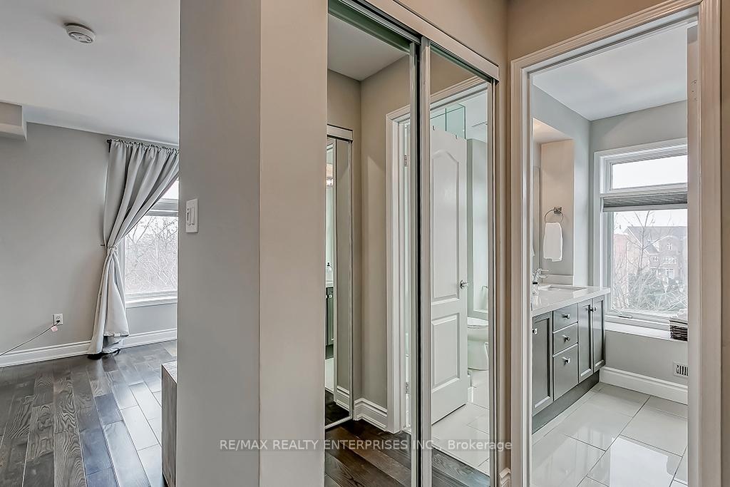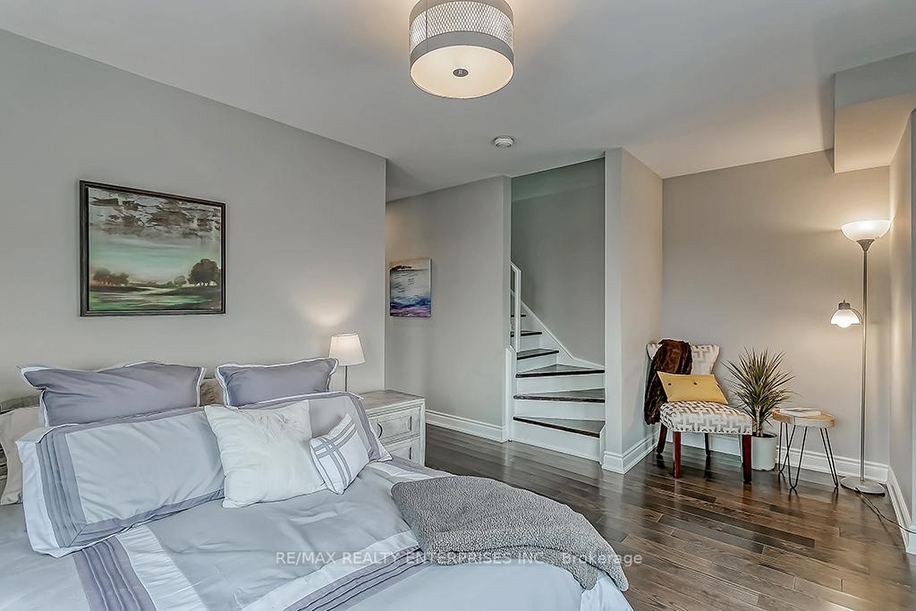 Welcome to this stunning townhome offering over 1200 sqft of modern living space. Enjoy an abundance of natural light through large windows showcasing beautiful views of the creek and ravine. This home features two private balconies, plus a bonus rootop terrace, perfect for relaxing or entertaining outdoors. Located in a highly walkable neighbourhood- steps to shops, restaurants, schools, the recreation centre and scenic walking trails right at your doorstep. Commuting is a breeze with easy access to the Q.E.W, 407, 403 and the Go Train all just minutes away. Experience comfort, convenience and contemporary living all in one exceptional home! Many upgrade including: Professionally painted, New smooth flat ceilings, New pot lights, New washer / dryer 2025, New roof top door 2025, New sliding door 2025, New window in bedroom 2025, all other windows upgraded, New front door on order, New deck terrace tiles, Roof terrace insulation, Updated appliances, Carpet free.