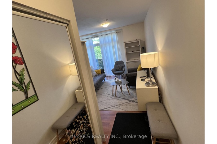 Welcome to vibrant Kerr Village! Kerr Studios is a boutique-style condo in an unbeatable location.This bright and spacious 2-bedroom, 2-bathroom comes fully furnished. The unit features an excellent layout with each bedroom having its own private bathroom perfect for comfort and convenience. The unit boasts natural light and peaceful views of mature trees from the quiet side of the building. Just steps from Oakwood PS, trendy restaurants, cafes, and shops, with Oakville GO,Trafalgar Park Community Centre, and the QEW minutes away. Enjoy leisurely walks to Hogs BackPark or down to the lake at Tannery Park.