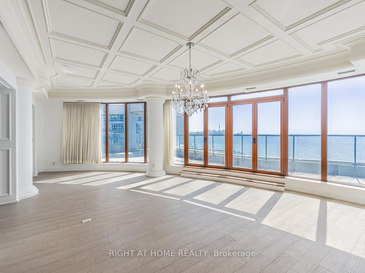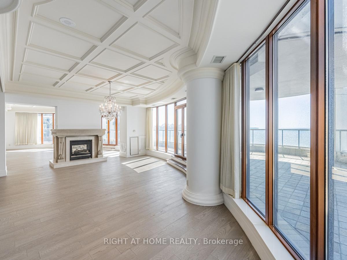 Discover the epitome of luxury at Waterford Boutique Condo. This extraordinary penthouse is a rare gem, featuring over 4,500 sqft of lavish living space, 10' high ceilings adorned with intricate crown molding. 2 elevators leading directly to your door. Gourmet kitchen w/ top-of-the-line appliances. Grand marble entranceway, 3 cozy gas fireplaces, Custom-built closets and a spectacular 1,331 sqft terrace with 4 walkouts, BBQ connection and water hookup.The penthouse offers Breathtaking Panoramic view of Lake Ontario and the Toronto skyline. Don't let this exclusive opportunity to experience true luxury living slip away. **EXTRAS** Cedar wine cellar that accommodates up to 1,000 bottles; 4 Prime Parking (2 W/Linear garage door closure for extra privacy & protection), 2 private Locker Rooms right behind the parking spots, purchase price includes all Crystal Chandeliers