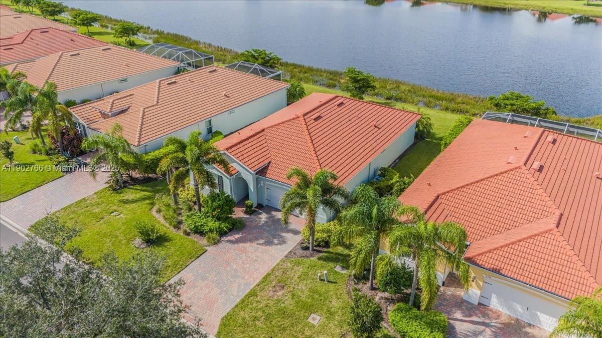 Beautiful single family home with open floor plan and high-volume ceilings. Offering two bedrooms plus a versatile den that can efficiently serve as a third bedroom, this home is move-in ready with tile flooring throughout and brand-new laminate flooring in the bedrooms. The kitchen boasts granite countertops, a new faucet and light fixtures, white cabinetry, stainless steel appliances, and a pantry. Enjoy beautiful lake views from the lanai. Located in a 55+ community, residents enjoy resort-style amenities including a pool, fitness center, clubhouse, tennis, bocce, and pickleball courts. The HOA covers basic cable, internet, and landscaping for a worry-free lifestyle. Best of all, this home is NOT in a flood zone and is just minutes from shopping and dinning.