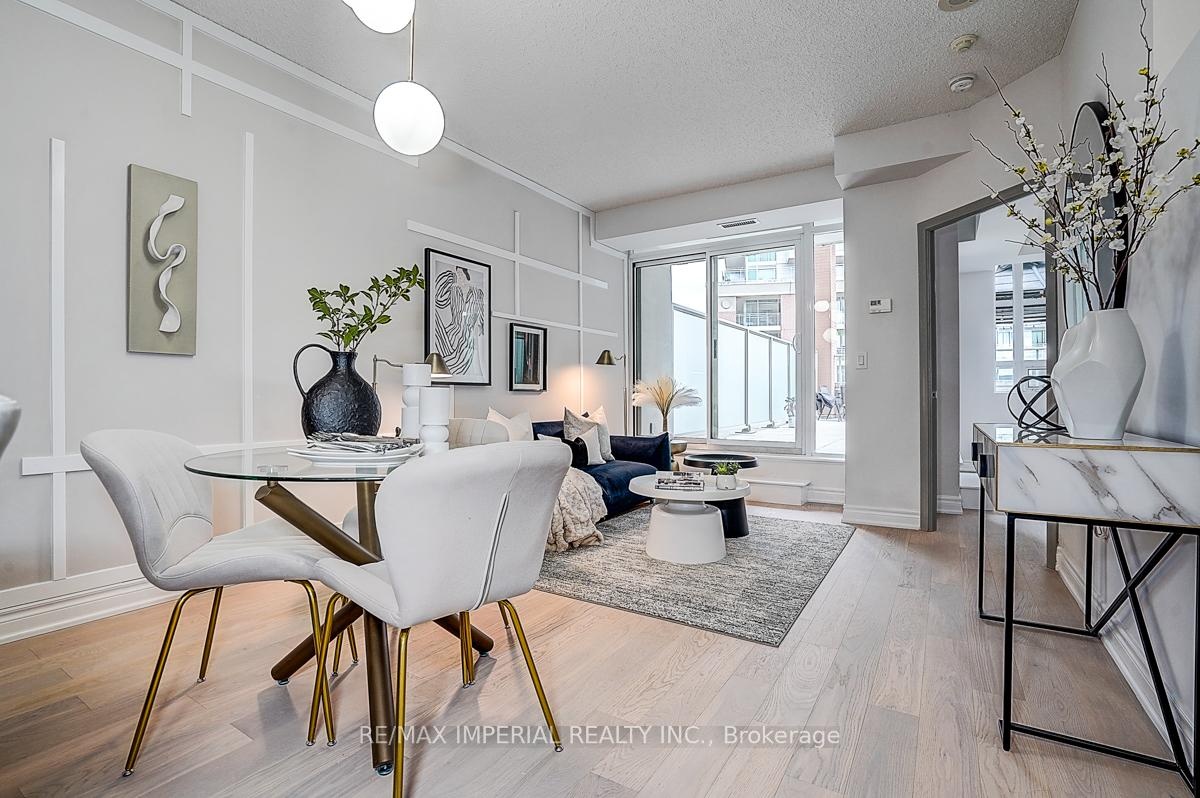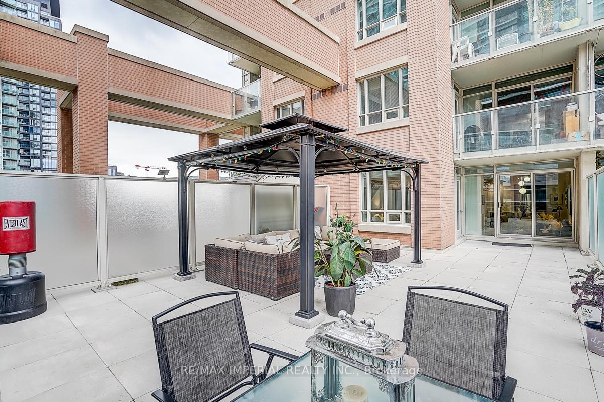 Experience urban living at its finest in this rare Liberty Village condo!This stylish, fully renovated 1+1 bedroom, 2-bath suite offers 681 sq.ft. of bright open living space plus an incredible 633 sq.ft. private terrace plus Gazebo(With Remote Outdoor Solar String Lights )- a true urban oasis ideal for outdoor entertaining, gardening, or simply relaxing under the city skyline. This massive terrace is one of the largest in Liberty Village, offering unmatched space and versatility rarely found in downtown Toronto living. Recently upgraded with new flooring featuring dry-wet separation, brand-new modern curtains, and a refreshed vanity, this home perfectly blends modern style and thoughtful functionality. The open-concept layout boasts stainless steel appliances, granite countertops, hardwood floors, and a versatile den ideal as a home office or second bedroom.Residents enjoy premium amenities including 24-hour concierge service, a fitness centre, theatre room, rooftop lounge, and guest suites. With a 95 Walk Score, you're just steps away from trendy cafes, restaurants, parks, and TTC transit.Complete with one parking space and one locker, this suite represents the ultimate combination of comfort, design, and investment potential in one of Toronto's most vibrant communities.