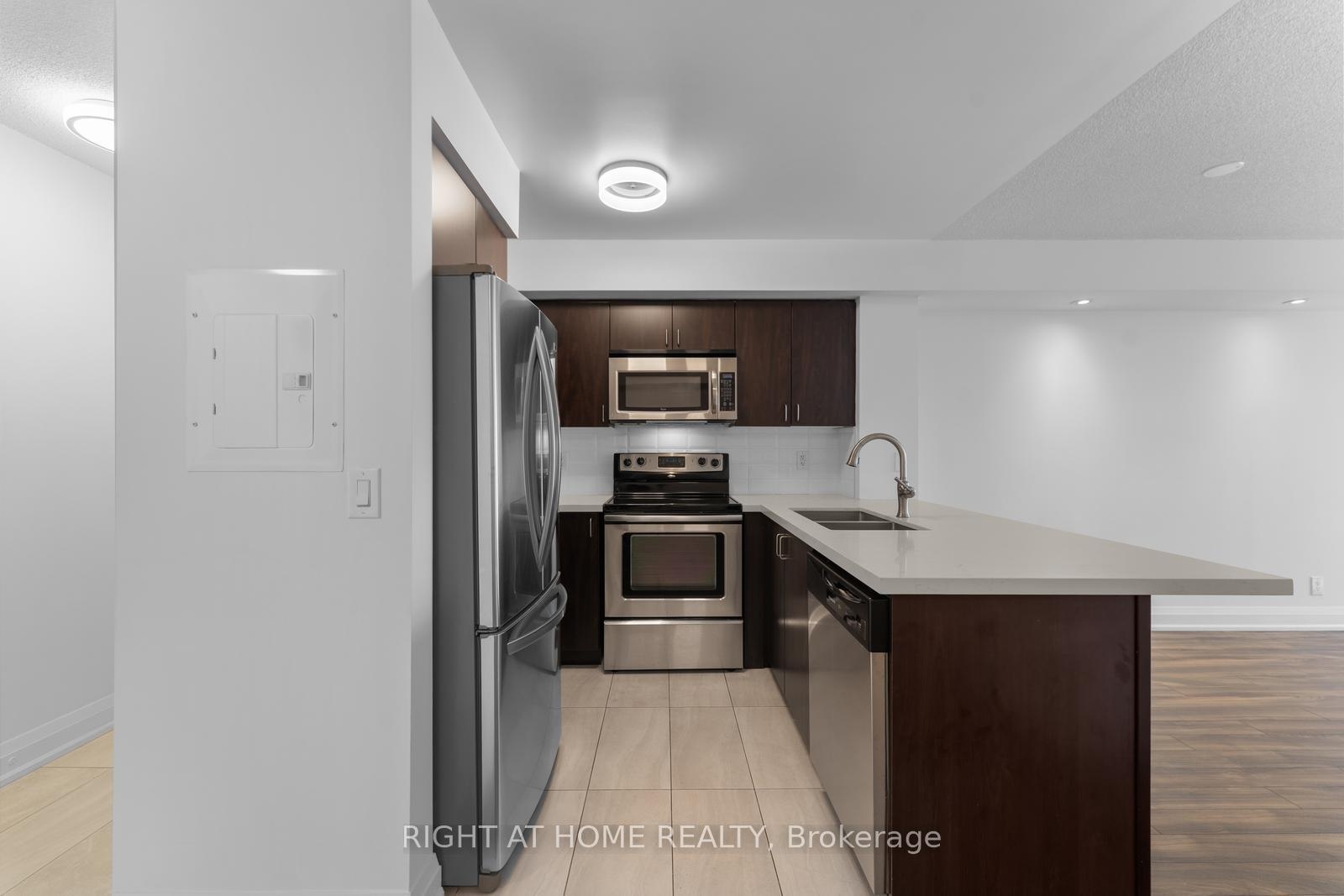 Welcome Home ! Spacious 1 +Den with 2 Bathrooms! South facing Views Of The City And Cn Tower! Chefs Kitchen Boasting S/S Appliances, Quartz Countertops upgraded Backsplash and Breakfast Bar! Upgraded Tile Flooring In Foyer And Kitchen, Laminate flooring throughout. 745 Sq. Ft + Balcony! Large Den Can Be Used As Office/2nd Bedroom Or Dinning Room!. Conveniently Located At Sheppard Ave West Subway Station! Minutes From Hwy, Yorkdale, Restaurants, Groceries And More! 1 Parking included.