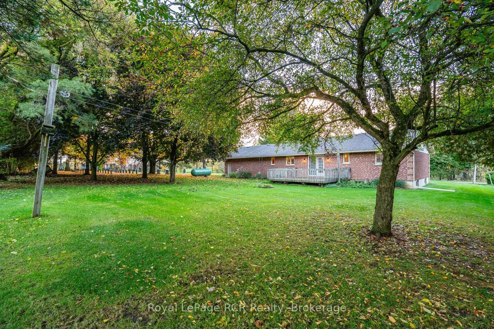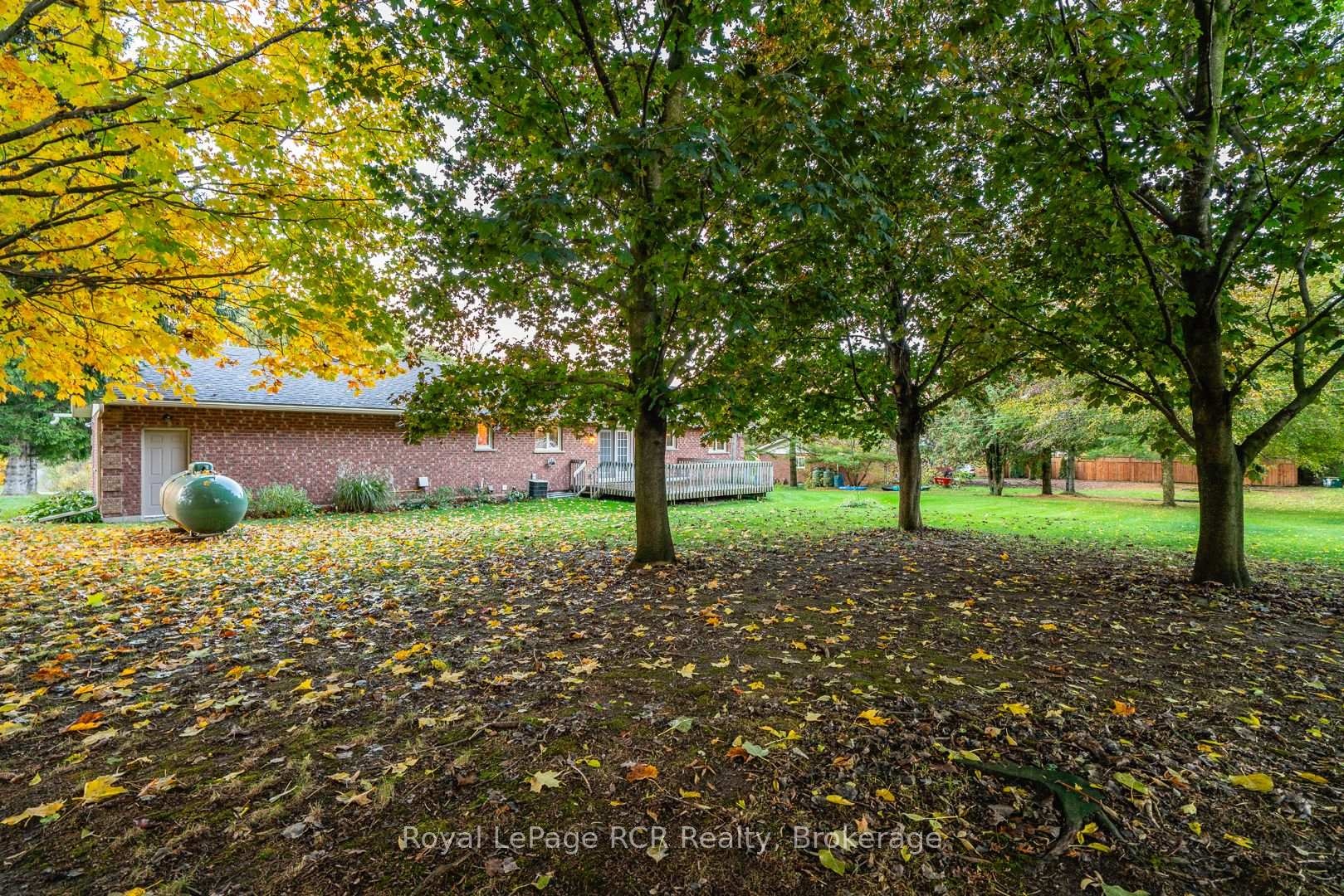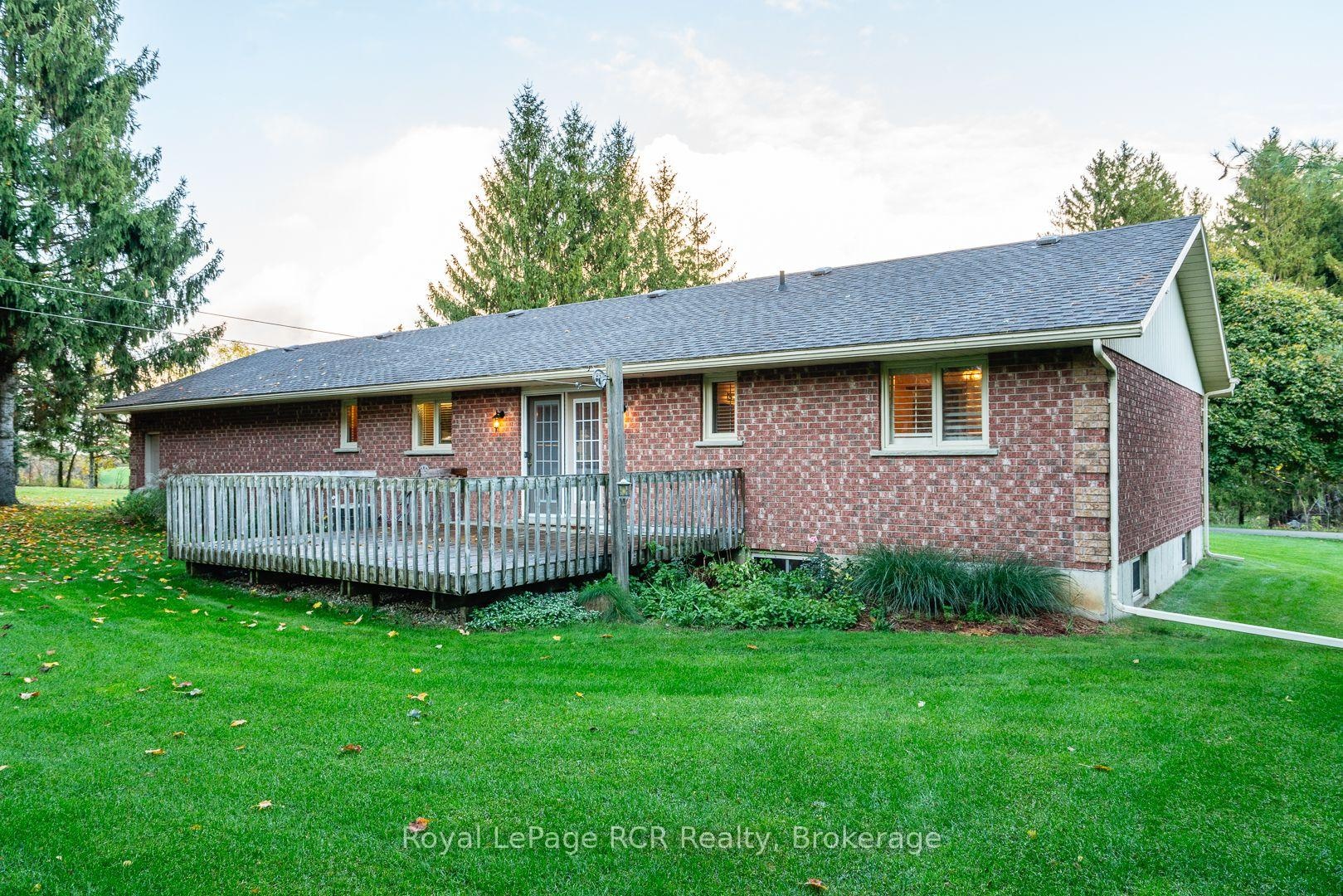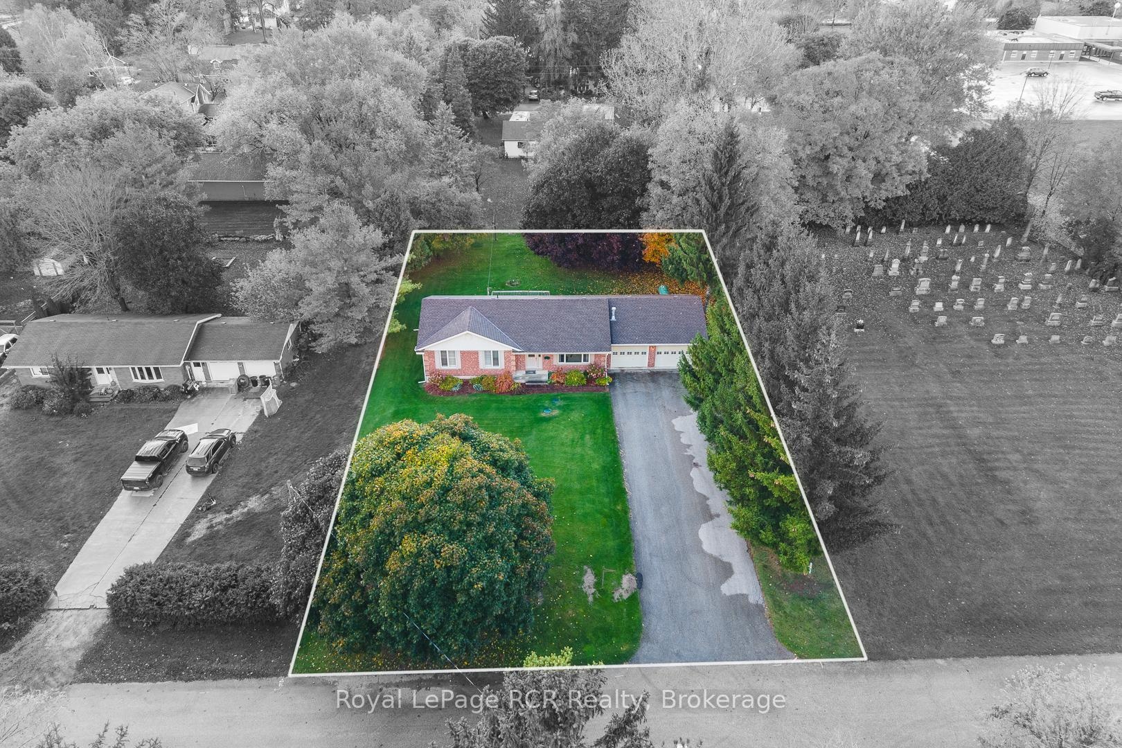 Tucked away on a dead end street in the charming village of Ayton, this solidly built 1993 bungalow offers quality construction. The home features a fully bricked exterior, an oversized double garage with walk-down access to the lower level, a paved driveway, and full truss construction-allowing you to remove interior walls if you ever wish to reconfigure the layout. Step inside to a bright, open kitchen and dining area with patio doors leading to the back deck, perfect for enjoying the peaceful backyard with beautiful mature trees. The living room features a large picture window, a welcoming front foyer and a cozy propane fireplace for cold winter nights. Three bedrooms (primary bedroom with double closets & interior lighting), 1.5 bathrooms, hallway linen closet and laundry area complete the main level. The lower level is bright with multiple windows and offers an excellent opportunity for finishing into additional living space. Further features include central air, central vac, air exchanger, full appliance package and under-cabinet lighting. Move right in or update the décor to suit your taste. Furnace 2014 and roof 2018. Last property on the west side of the dead end road. Ayton offers a friendly, small-town atmosphere with local amenities including a gas station/service centre, Trixie's Saloon, Mum's Grab & Go, post office, Domm Construction, Normanby Community School, head office of Germania Mutual Insurance and nearby churches. Plus, with your own well and septic, you can enjoy freedom from costly water and sewer charges. Wightman fibre optics at lot line. Flexible closing. Septic pumped 2025,