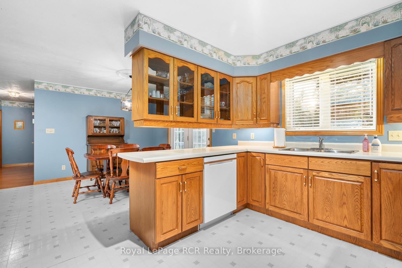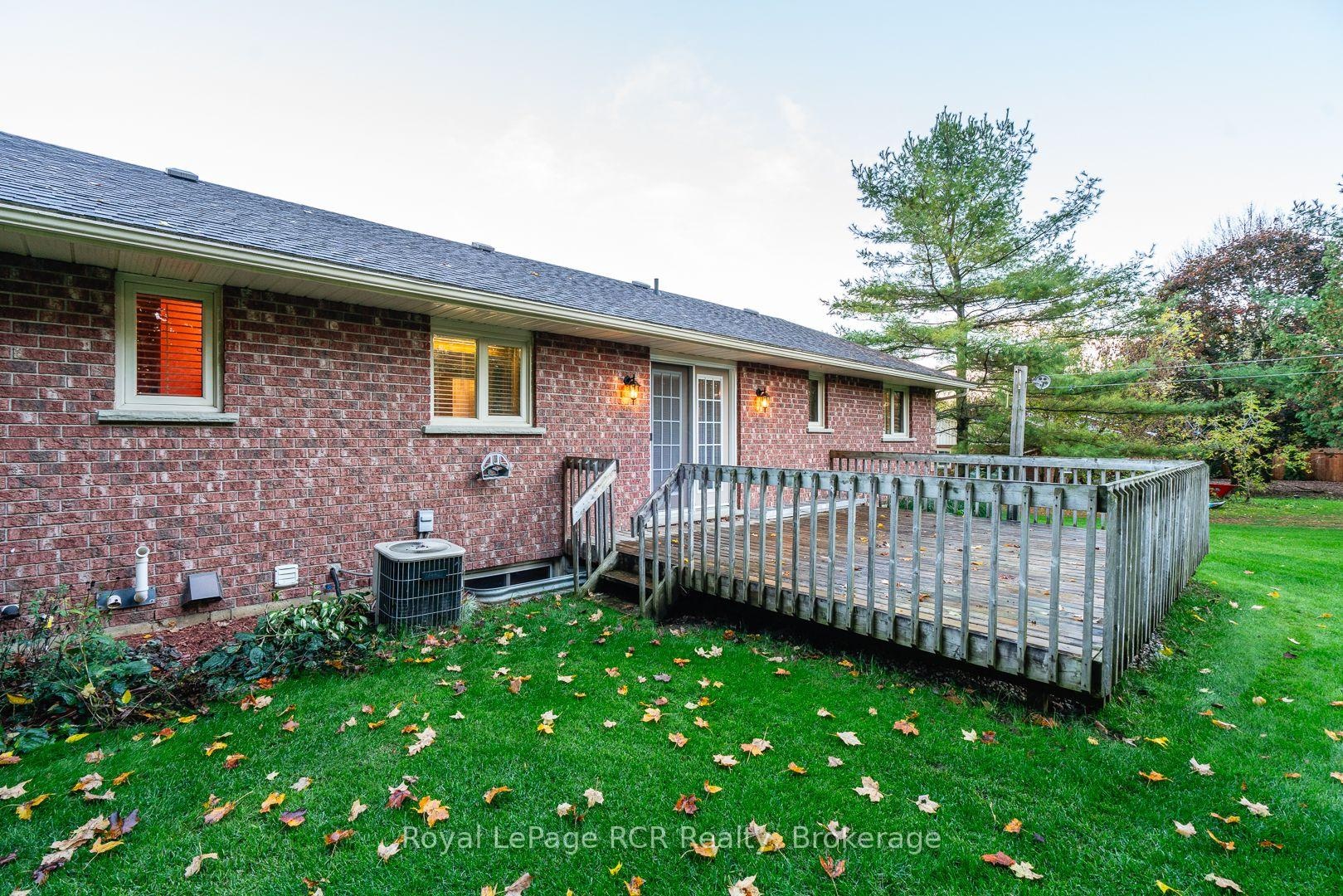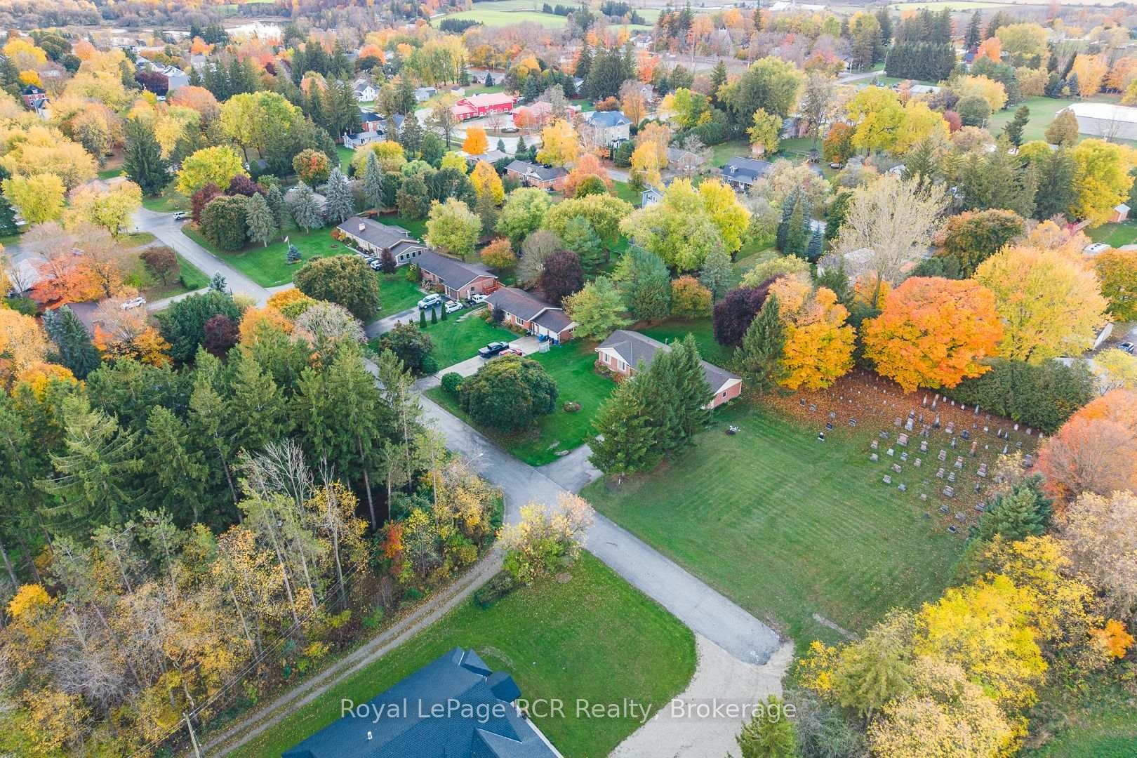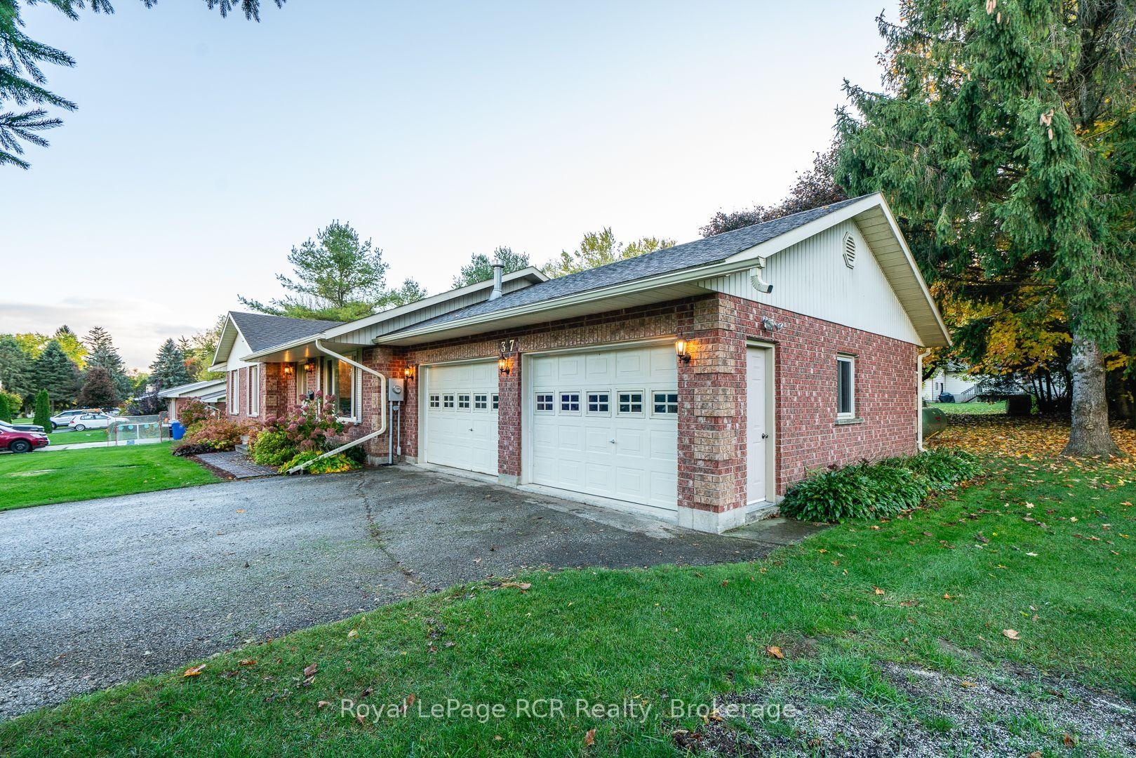 Tucked away on a dead end street in the charming village of Ayton, this solidly built 1993 bungalow offers quality construction. The home features a fully bricked exterior, an oversized double garage with walk-down access to the lower level, a paved driveway, and full truss construction-allowing you to remove interior walls if you ever wish to reconfigure the layout. Step inside to a bright, open kitchen and dining area with patio doors leading to the back deck, perfect for enjoying the peaceful backyard with beautiful mature trees. The living room features a large picture window, a welcoming front foyer and a cozy propane fireplace for cold winter nights. Three bedrooms (primary bedroom with double closets & interior lighting), 1.5 bathrooms, hallway linen closet and laundry area complete the main level. The lower level is bright with multiple windows and offers an excellent opportunity for finishing into additional living space. Further features include central air, central vac, air exchanger, full appliance package and under-cabinet lighting. Move right in or update the décor to suit your taste. Furnace 2014 and roof 2018. Last property on the west side of the dead end road. Ayton offers a friendly, small-town atmosphere with local amenities including a gas station/service centre, Trixie's Saloon, Mum's Grab & Go, post office, Domm Construction, Normanby Community School, head office of Germania Mutual Insurance and nearby churches. Plus, with your own well and septic, you can enjoy freedom from costly water and sewer charges. Wightman fibre optics at lot line. Flexible closing. Septic pumped 2025,