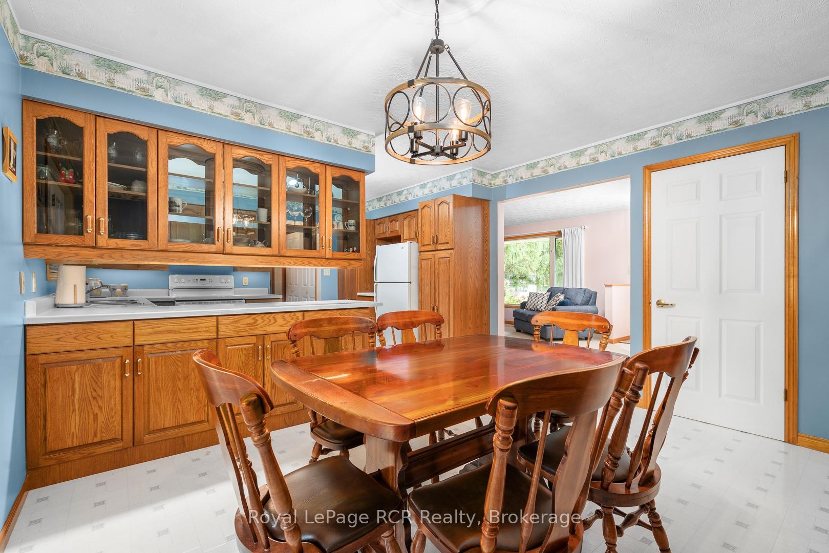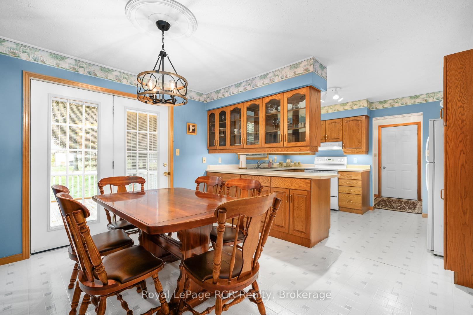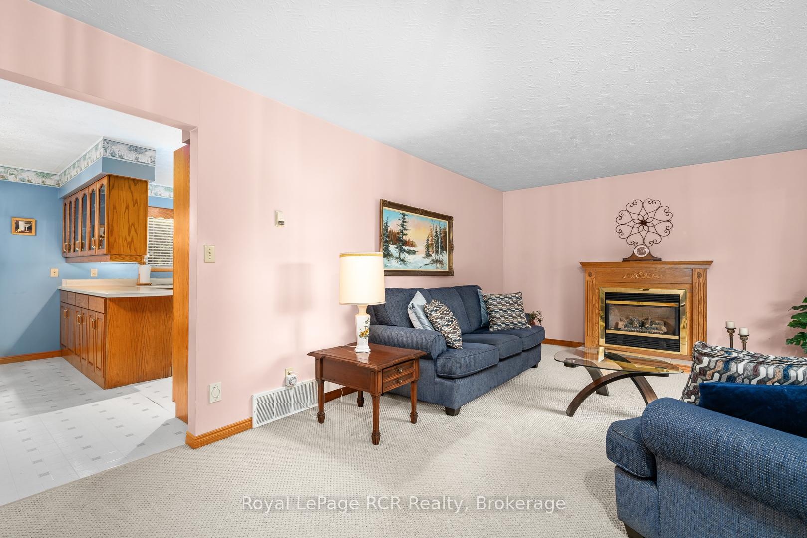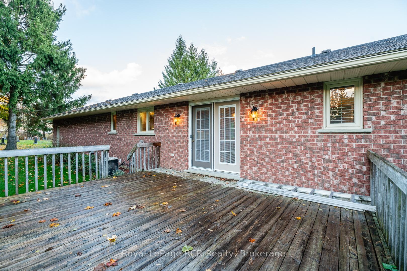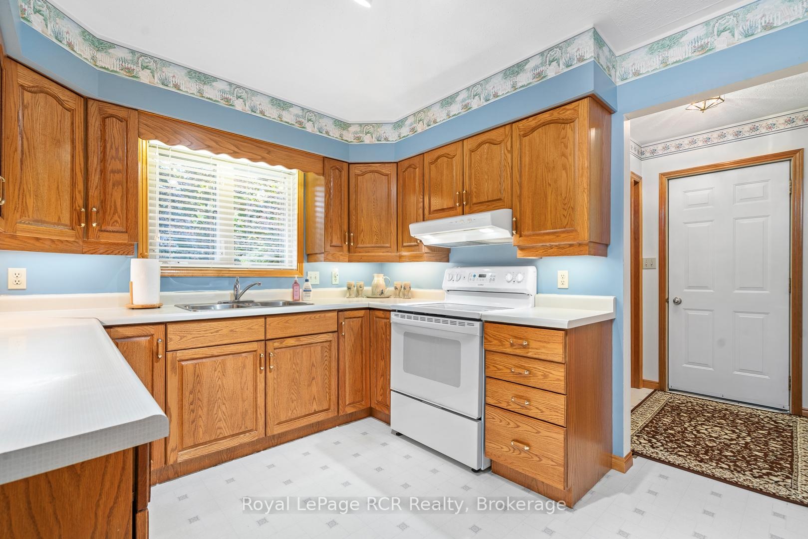 Tucked away on a dead end street in the charming village of Ayton, this solidly built 1993 bungalow offers quality construction. The home features a fully bricked exterior, an oversized double garage with walk-down access to the lower level, a paved driveway, and full truss construction-allowing you to remove interior walls if you ever wish to reconfigure the layout. Step inside to a bright, open kitchen and dining area with patio doors leading to the back deck, perfect for enjoying the peaceful backyard with beautiful mature trees. The living room features a large picture window, a welcoming front foyer and a cozy propane fireplace for cold winter nights. Three bedrooms (primary bedroom with double closets & interior lighting), 1.5 bathrooms, hallway linen closet and laundry area complete the main level. The lower level is bright with multiple windows and offers an excellent opportunity for finishing into additional living space. Further features include central air, central vac, air exchanger, full appliance package and under-cabinet lighting. Move right in or update the décor to suit your taste. Furnace 2014 and roof 2018. Last property on the west side of the dead end road. Ayton offers a friendly, small-town atmosphere with local amenities including a gas station/service centre, Trixie's Saloon, Mum's Grab & Go, post office, Domm Construction, Normanby Community School, head office of Germania Mutual Insurance and nearby churches. Plus, with your own well and septic, you can enjoy freedom from costly water and sewer charges. Wightman fibre optics at lot line. Flexible closing. Septic pumped 2025,