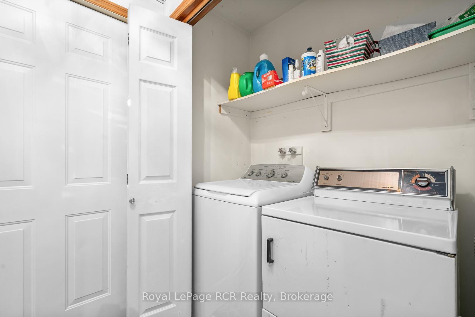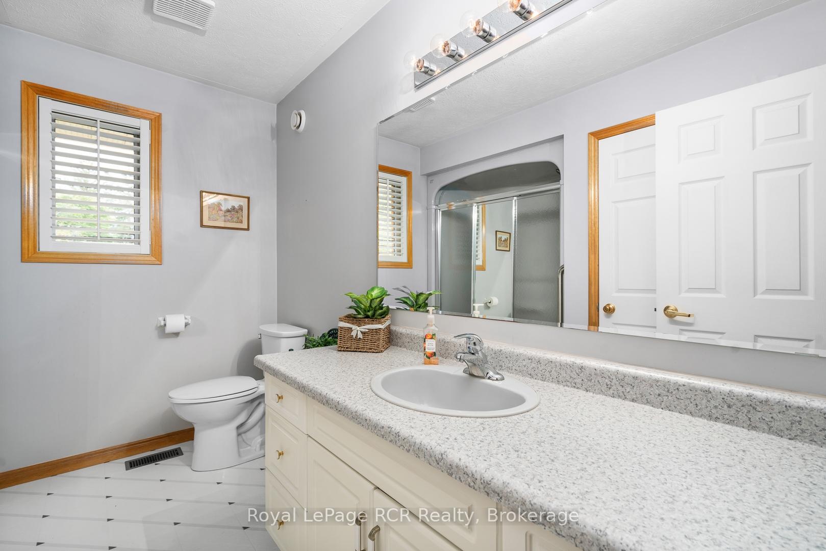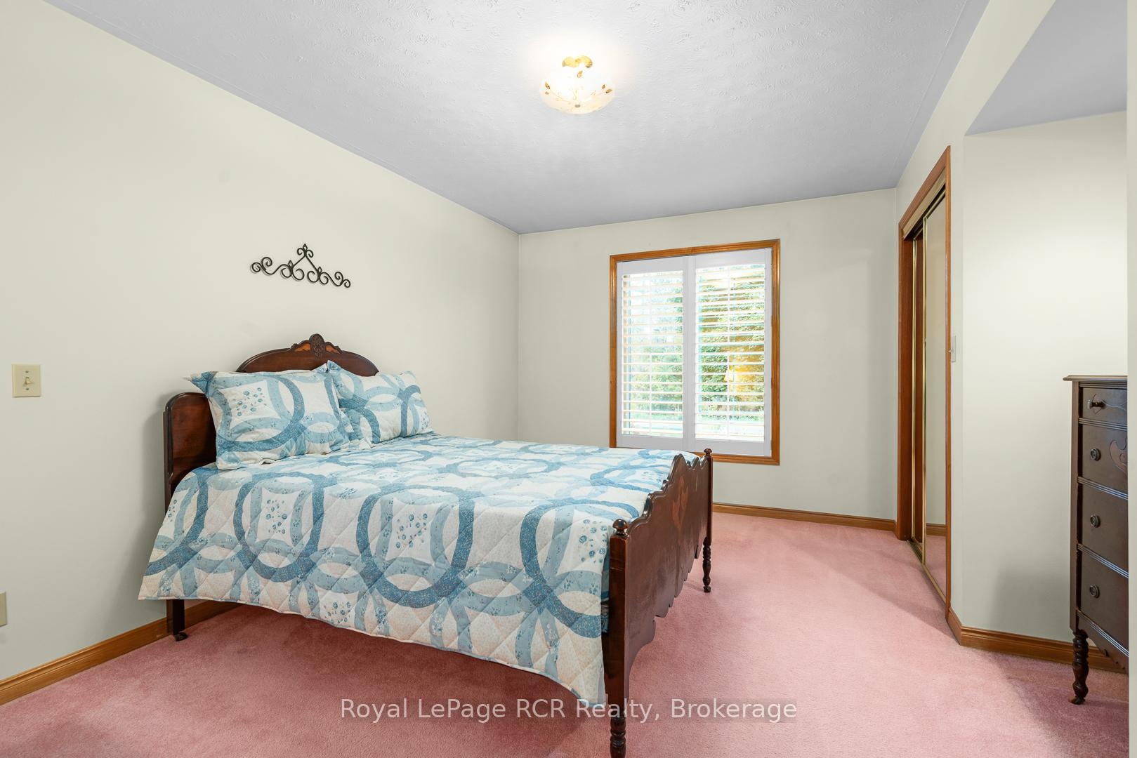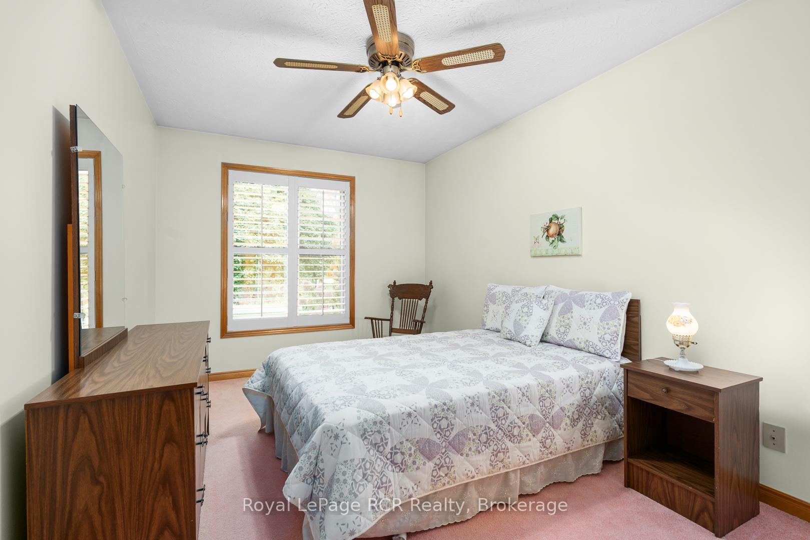 Tucked away on a dead end street in the charming village of Ayton, this solidly built 1993 bungalow offers quality construction. The home features a fully bricked exterior, an oversized double garage with walk-down access to the lower level, a paved driveway, and full truss construction-allowing you to remove interior walls if you ever wish to reconfigure the layout. Step inside to a bright, open kitchen and dining area with patio doors leading to the back deck, perfect for enjoying the peaceful backyard with beautiful mature trees. The living room features a large picture window, a welcoming front foyer and a cozy propane fireplace for cold winter nights. Three bedrooms (primary bedroom with double closets & interior lighting), 1.5 bathrooms, hallway linen closet and laundry area complete the main level. The lower level is bright with multiple windows and offers an excellent opportunity for finishing into additional living space. Further features include central air, central vac, air exchanger, full appliance package and under-cabinet lighting. Move right in or update the décor to suit your taste. Furnace 2014 and roof 2018. Last property on the west side of the dead end road. Ayton offers a friendly, small-town atmosphere with local amenities including a gas station/service centre, Trixie's Saloon, Mum's Grab & Go, post office, Domm Construction, Normanby Community School, head office of Germania Mutual Insurance and nearby churches. Plus, with your own well and septic, you can enjoy freedom from costly water and sewer charges. Wightman fibre optics at lot line. Flexible closing. Septic pumped 2025,