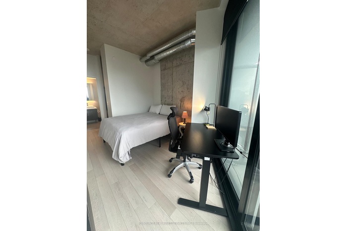 700 Sq Ft. The Best Layout In The Building. The Only Exposure With Privacy And Ambience Of Unobstructed View. Den Can Double As A Bedroom, Or Office Space Or Extend Your Living Room Space. Spacious, Bright, Floor To Ceiling Windows, 9' And 10' Foot Exposed Ceilings, Master Bedroom W/ Ensuite 3Pc Bath. Engineered Upgraded Hardwood Floors, Stone Countertops, European Cabinetry And B/IAppliances,1 Parking, 1 Locker And Bike Rack Included. *For Additional Property Details Click The Brochure Icon Below*