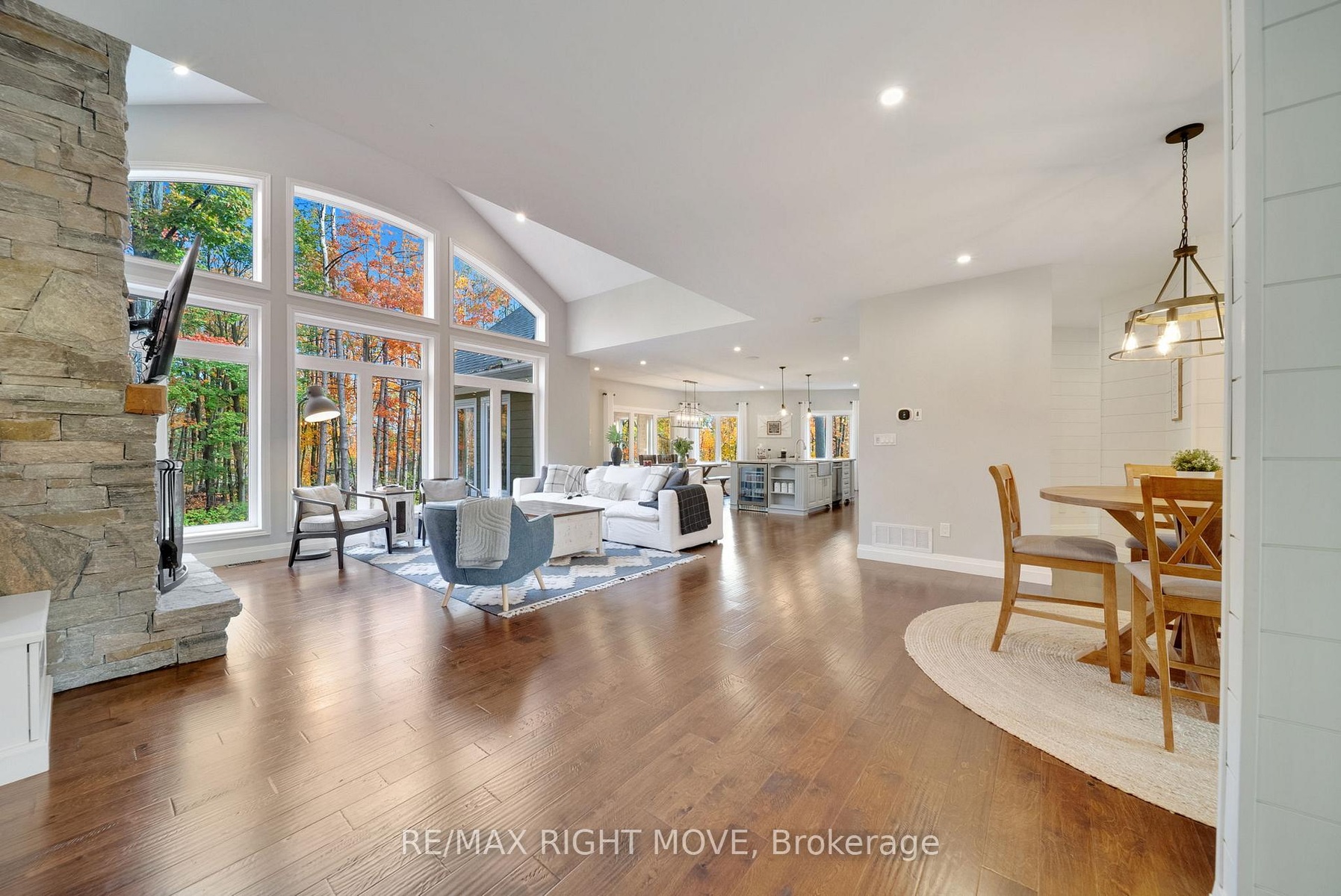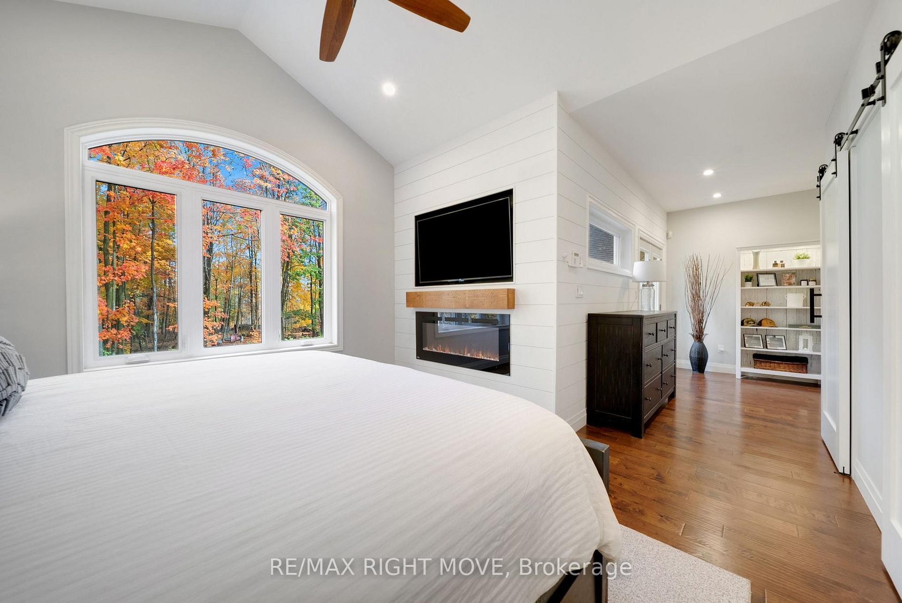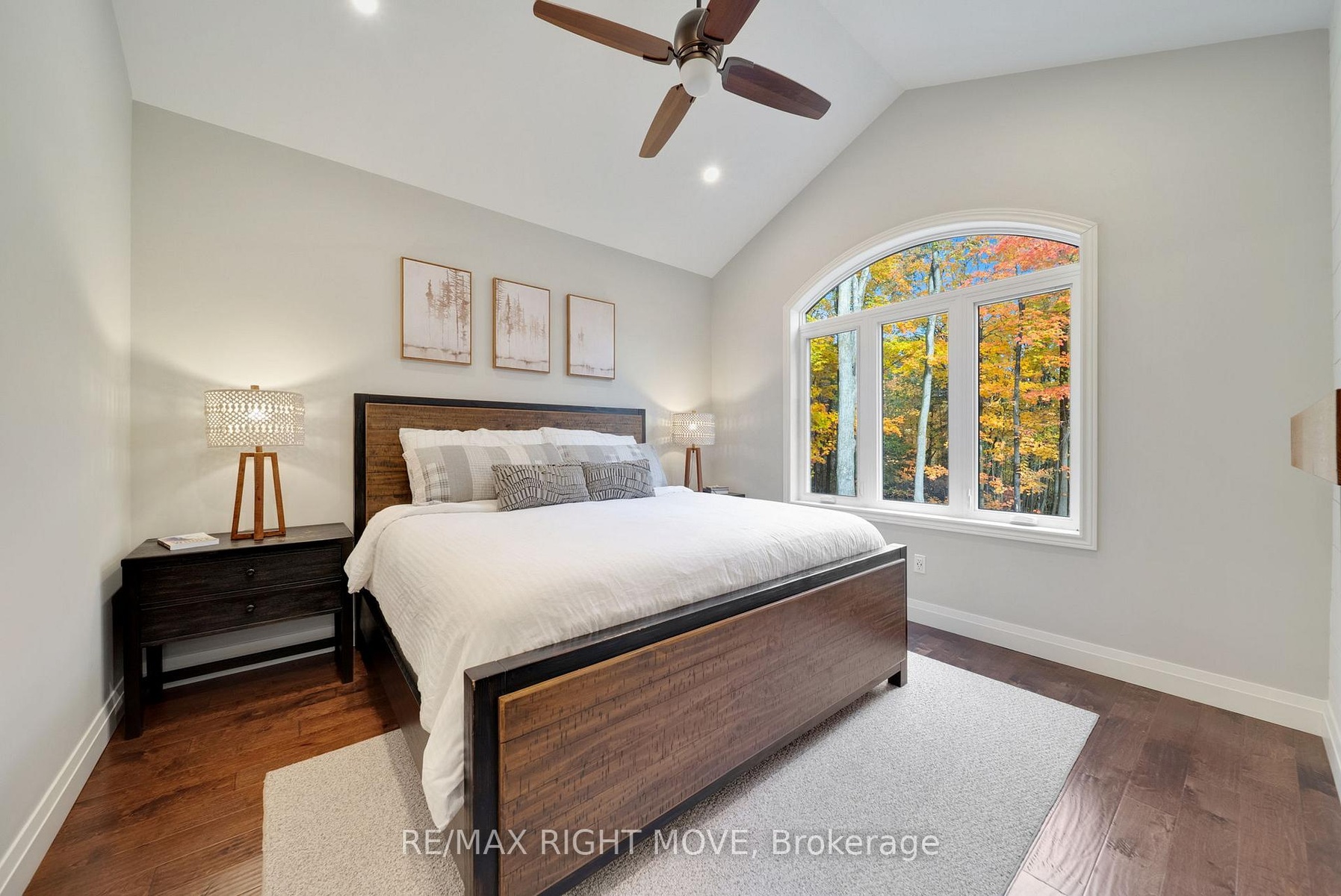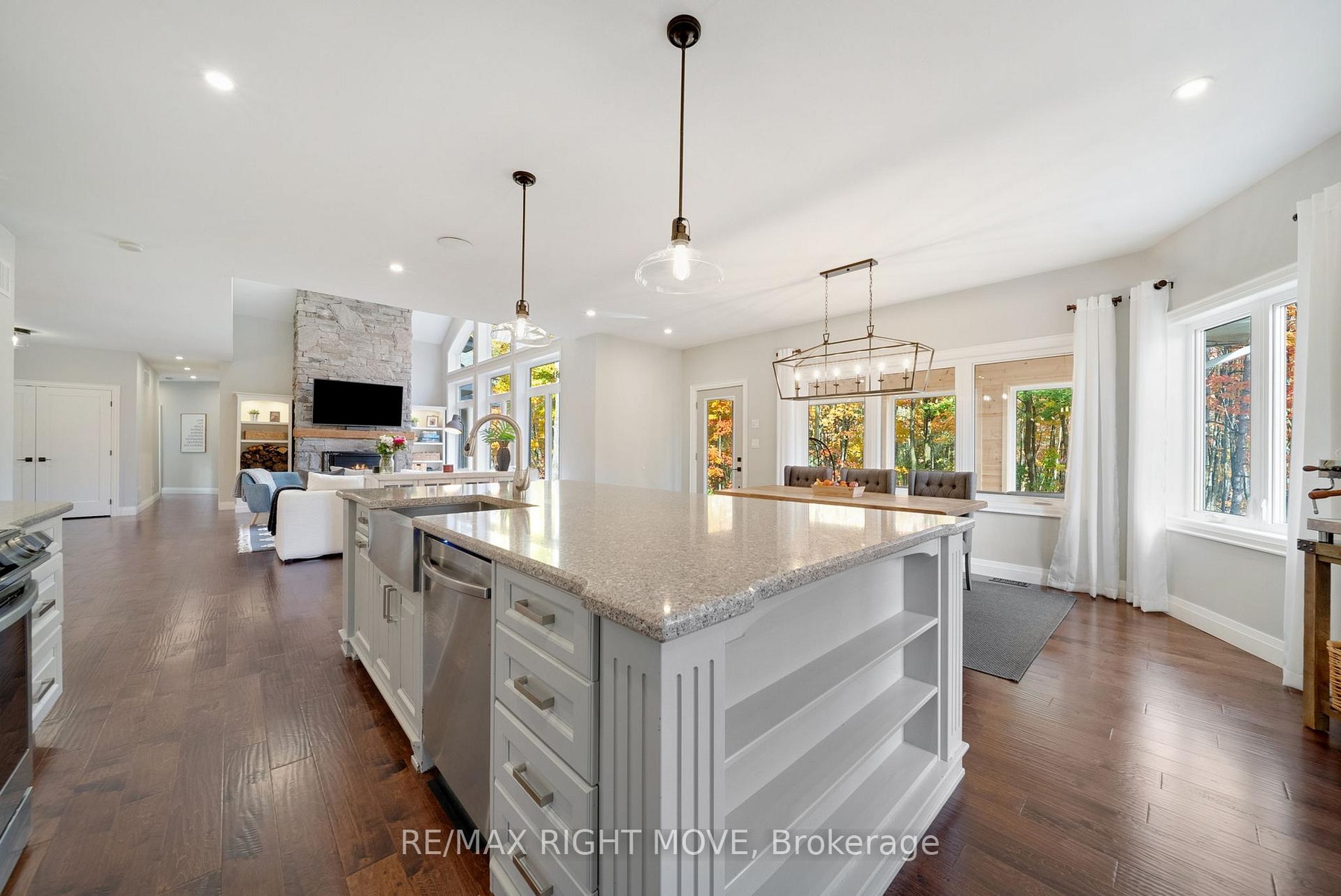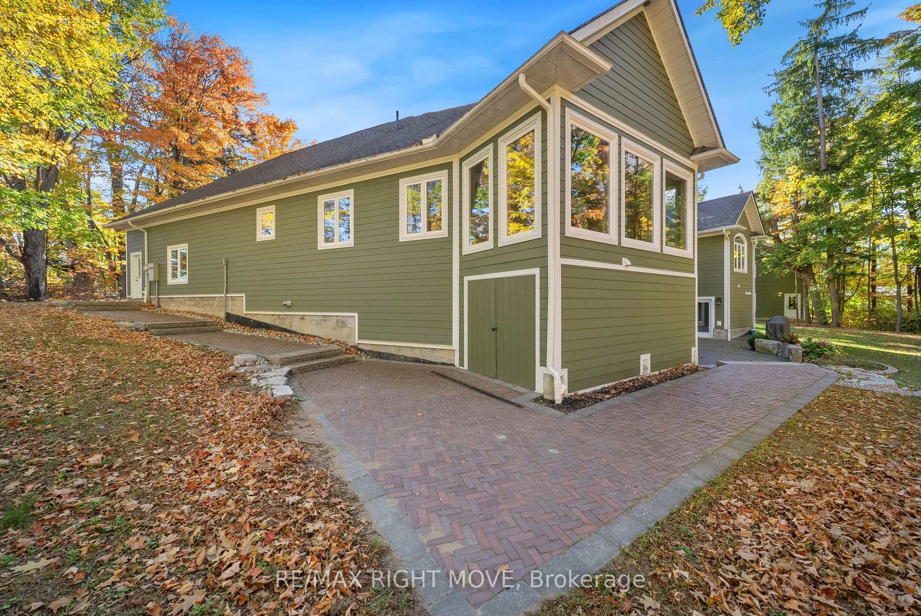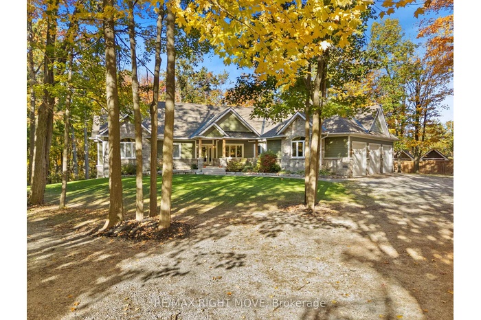 Welcome to your private getaway just 5 minutes from Orillia! This custom-built bungalow sits on a private 1-acre lot just a short walking distance to Bass Lake. The home has great curb appeal with stone and siding finishes, big gable peaks, and both an attached oversized 3-car garage and a detached 2-car garage with a loft above. Inside, you'll find an open, functional layout with a hidden room tucked behind the kitchen cupboards - perfect for a pantry or home office. The 3-season Muskoka room is the ideal spot for morning coffee and is totally privacy with no neighbours in sight. The detached garage has water and hydro, high ceilings, and an 800 sq ft loft that's great for storage or could be finished as an apartment. Downstairs, the fully finished lower level offers a bright in-law suite with two walkouts that make it feel like its own main floor. Thoughtful landscaping ties everything together, giving the whole property a warm, welcoming vibe.