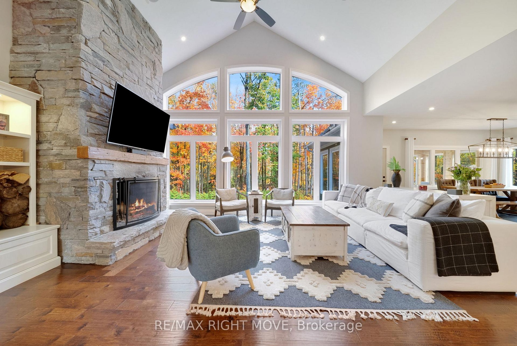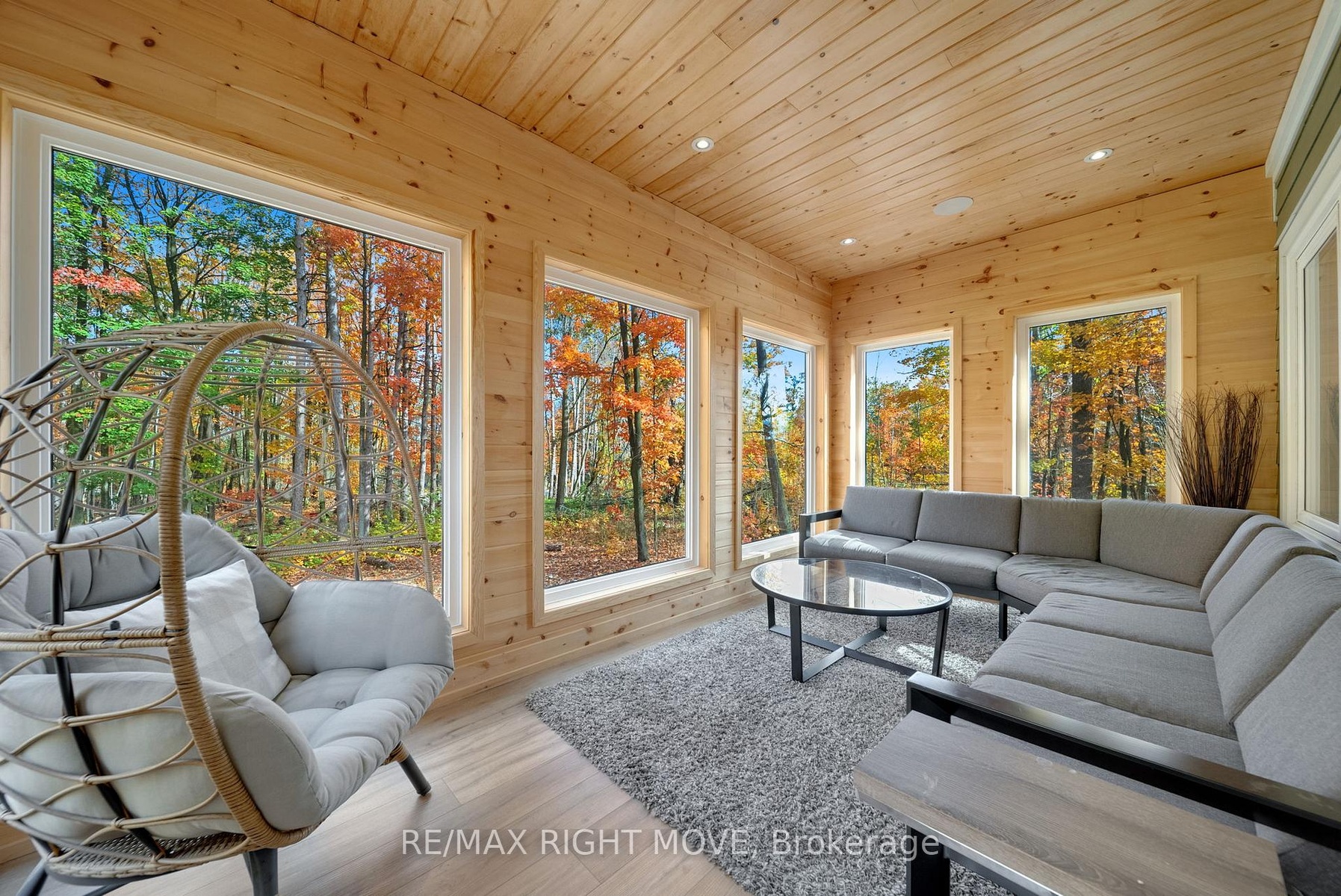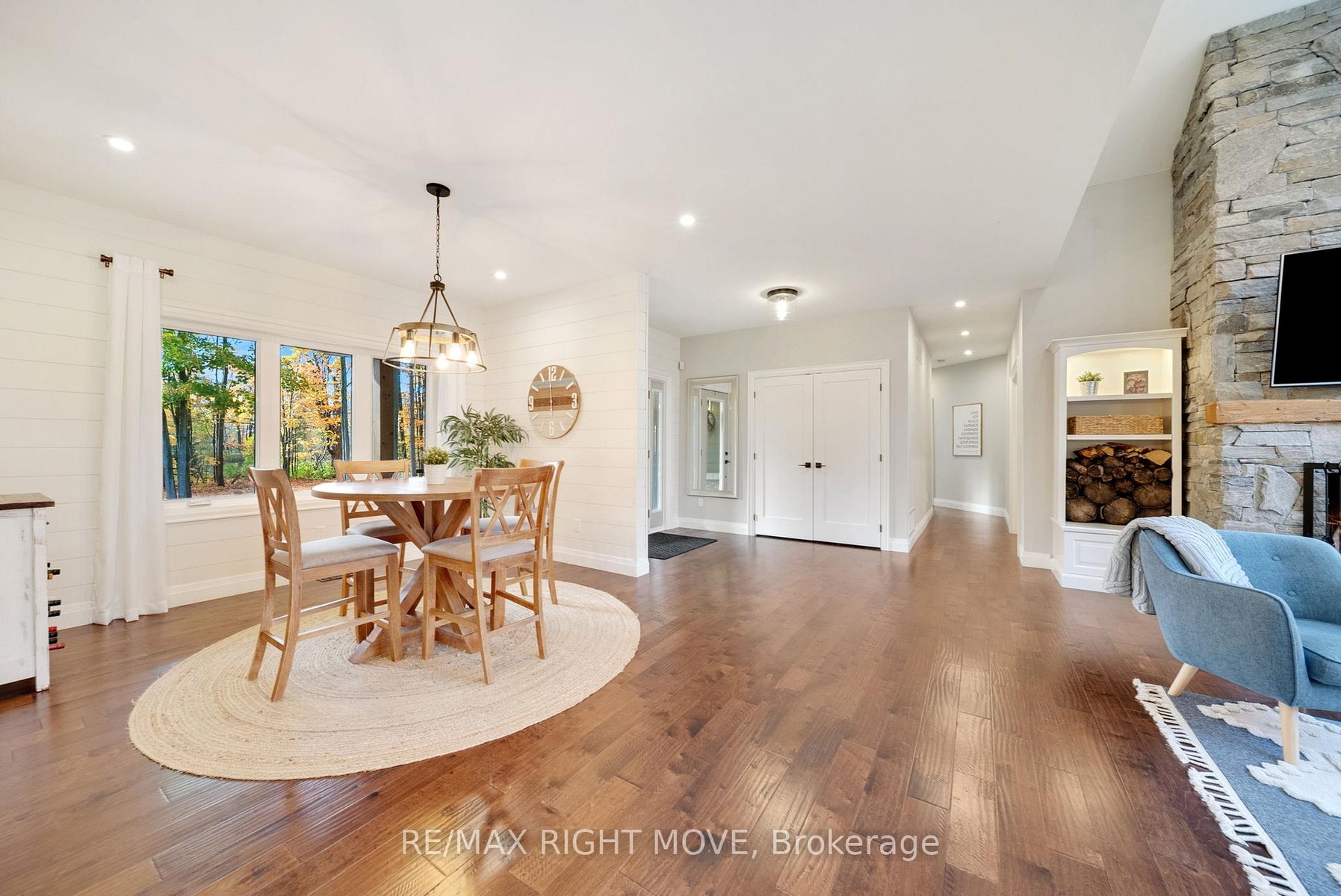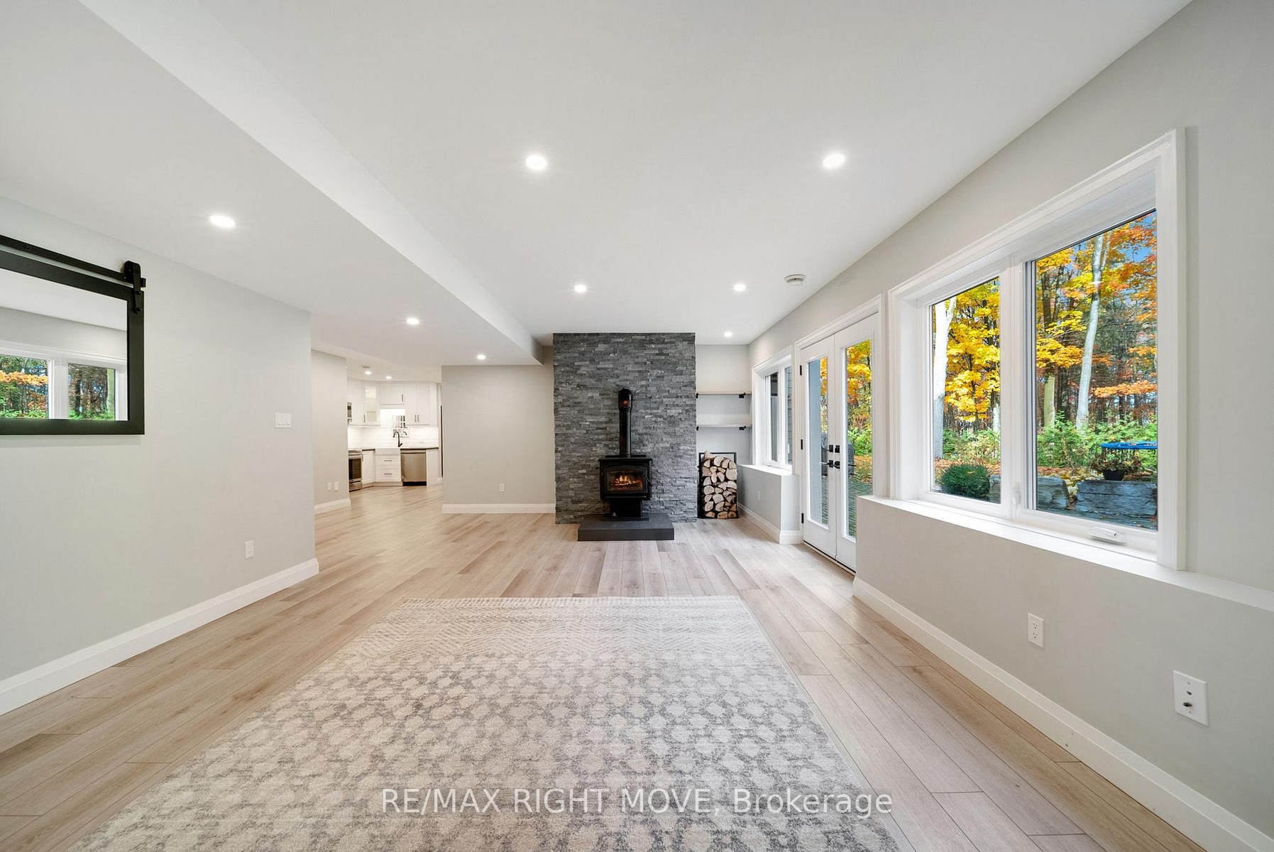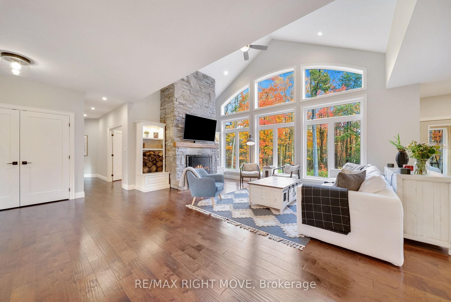 Welcome to your private getaway just 5 minutes from Orillia! This custom-built bungalow sits on a private 1-acre lot just a short walking distance to Bass Lake. The home has great curb appeal with stone and siding finishes, big gable peaks, and both an attached oversized 3-car garage and a detached 2-car garage with a loft above. Inside, you'll find an open, functional layout with a hidden room tucked behind the kitchen cupboards - perfect for a pantry or home office. The 3-season Muskoka room is the ideal spot for morning coffee and is totally privacy with no neighbours in sight. The detached garage has water and hydro, high ceilings, and an 800 sq ft loft that's great for storage or could be finished as an apartment. Downstairs, the fully finished lower level offers a bright in-law suite with two walkouts that make it feel like its own main floor. Thoughtful landscaping ties everything together, giving the whole property a warm, welcoming vibe.
