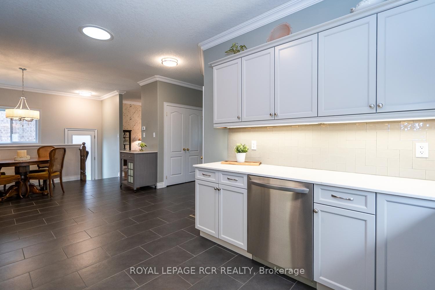Welcome to this move-in condition Bungalow on an oversized premium pie shaped lot (over 72' across the rear) This extended "Black Ash" model is much bigger than it looks from the outside and offers beautiful custom upgrades thru-out the entire home and property. The main floor has 9ft ceilings, high profile baseboards, crown molding and beautiful hardwood flooring. The upgraded and extended kitchen features quartz counters, backsplash, stainless steel appliances, under cabinet lighting, solar tube lighting, valance molding, pantry cupboard, dining area and separate large formal living room. Spacious bedroom sizes including the Primary bedroom with a walk-in closet and 5pc ensuite. Added conveniences to this level include a main floor laundry room, entrance from home to garage and a separate side entrance down to the lower level or up to the main level for a fantastic in-law potential. The walk-out lower level offers a huge family room with cozy fireplace, 3pc bathroom with walk-in shower and heated flooring plus a walkout to the absolutely beautiful yard boasting a 2-tiered cedar deck, pergola, patio, meticulously manicured and maintained lawn, stone walkways and lush perennial gardens. The lower level also offers loads of storage space and lots of room for an additional bedroom if needed and can easily be converted to a granny suite with 2 separate entrances. Desirable west end location close to the Rec Centre, library, public transit, shopping, dining and amenities.