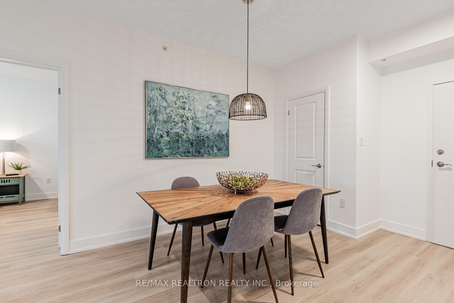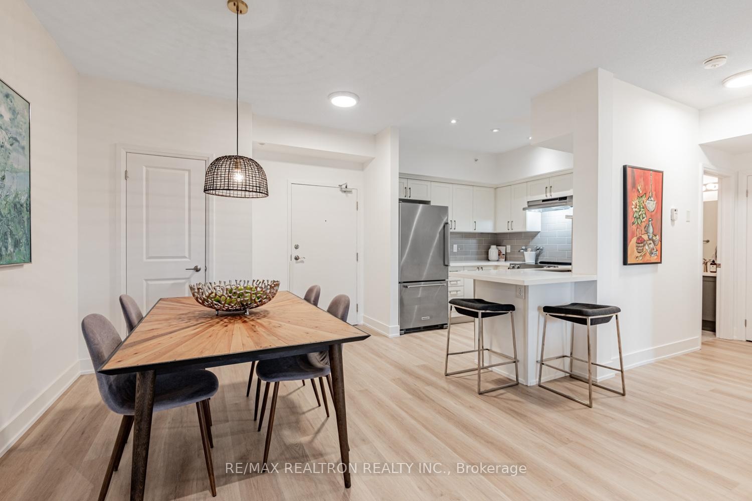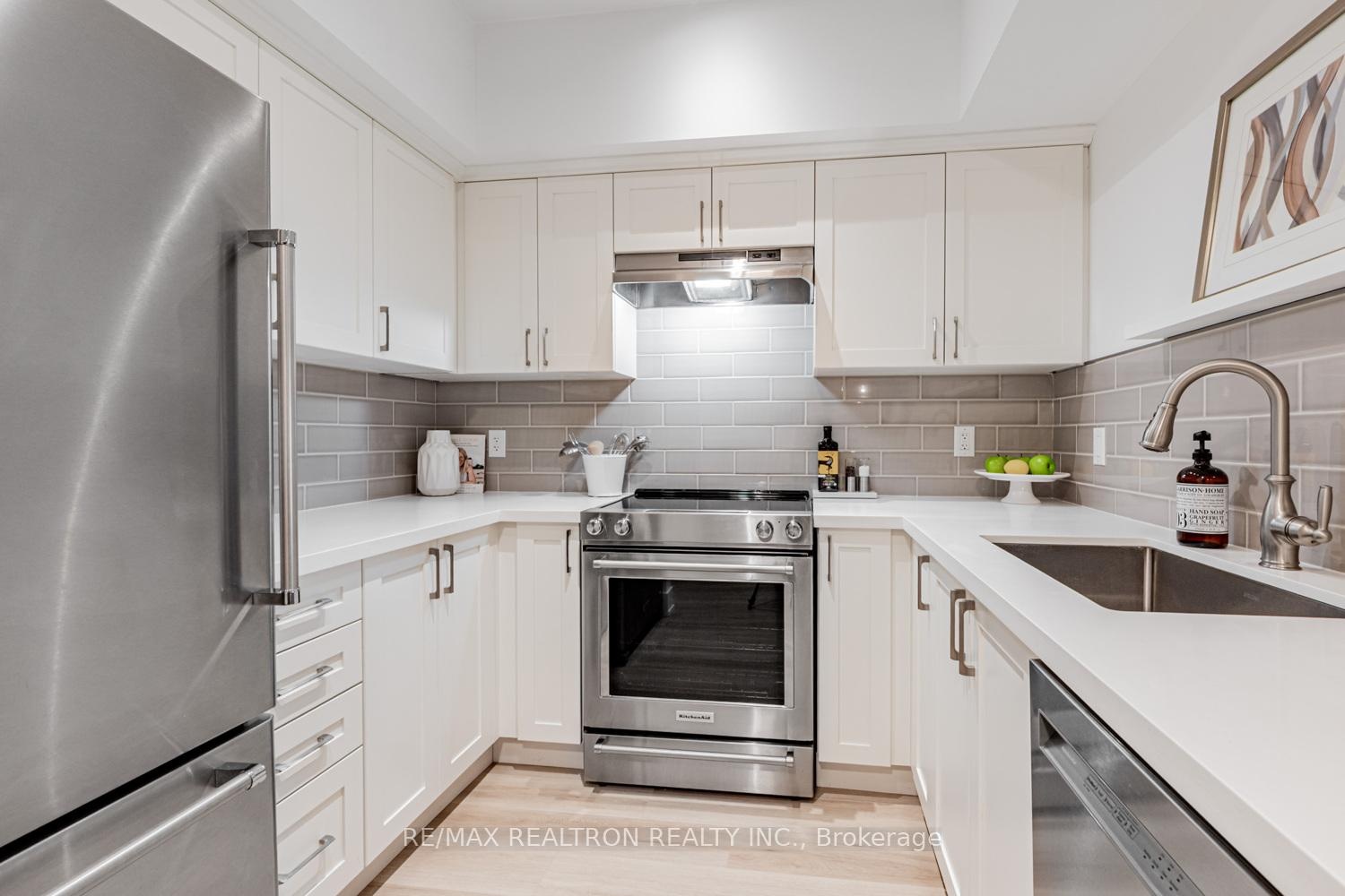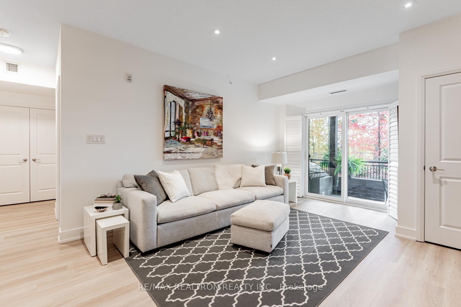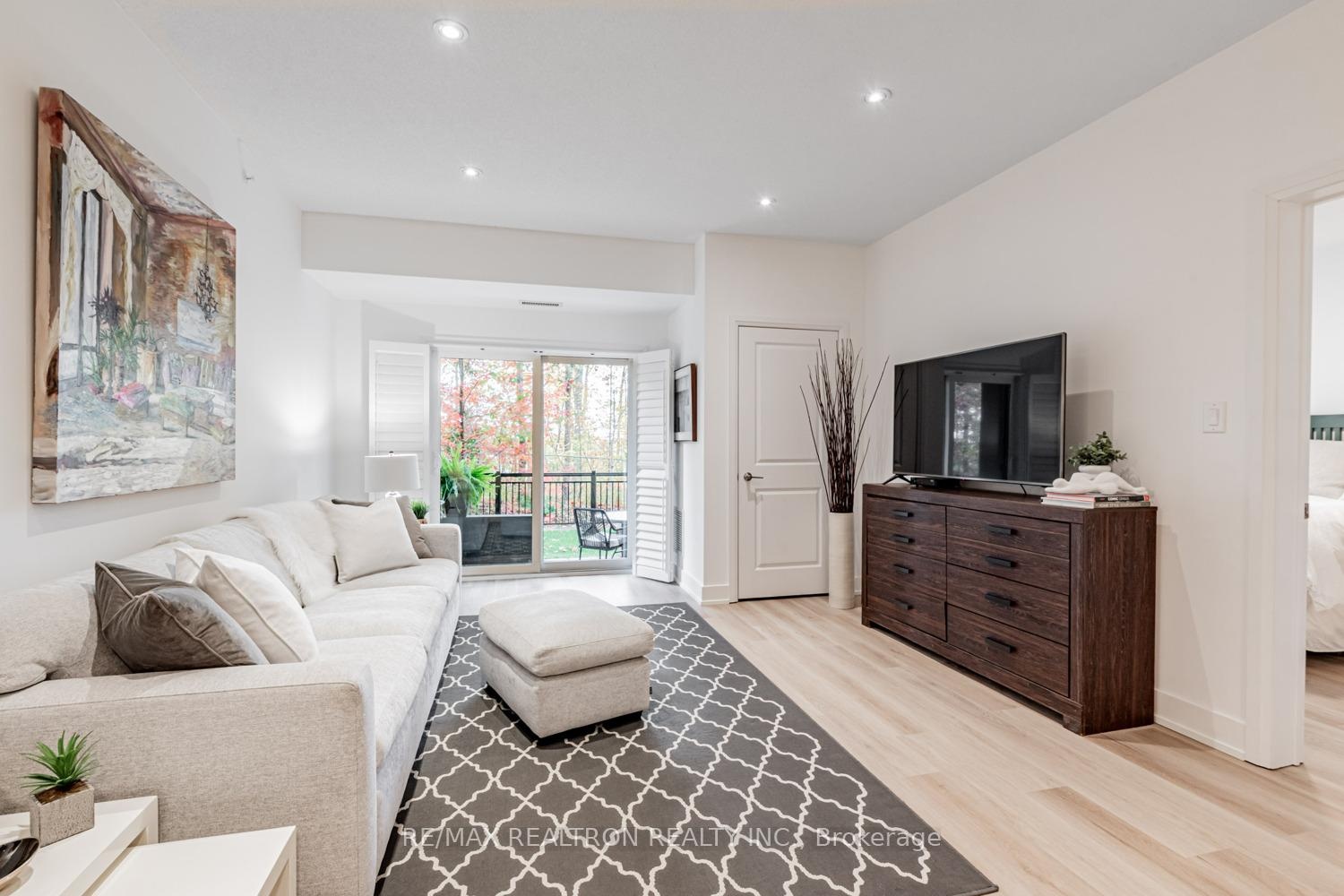 Stylish Designer Condo at The Louvre in the Gallery. 2 Beds | 2 baths | 2 parking spots | Forest view patio Immaculate and move in ready, this beautifully updated condo offers style, comfort and convenience in one of Barrie's most desirable communities . Enjoy a spacious split-bedroom layout -- ideal for guests or shared living-- with 9 ft ceilings, new white Caesarstone countertops, luxury vinyl plank flooring (Sept. 2025), pot lights, California shutters and 5 1/2" baseboards for a fresh modern look. Both bedrooms are bright and generous with large windows and ample closets. The primary suite includes a private ensuite, while in-suite laundry adds everyday convenience. Relax on your private ground -level patio with serene forest views and fenced green space -- perfect for entertaining or pets. Includes two parking spots, a locker, and access to a rooftop patio. Just 2 minutes to Hwy 400 and close to shopping, transit, and local amenities, this home offers the perfect blend of modern living and natural tranquility--welcome to The Louvre at The Gallery.