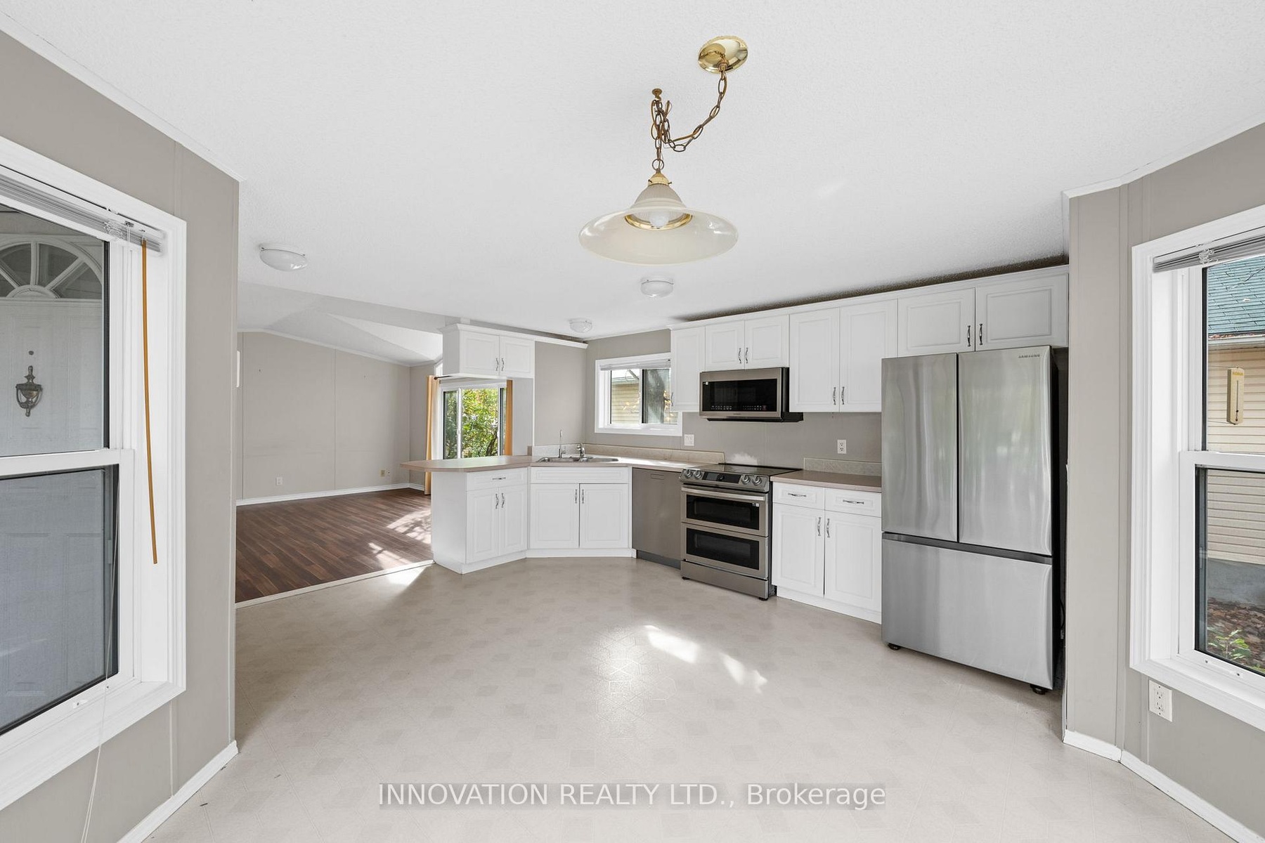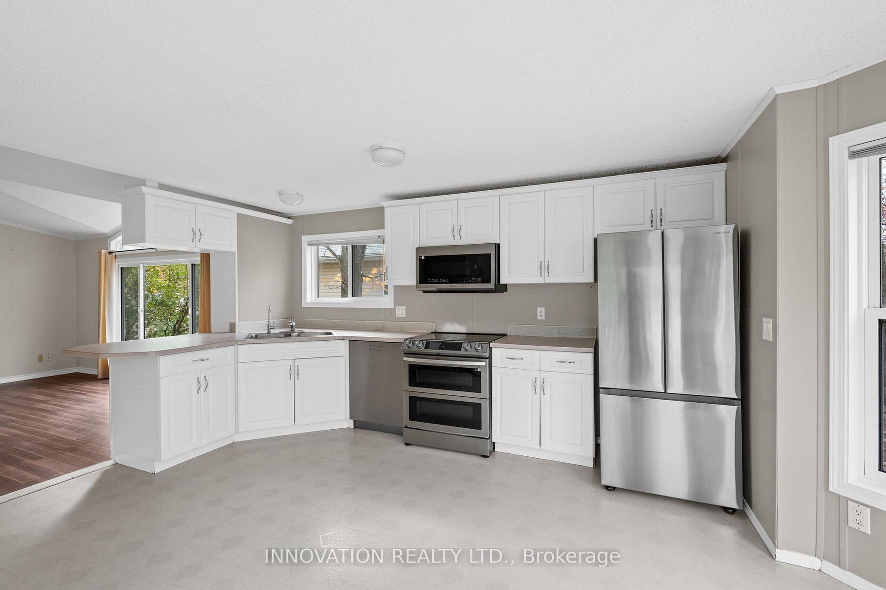 Welcome to this lovely mobile home bungalow with 2 bedrooms and 2 bathrooms, in the desirable Albion Sun Vista community in Greely, a short 10-minute drive south of the Ottawa Airport. This model offers 2-bedrooms as well as a family bathroom and a full ensuite bathroom. Spacious open-concept layout with separate dining and living areas. The kitchen offers loads of cupboard and counter space with newer stainless steel appliances. Convenient one-level living with laundry facilities. Enjoy an incredible outdoor space with new and spacious composite deck, private and beautifully wooded landscape is like your private park. Great location within the community backing on to the forest. Ample surface parking for you and your guests. Situated on leased land, the monthly association fee of $676.82 includes land lease, property taxes, well and septic maintenance, water testing, garbage removal, and common area maintenance. A perfect option for those looking for an affordable home in a quiet neighbourhood to enjoy this rural setting close to shopping, restaurants and city amenities!