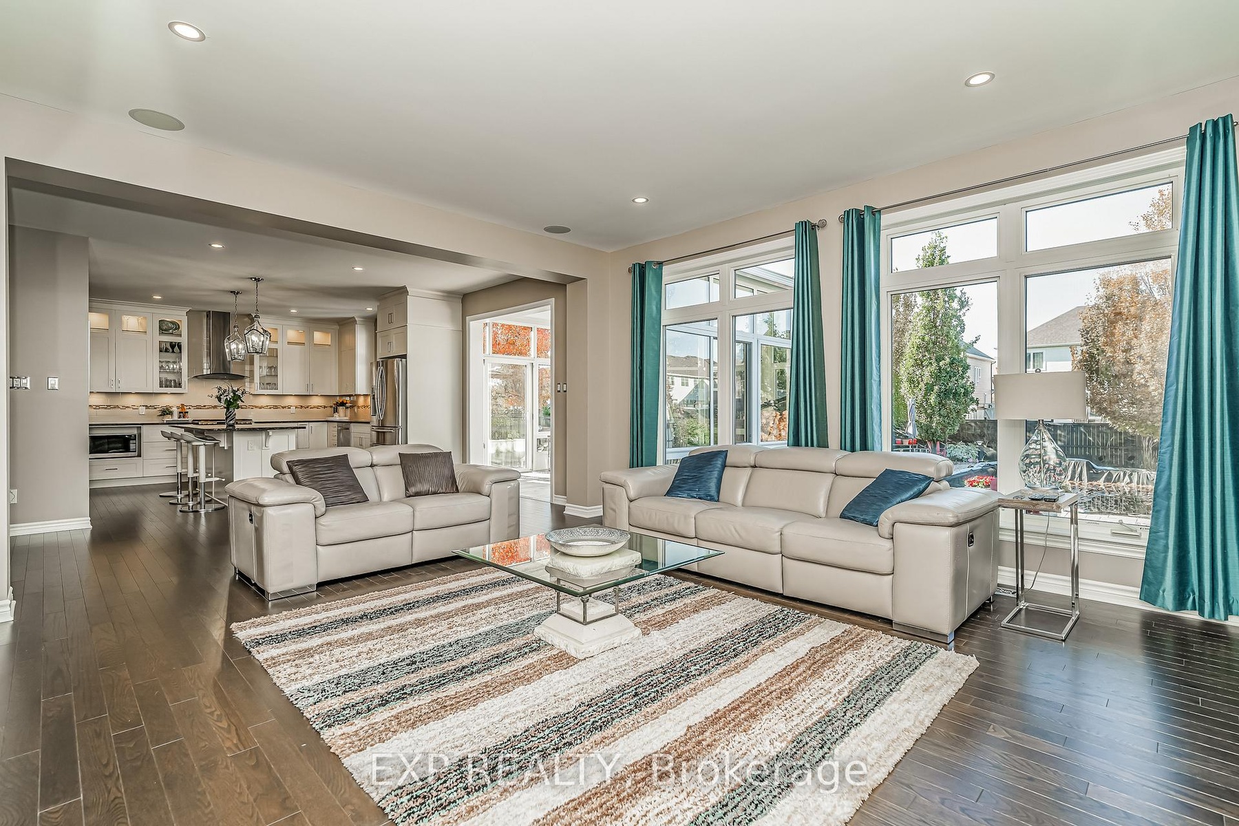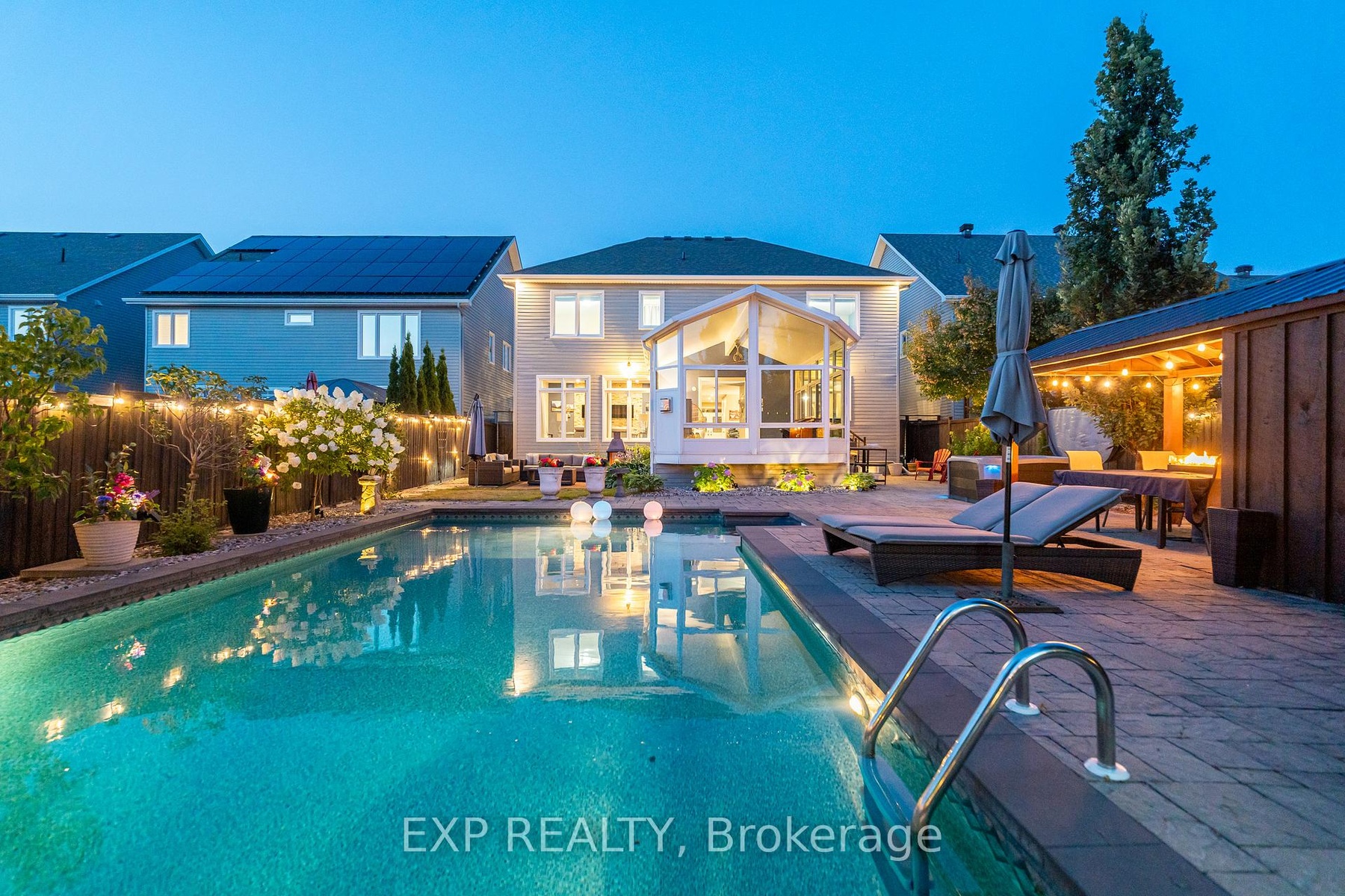 Attention growing families and move-up buyers! This fully upgraded, turnkey 4+1 bedroom, 5 bathroom detached home sits on one of the largest and most premium lots in Half Moon Bay - a highly sought-after Barrhaven community. Offering approximately 4,900 sq. ft. of finished living space (including the fully finished basement), this property was designed for space, comfort, and entertaining. The main level features a spacious foyer, 9-foot ceilings, and newly installed (2025) hardwood flooring throughout. The custom kitchen includes premium cabinetry, quartz countertops, a large centre island, and pantry storage with an additional fridge - ideal for large families. The open-concept family room is perfect for everyday living and hosting. A standout feature of this home is the custom sunroom (2015), finished with heated floors, wood plank tile, and a gas stove. This is an incredible extra living space for relaxing or gathering year-round. Upstairs you'll find four generous bedrooms, each with its own walk-in closet. The primary suite offers a large walk-in closet and a luxurious 4-piece ensuite with soaker tub and glass shower. One bedroom features its own private ensuite, and the remaining two bedrooms share a large connected 4-piece bathroom - a convenient layout ideal for growing families. The fully finished basement adds even more usable space, including a private gym, dedicated theatre room, a bedroom with two walk-in closets (one of which is extended storage), and a 3-piece bathroom - perfect for teens, in-laws, or guests. The backyard is a true outdoor oasis. The property is fully landscaped and interlocked front to back and features an inground saltwater pool, hot tub, and dedicated fireplace/lounge area, creating the perfect setting for summer entertaining. Located in Half Moon Bay, one of Barrhaven's most desirable and fastest-growing neighbourhoods, you're close to top-rated schools, parks, trails, shopping, fitness, and everyday amenities.