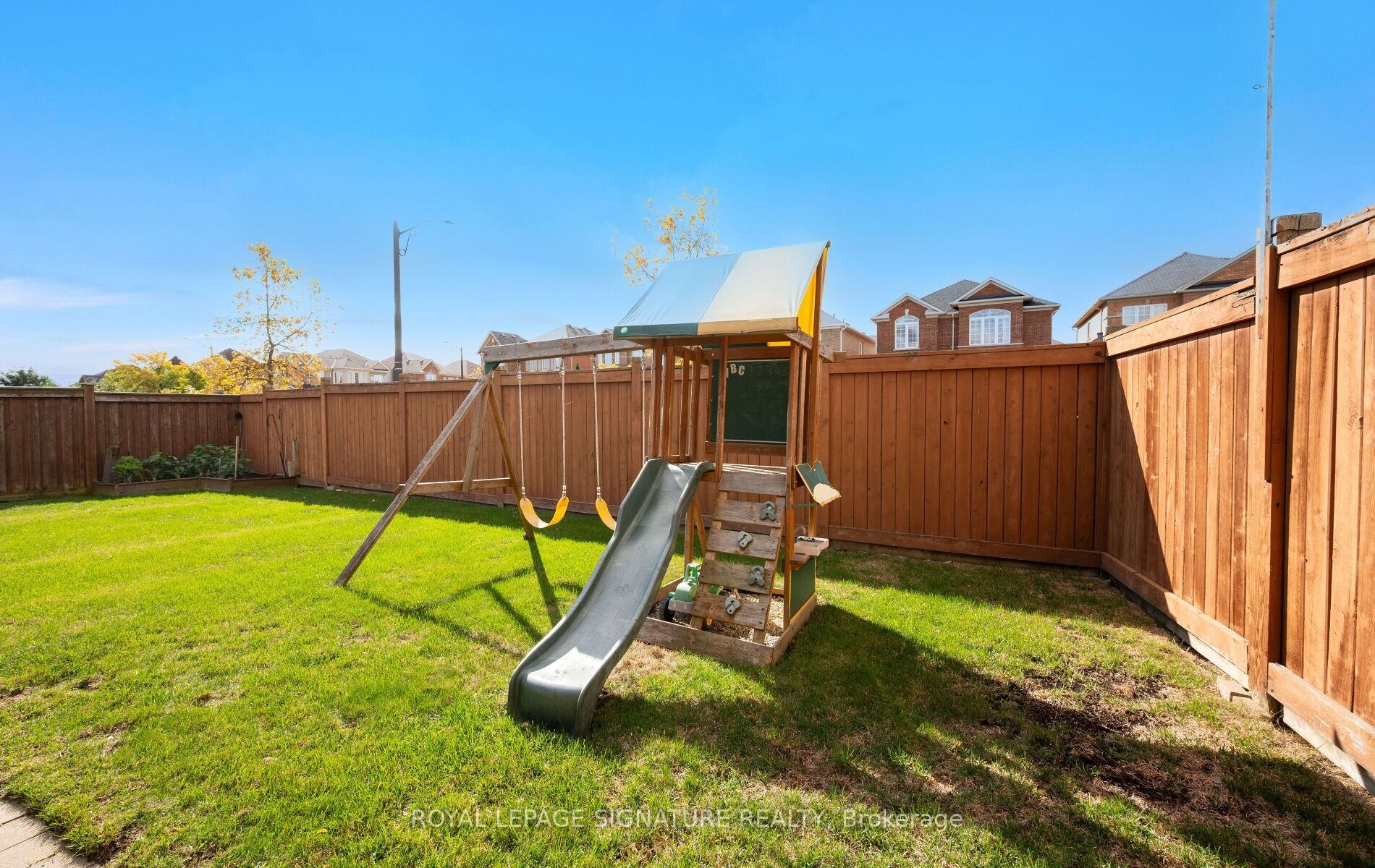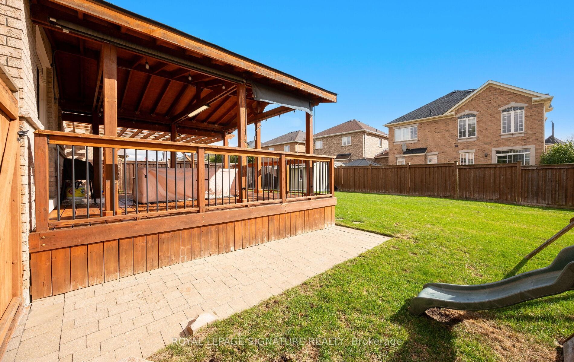 Move up to this spacious 4-bedroom well-maintained family home with over 3400 sq ft of bright airy living space, a finished basement, and a2-car garage. Sitting on a corner lot near to Van Kirk & Mayfield, it is located only minutes from Hwy 410, top-rated schools, shopping, and parks. The front yard boasts an inviting curb appeal with its beautifully manicured lawns and flower beds, an automatic sprinkler system, and accented by three garden pole lamps. The ground floor features a separate study/office for work-at-home needs, and separate family and dining rooms. From inside, access the 2-car garage via the ground floor laundry room. An elegant oak staircase with wooden spindles leads up to four generous-sized bedrooms. The primary features a deep spacious walk-in closet and a large double-sink en-suite, shower, and soaker tub. Two other bedrooms also have their own private ensuite bathrooms. The professionally finished basement features a modern kitchen, a large bedroom, and full bath - ideal for guests or extended family, or even an additional home office. A central vacuum system keeps this entire home in truly spotless condition. Step out from the kitchen out onto a large, covered patio, built over tiled ground - no undergrowth ever. The fenced private backyard is among the largest in the neighbourhood and features a lush green lawn perfect for family fun and entertaining. Additional highlights include an EV charging outlet in the garage, a 5-camera security system, a garden shed, and seven appliances: main floor fridge, stove, dishwasher, washer, dryer, basement fridge & stove, all light fixtures, and window coverings. New roof was completed this summer