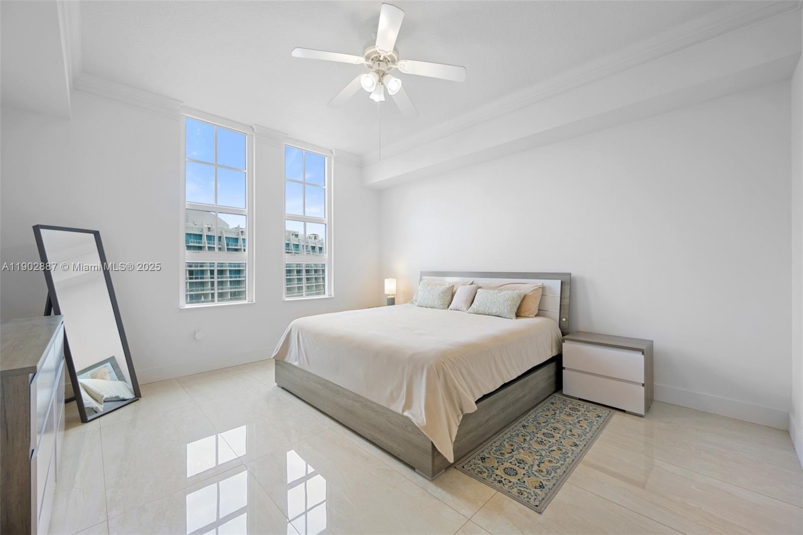 Discover this beautifully renovated 2-bed, 2.5-bath waterfront unit, offering an open living space with stunning water views featuring 10–11 ft. ceilings and abundant natural light. The open layout features a modern granite kitchen with stainless steel appliances, contemporary flooring, and a private terrace overlooking the tranquil waterfront. The primary suite boasts two walk-in closets and a spa-inspired bathroom with dual vanities, a soaking tub, and a separate shower. Unit includes two assigned covered parking spaces. Residents enjoy a waterfront boardwalk and dock, pool and hot tub, modern fitness center, clubhouse with pool table, and 24-hour security. Situated near an accessible marina and walking distance to Aventura Mall, fine dining, beaches, paddle courts, and top-rated schools