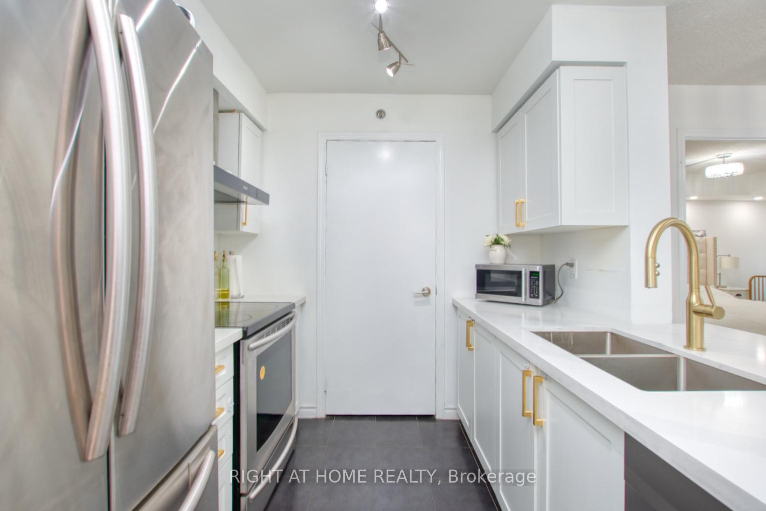 Condo Living At its Best! South-Facing With A CN Tower View. Newly Renovated Kitchen with Beautiful Marble Countertops and new cabinetry. Open Concept unit with NEW Pot lights and light fixtures throughout. Huge Pantry room. Includes Premium Parking Spot & Premium Large Locker. Steps to public transit, library, school, Lawrence plaza, Yorkdale mall, HWY 401 & Allen Rd.