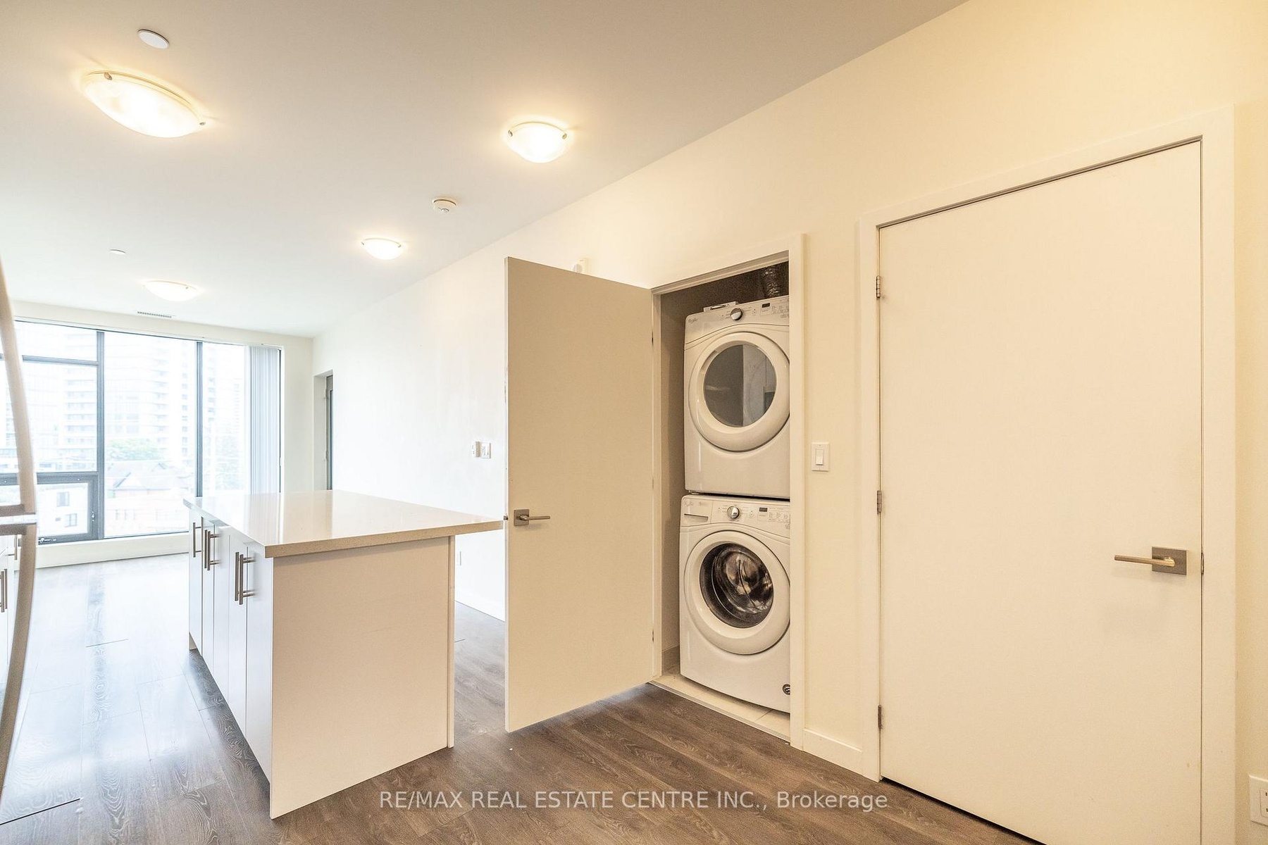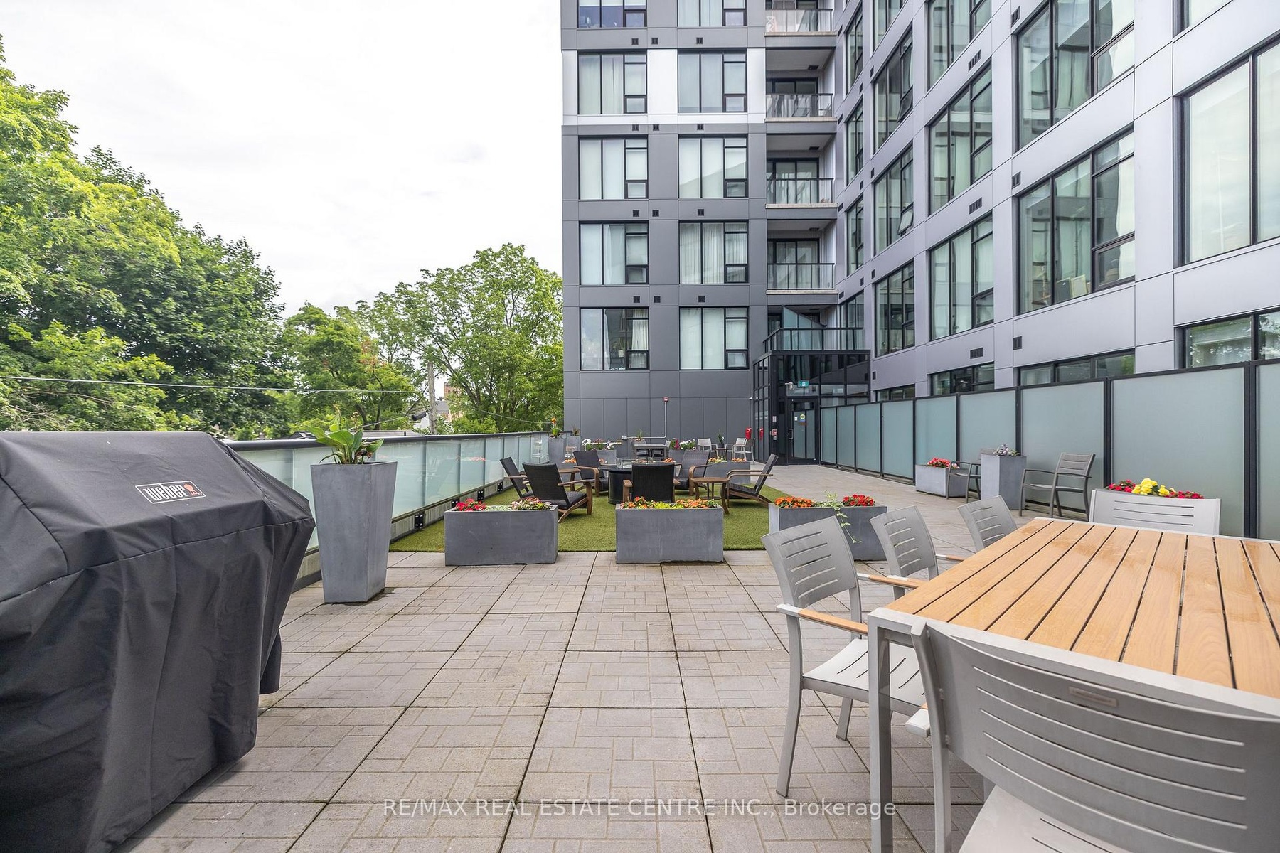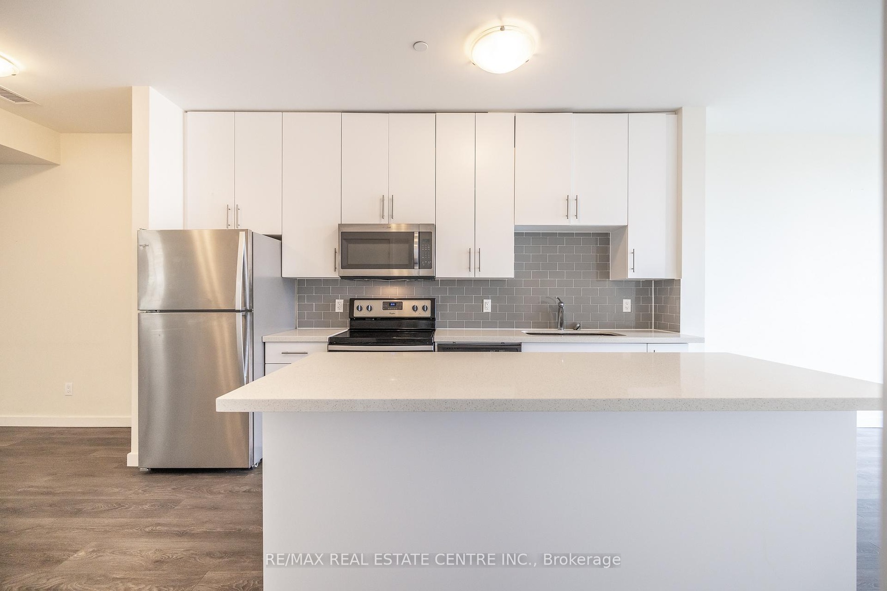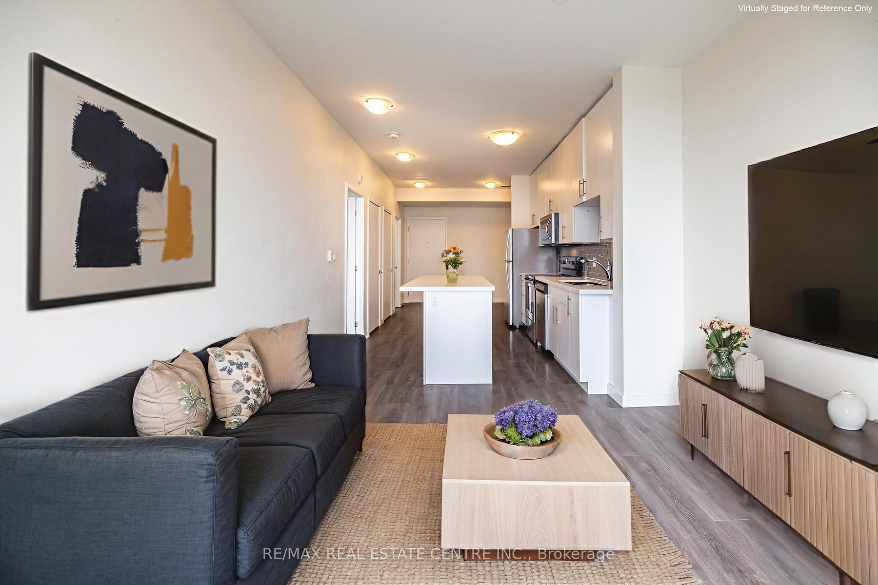 Welcome to this beautiful one-bedroom condo with Den in the popular Midtown Lofts Building - Unit 412 in the heart of Kitchener. 709 sq. ft as per MPAC, this condo offers plenty of living space and boasts floor-to-ceiling windows that flood the space with natural light. You will be delighted by the spacious foyer, four-piece bathroom, beautiful kitchen with white cabinetry, stainless steel appliances and a large island, perfect for cooking and entertaining. The living room is complete with custom blinds and leads out to your very own private balcony. The bedroom has everything you need, its spacious, has a walk-in closet that leads to the bathroom, and features custom black out blinds. Enjoy the convenience of having in-suite laundry. This unit includes one underground parking spot and an oversized storage locker. This building has wonderful amenities such as an exercise room, party room, rooftop deck with a community bbq, and visitor parking. The condo fees include heating, A/C, water, and more! This location is tough to beat with some of the best restaurants, cafes and shops in the region just steps away! Need to commute? The ION LRT and GO Station are minutes away, ensuring effortless commuting! Ready to see it for yourself? Book a private showing today!
