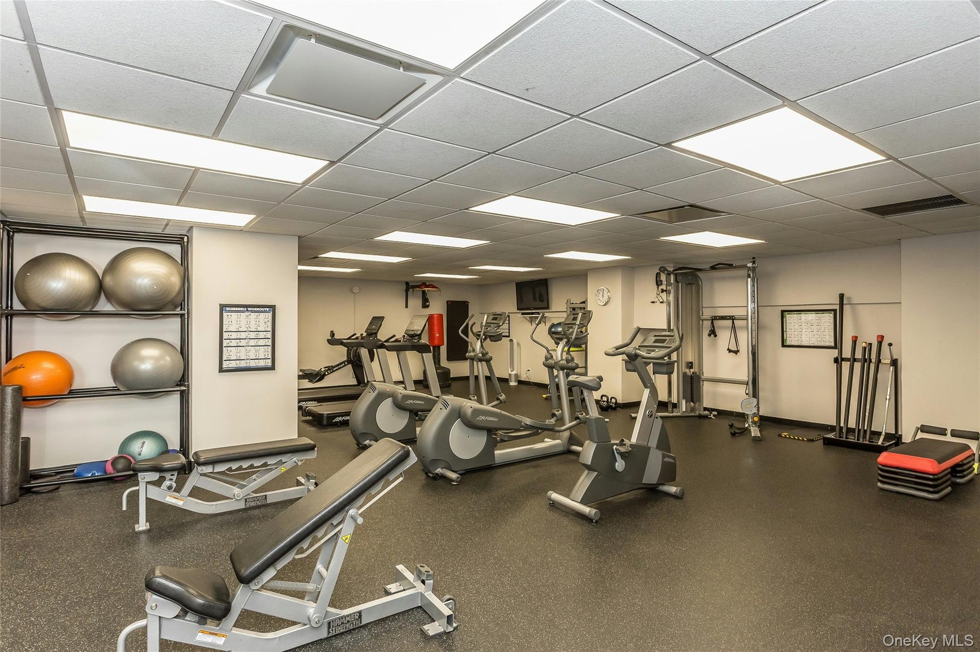 - Exercise room with a drop ceiling