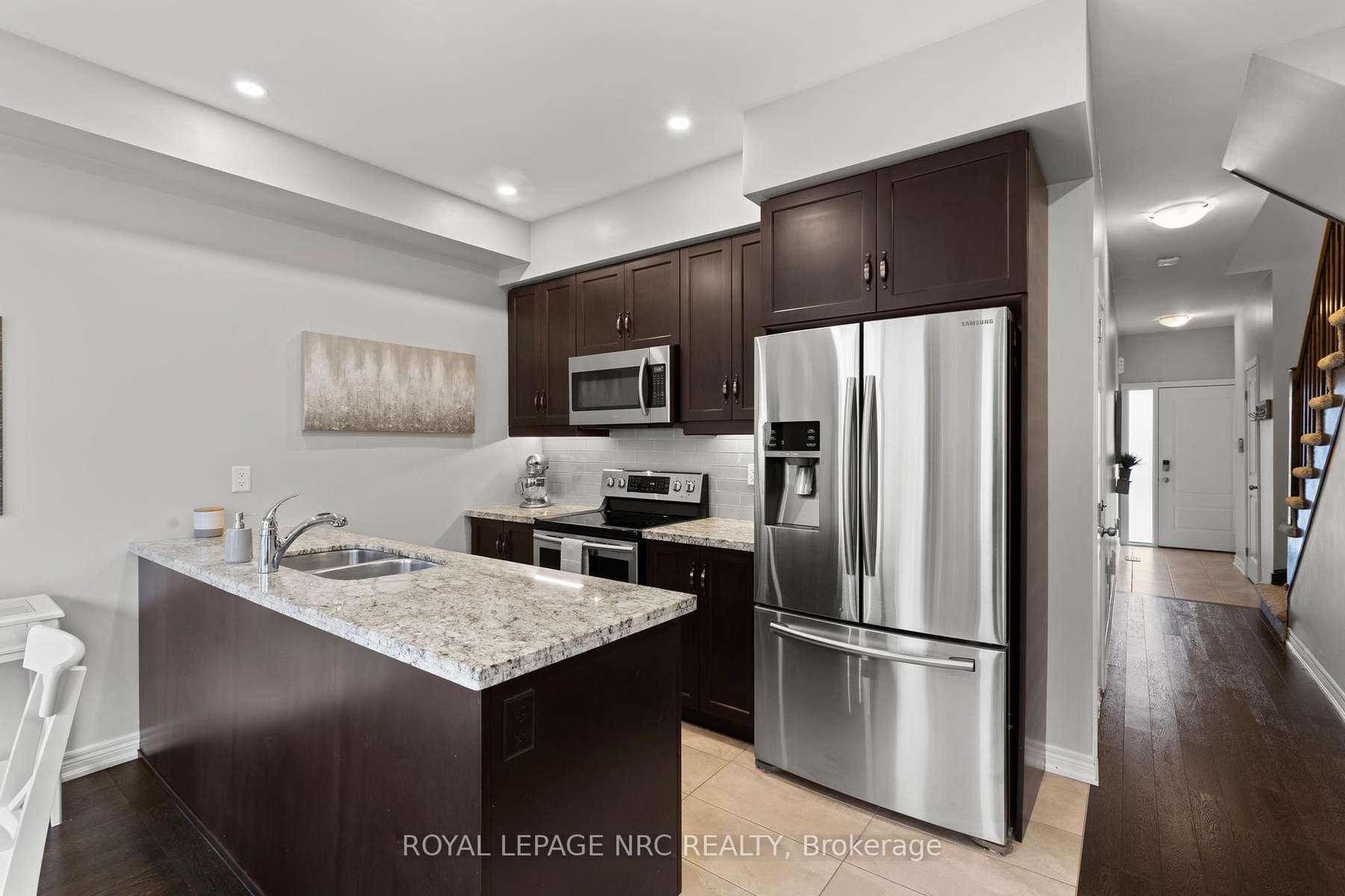 Welcome to this beautifully maintained 2-storey condo townhouse, perfectly situated in a quiet, family-friendly area of Hamilton, just minutes from schools, parks, and everyday conveniences. This bright and spacious home offers 3 bedrooms, 2 bathrooms, and a recently finished basement for extra living space. The main floor features hardwood and tile throughout, complemented by elegant granite countertops in the kitchen, and a patio door from the dining room leading to a private deck, perfect for entertaining or relaxing outdoors. Upstairs, soft new carpeting creates a cozy retreat in each bedroom. Enjoy the convenience of an attached garage and easy access to additional parking nearby. With groundskeeping and seasonal maintenance looked after, you can simply move in and enjoy a low-maintenance lifestyle.