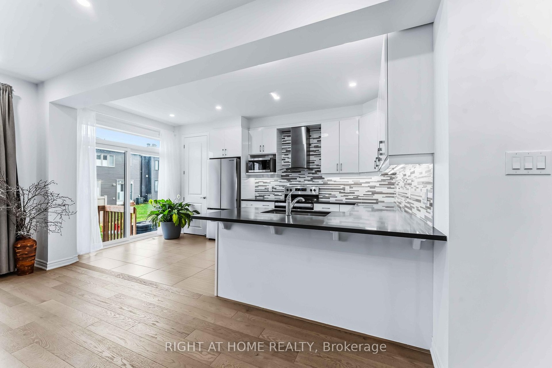 Beautifully designed, this 3-bedroom, 3-bathroom townhome offers the perfect blend of modern comfort, functionality, and style. Step inside to an inviting open-concept main floor, where natural light fills the spacious living room-an ideal space for relaxing or entertaining. The contemporary gourmet kitchen features SS appliances, quartz countertops, a central island, modern backsplash, and ample cabinetry. The adjoining bright dining area opens directly to a large, perfect for family gatherings, barbecues, or simply unwinding outdoors. A convenient powder room, welcoming foyer, and attached garage with inside entry complete the main level, adding comfort and practicality to the home's modern layout. Upstairs, the generous primary suite, complete with a private en-suite bath and a spacious walk-in closet. Two additional bedrooms, a full main bath, a convenient upstairs laundry and linen storage provide plenty of space for a growing family or guests. Located in a family-friendly neighbourhood close to top-rated schools, scenic parks, and everyday amenities, this property delivers the perfect balance of convenience and community.