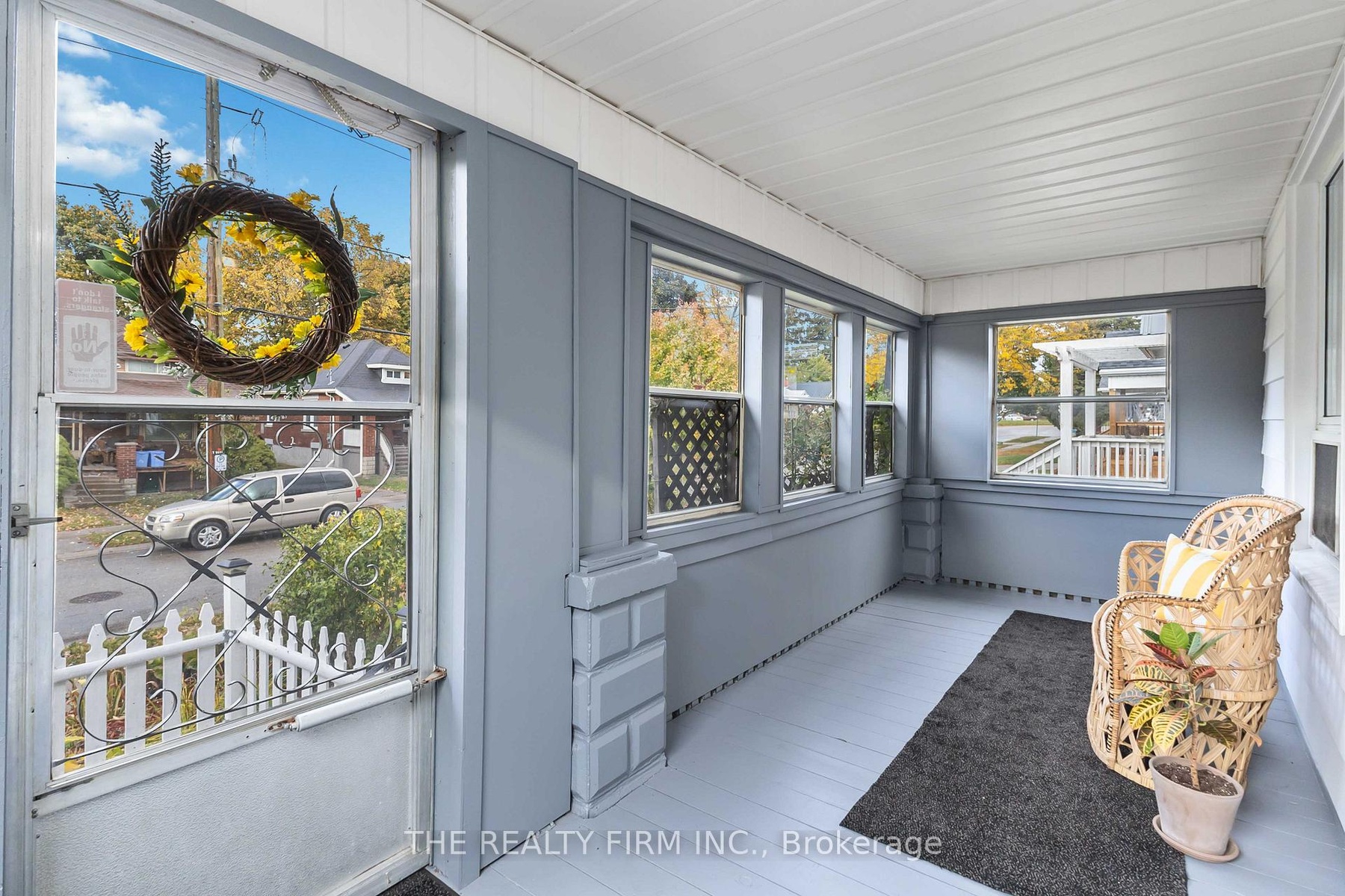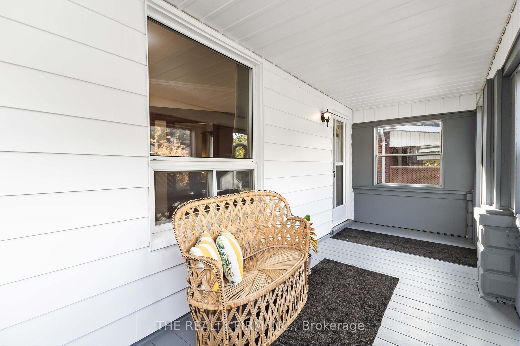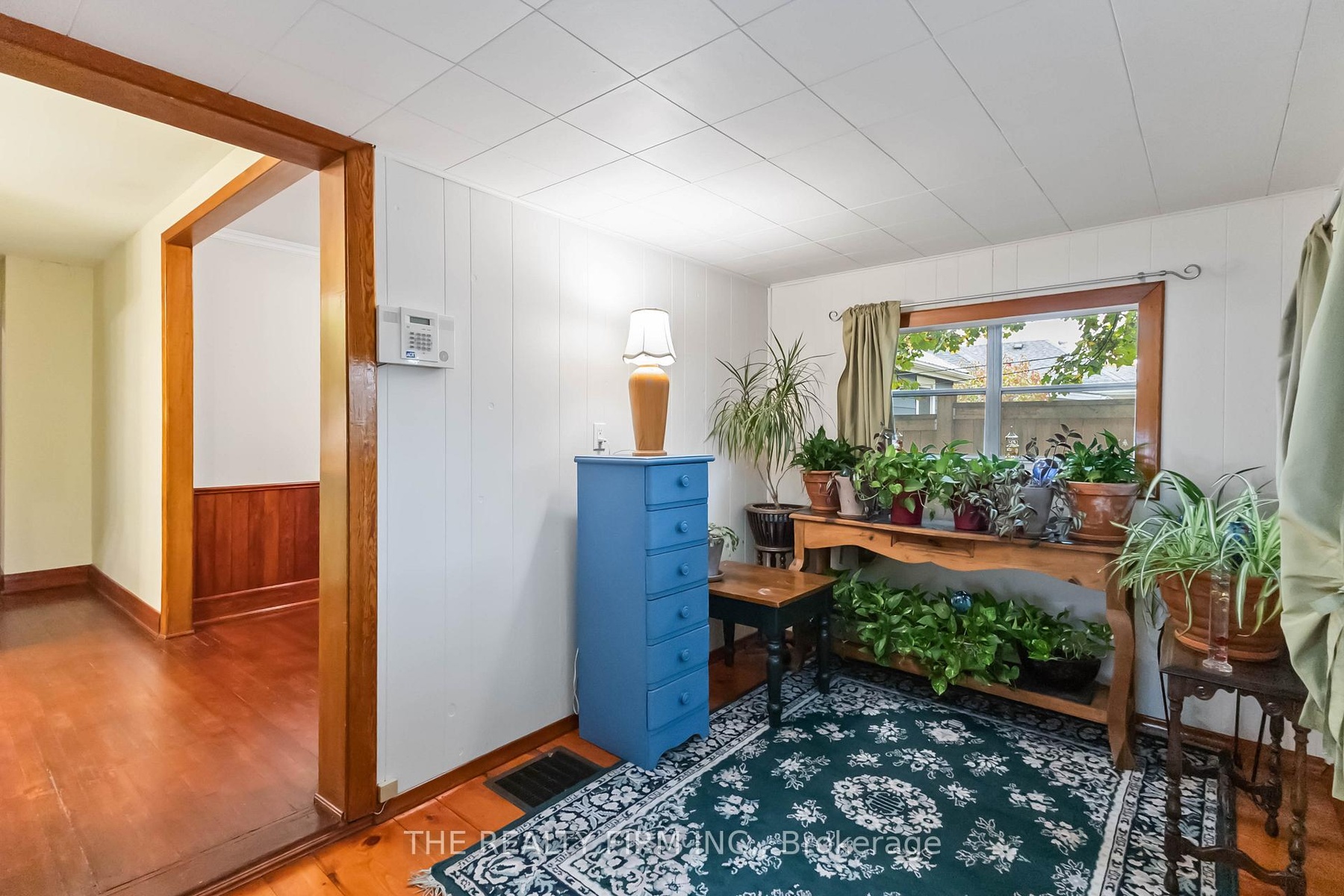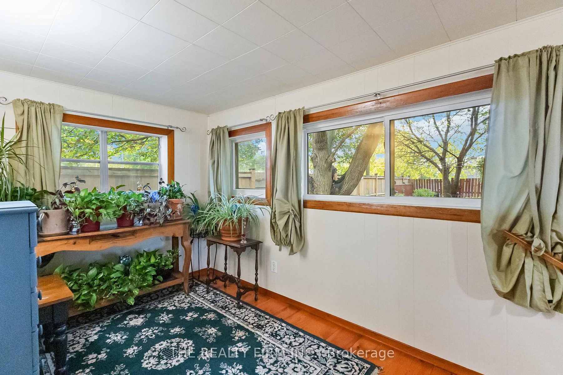 Step back to a simpler time on York Street. Just east of Kellogg's and a short stroll to the vibrant 100 Kellogg Lane - Canada's largest entertainment complex and home of the Hard Rock Hotel - this charming bungalow sits on a quiet, dead-end street that feels worlds away from the rush of city life. The enclosed front porch overlooks a lovely garden-filled front yard, inviting you to slow down and enjoy your morning coffee in peace. Inside, the home exudes warmth and character, with natural wood trim, refinished hardwood floors, and plenty of original charm. A spacious living and dining area flows into a bright wrap-around kitchen with classic wood cabinetry. Two comfortable bedrooms (previously three, with two combined to create a generous primary suite with walk-in closet) offer flexibility and comfort. At the back, a sunroom looks out over a mature, private yard with gardens and winding paths - a perfect retreat for quiet afternoons. The dry basement provides ample storage and future potential. Pride of ownership is evident throughout. With easy access to the 401, shopping, and bus routes, this home offers the best of both worlds - a peaceful escape that's still close to everything. Perfect for first-time buyers or anyone craving a slower pace and a touch of nostalgia. Upgrades include: metal roof (2018 with transferal warranty), updated panel from previous owner.