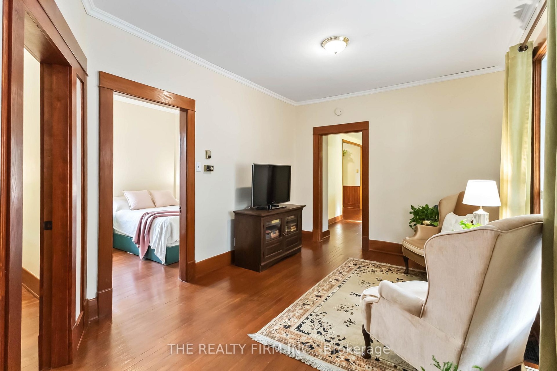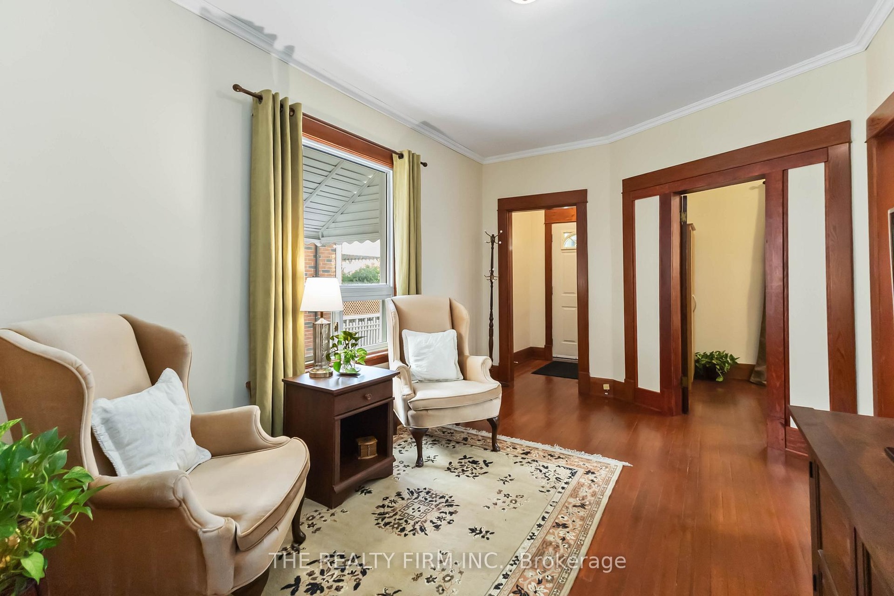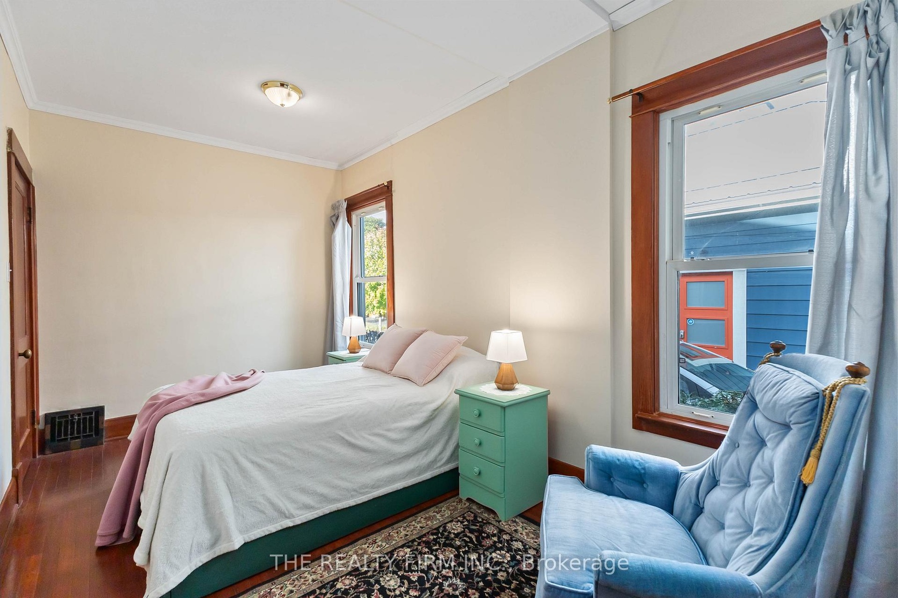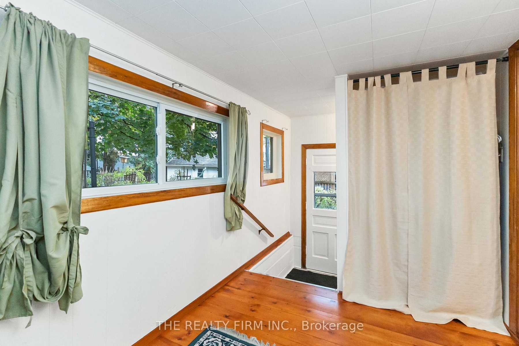 Step back to a simpler time on York Street. Just east of Kellogg's and a short stroll to the vibrant 100 Kellogg Lane - Canada's largest entertainment complex and home of the Hard Rock Hotel - this charming bungalow sits on a quiet, dead-end street that feels worlds away from the rush of city life. The enclosed front porch overlooks a lovely garden-filled front yard, inviting you to slow down and enjoy your morning coffee in peace. Inside, the home exudes warmth and character, with natural wood trim, refinished hardwood floors, and plenty of original charm. A spacious living and dining area flows into a bright wrap-around kitchen with classic wood cabinetry. Two comfortable bedrooms (previously three, with two combined to create a generous primary suite with walk-in closet) offer flexibility and comfort. At the back, a sunroom looks out over a mature, private yard with gardens and winding paths - a perfect retreat for quiet afternoons. The dry basement provides ample storage and future potential. Pride of ownership is evident throughout. With easy access to the 401, shopping, and bus routes, this home offers the best of both worlds - a peaceful escape that's still close to everything. Perfect for first-time buyers or anyone craving a slower pace and a touch of nostalgia. Upgrades include: metal roof (2018 with transferal warranty), updated panel from previous owner.