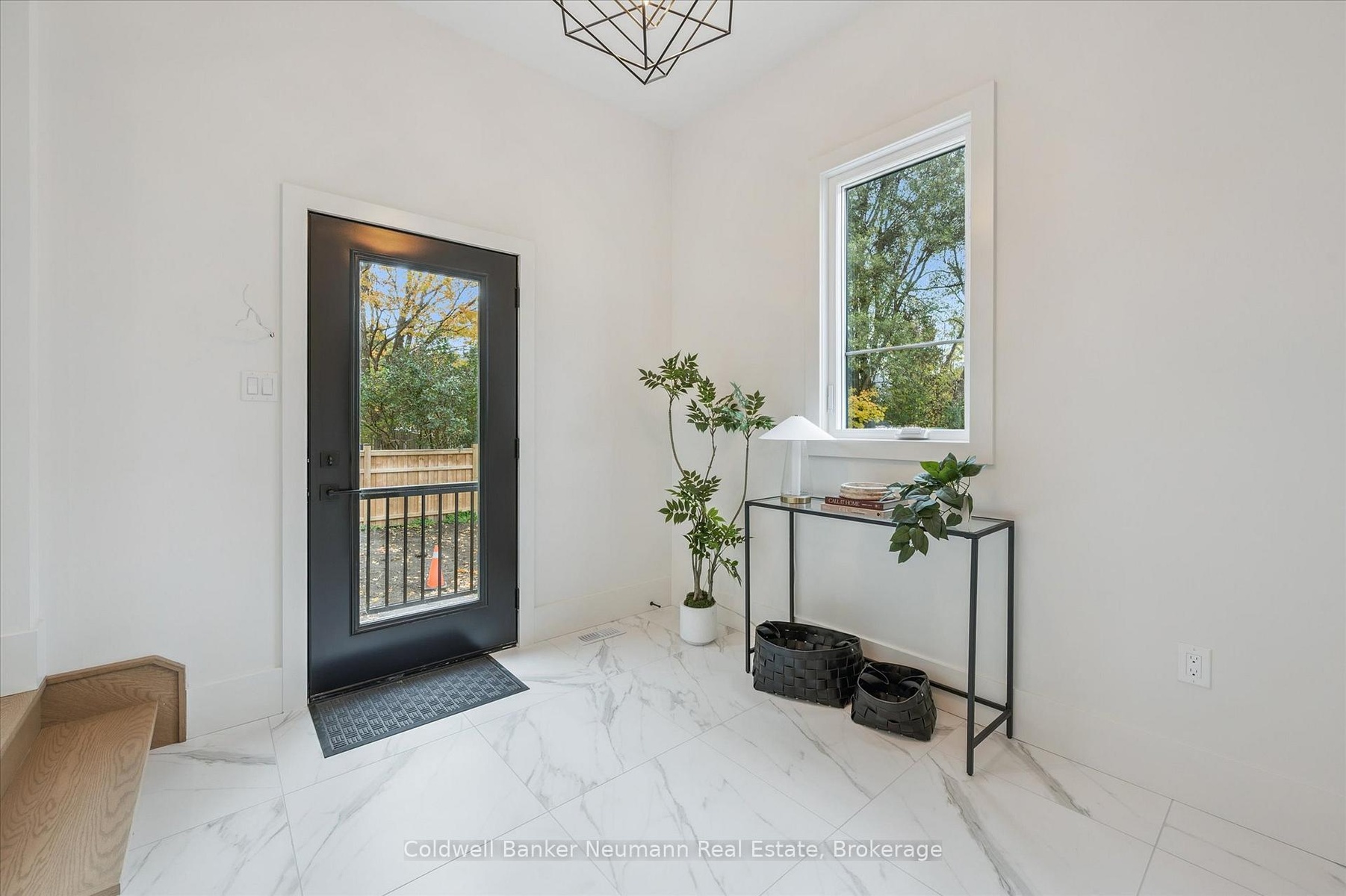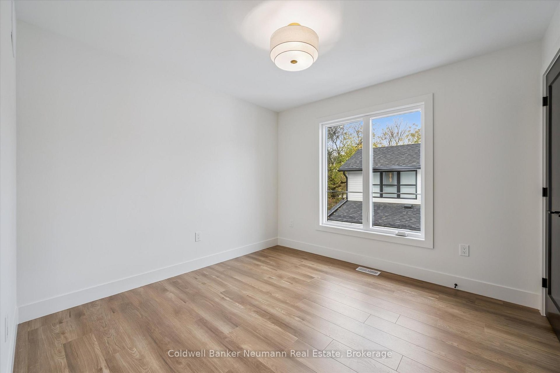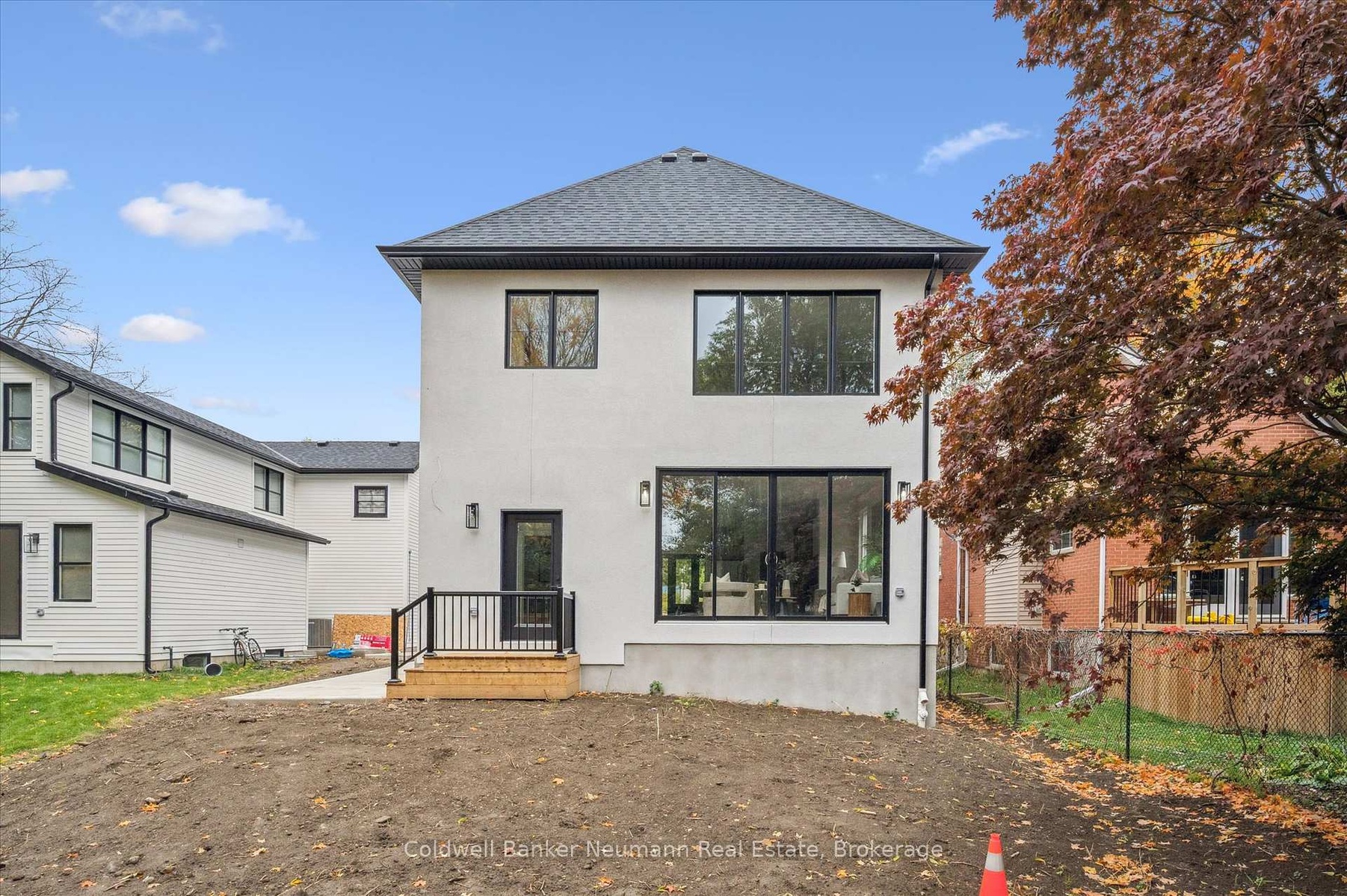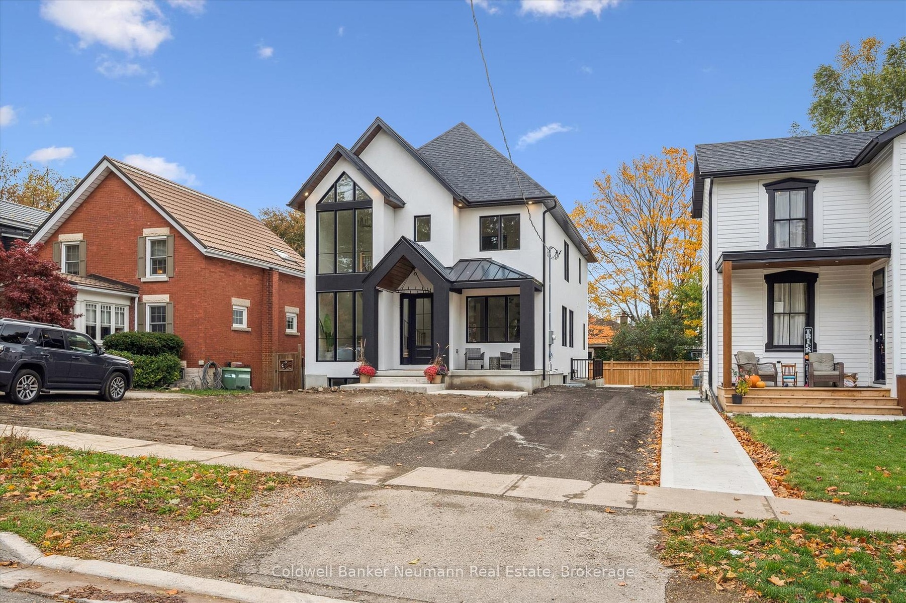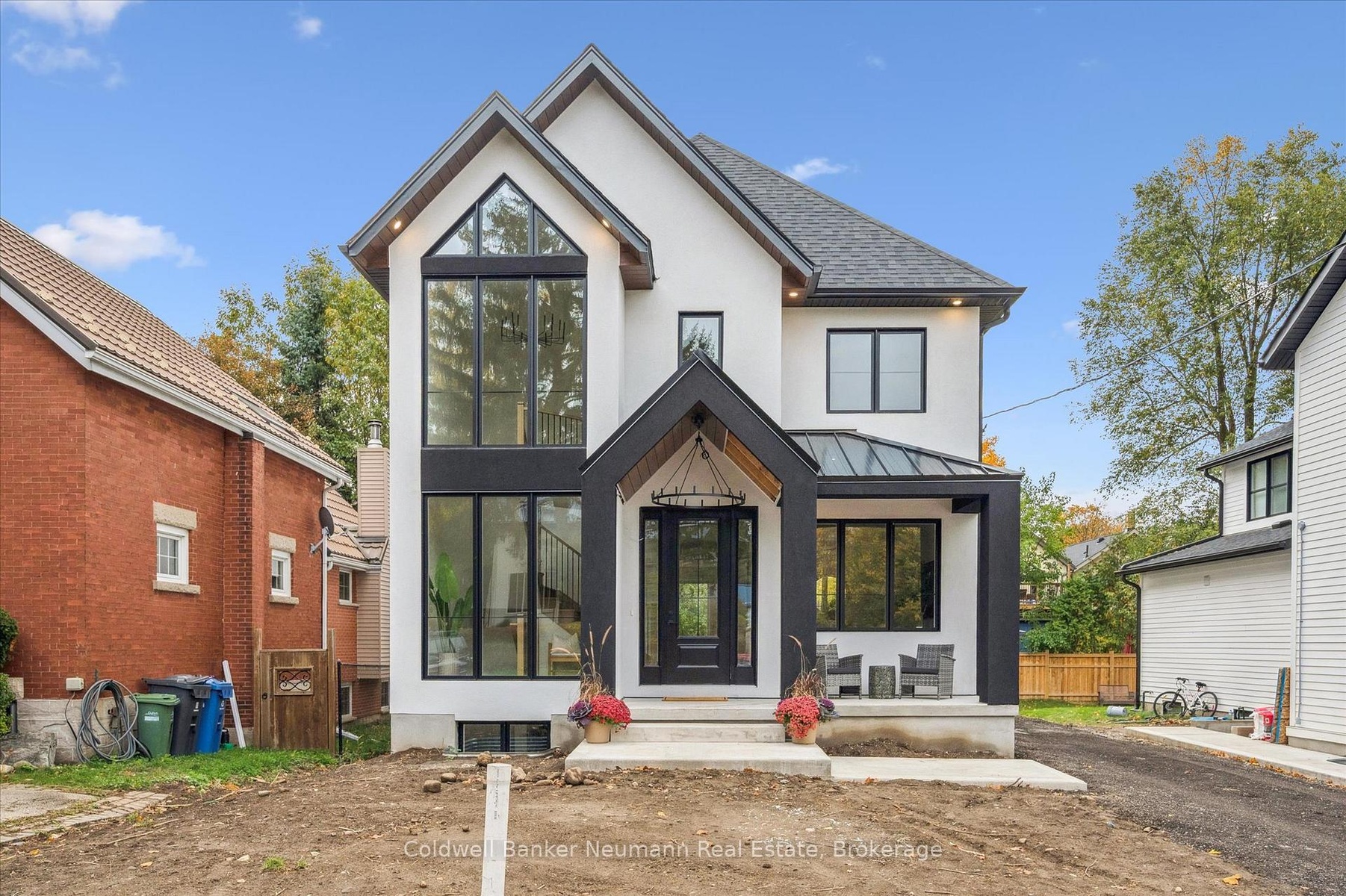 Welcome to 126 Oxford Street - a brand new luxury home built with exceptional attention to detail by Everest Homes, ready for you to make it your own. From the striking modern stucco exterior to the nine-foot ceilings and white oak flooring on the main floor, every feature exudes sophistication. The front foyer sets the tone with its distinctive hardwood, while the main level offers a bright home office, an open-concept Barzotti kitchen, and custom built-ins in the dining and living areas-anchored by a stunning 74" Napoleon fireplace. Upstairs, you'll find three spacious bedrooms, including a primary suite that truly impresses, complete with a large walk-in closet and a five-piece ensuite featuring a custom walnut vanity. A convenient upper-level laundry room adds practicality to the elegant design.The lower level offers even more potential, with large windows, a separate entrance, and rough-ins for a kitchen, bathroom, and laundry-making it ideal for an in-law suite or future 2 bedroom apartment. Beautifully situated in Guelph's downtown core, this home is steps from Exhibition Park, schools, and all amenities-offering luxury living in one of the city's most desirable locations.