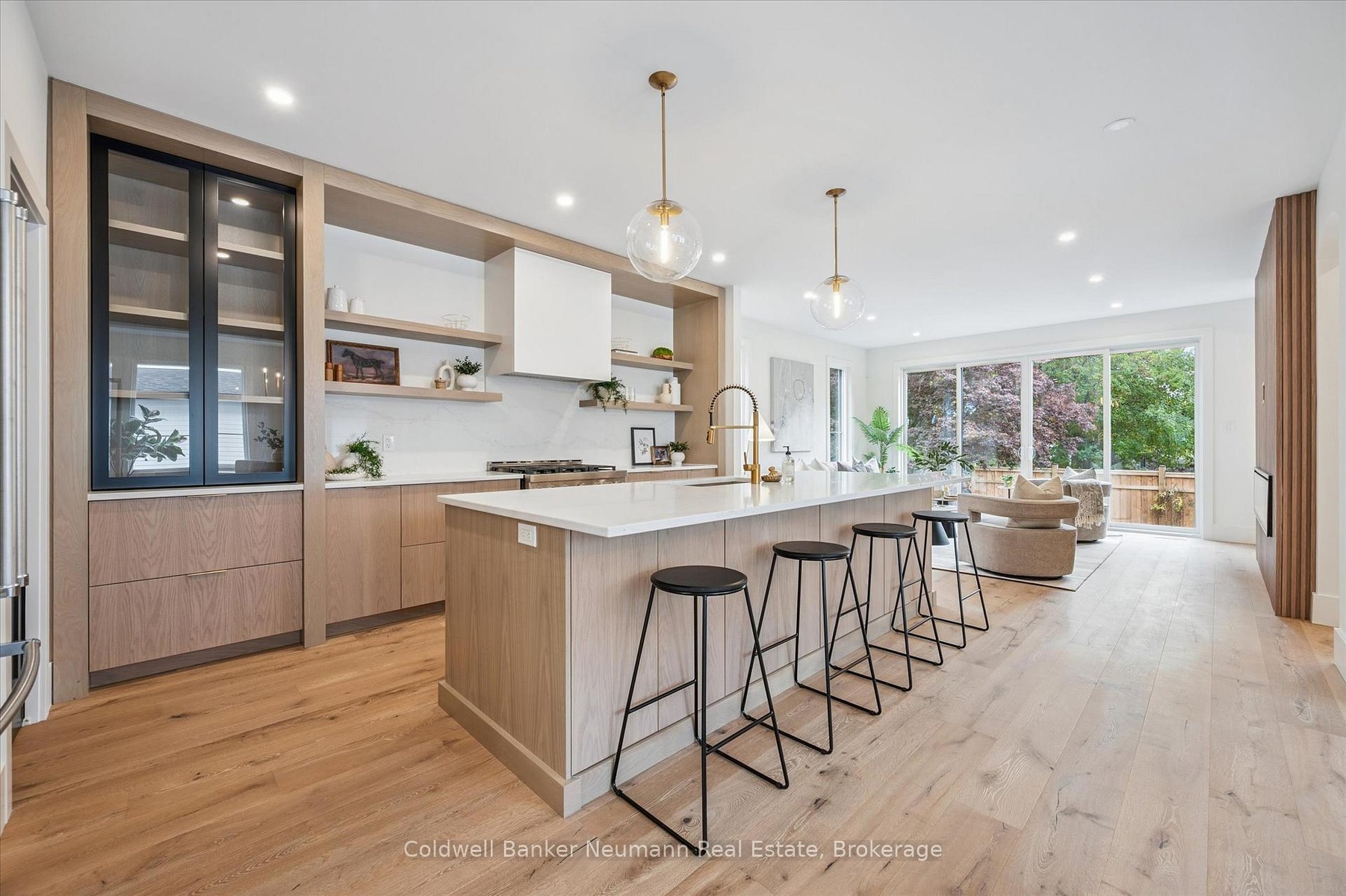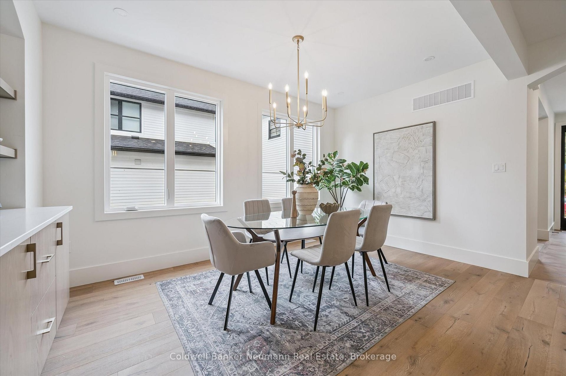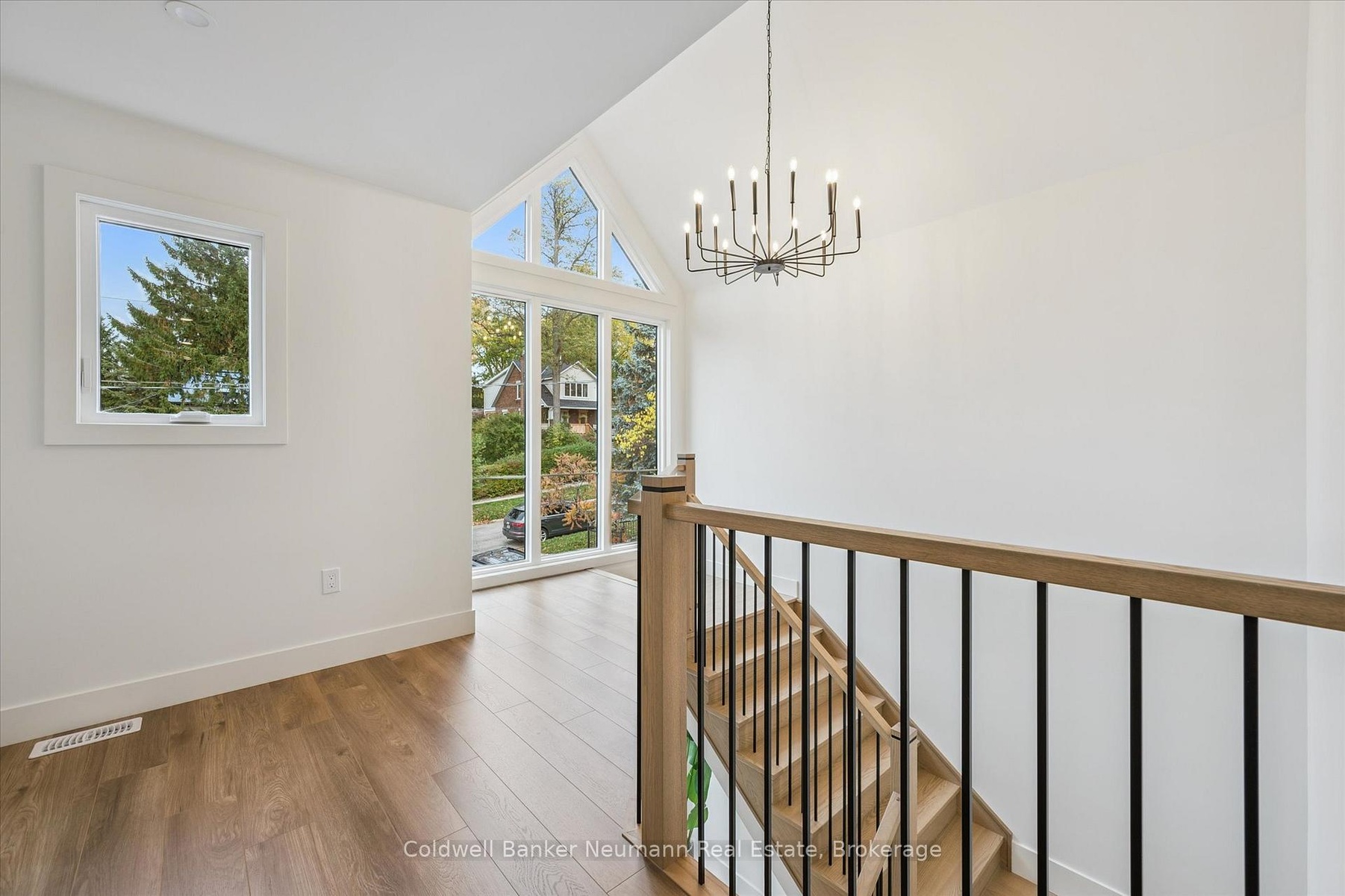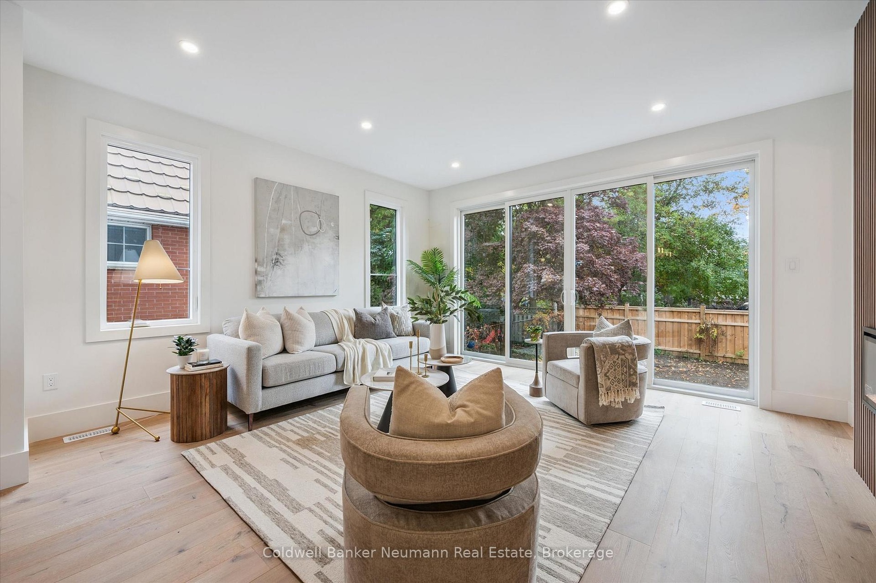 Welcome to 126 Oxford Street - a brand new luxury home built with exceptional attention to detail by Everest Homes, ready for you to make it your own. From the striking modern stucco exterior to the nine-foot ceilings and white oak flooring on the main floor, every feature exudes sophistication. The front foyer sets the tone with its distinctive hardwood, while the main level offers a bright home office, an open-concept Barzotti kitchen, and custom built-ins in the dining and living areas-anchored by a stunning 74" Napoleon fireplace. Upstairs, you'll find three spacious bedrooms, including a primary suite that truly impresses, complete with a large walk-in closet and a five-piece ensuite featuring a custom walnut vanity. A convenient upper-level laundry room adds practicality to the elegant design.The lower level offers even more potential, with large windows, a separate entrance, and rough-ins for a kitchen, bathroom, and laundry-making it ideal for an in-law suite or future 2 bedroom apartment. Beautifully situated in Guelph's downtown core, this home is steps from Exhibition Park, schools, and all amenities-offering luxury living in one of the city's most desirable locations.