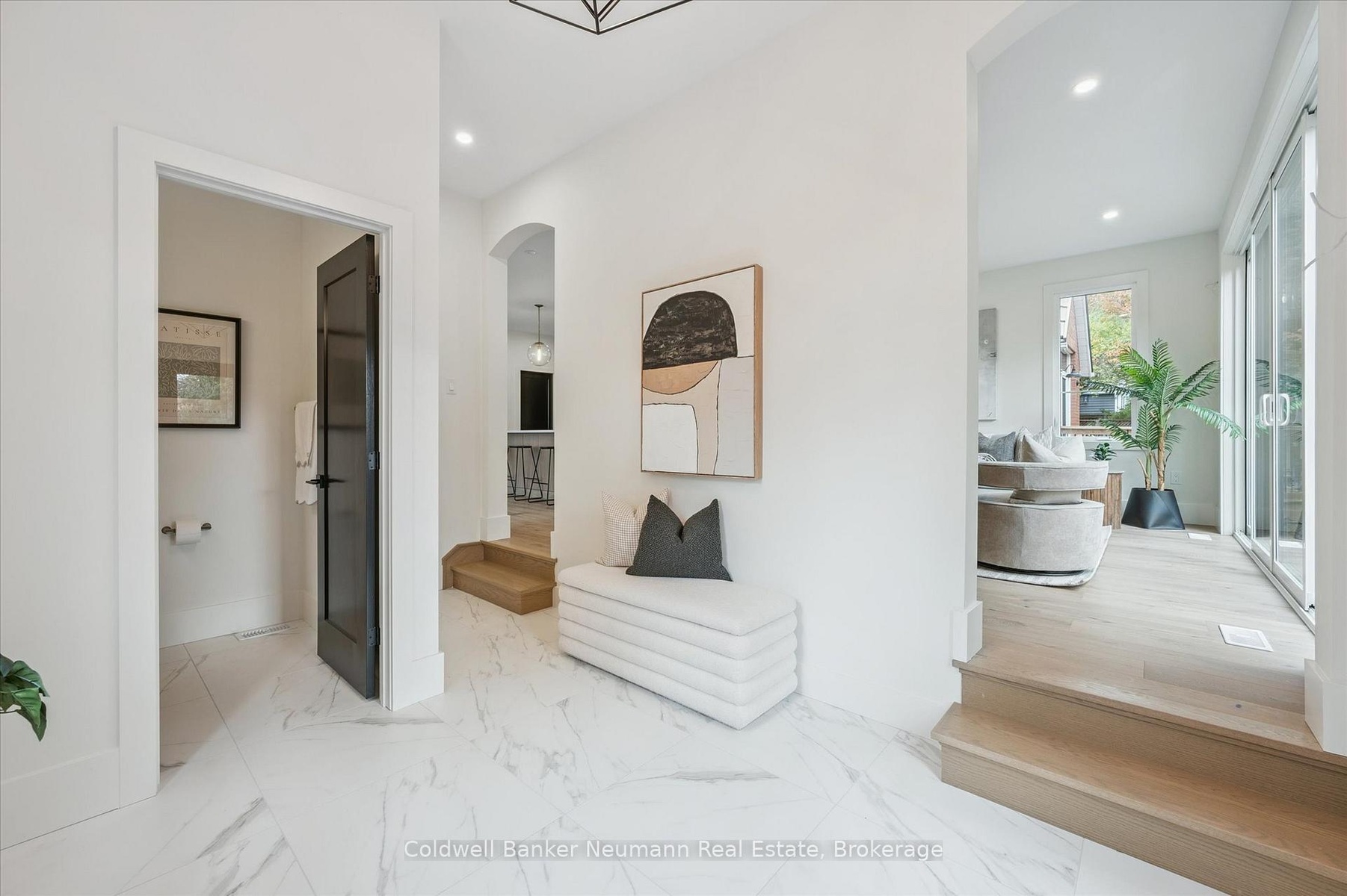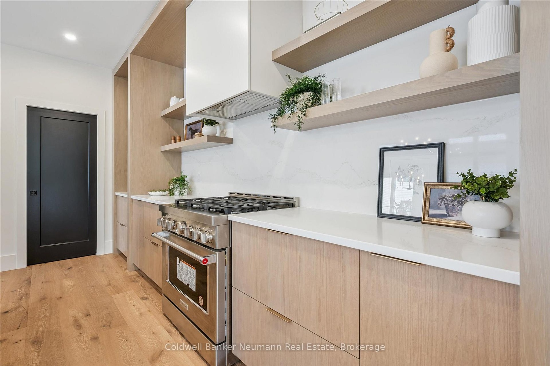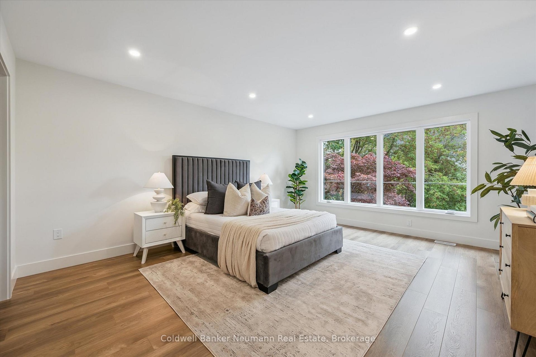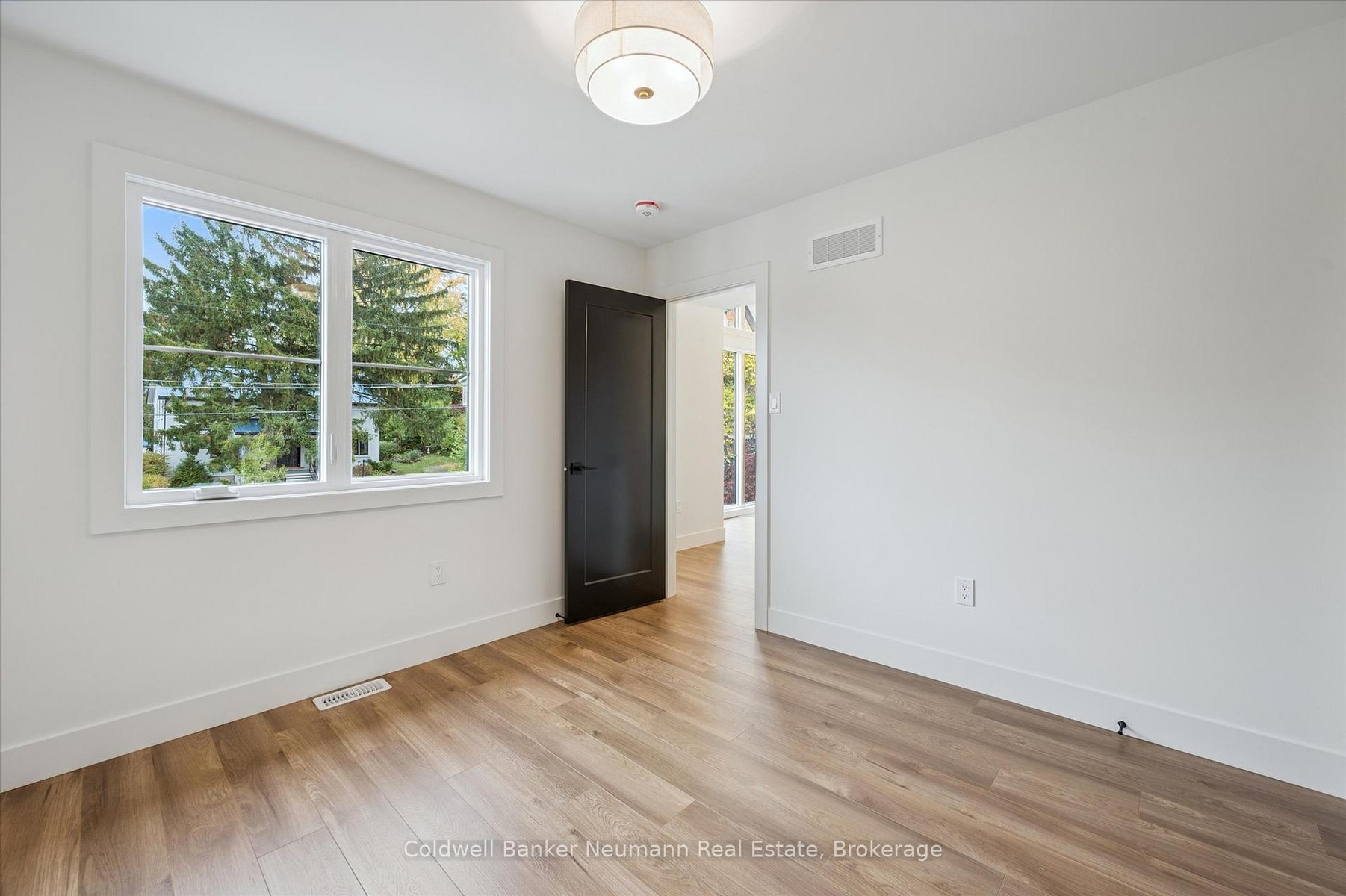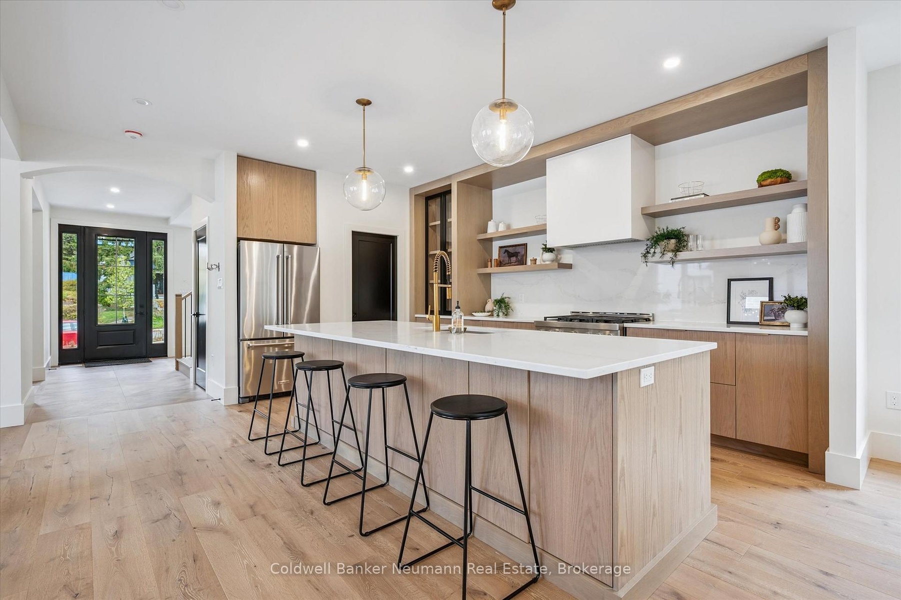 Welcome to 126 Oxford Street - a brand new luxury home built with exceptional attention to detail by Everest Homes, ready for you to make it your own. From the striking modern stucco exterior to the nine-foot ceilings and white oak flooring on the main floor, every feature exudes sophistication. The front foyer sets the tone with its distinctive hardwood, while the main level offers a bright home office, an open-concept Barzotti kitchen, and custom built-ins in the dining and living areas-anchored by a stunning 74" Napoleon fireplace. Upstairs, you'll find three spacious bedrooms, including a primary suite that truly impresses, complete with a large walk-in closet and a five-piece ensuite featuring a custom walnut vanity. A convenient upper-level laundry room adds practicality to the elegant design.The lower level offers even more potential, with large windows, a separate entrance, and rough-ins for a kitchen, bathroom, and laundry-making it ideal for an in-law suite or future 2 bedroom apartment. Beautifully situated in Guelph's downtown core, this home is steps from Exhibition Park, schools, and all amenities-offering luxury living in one of the city's most desirable locations.