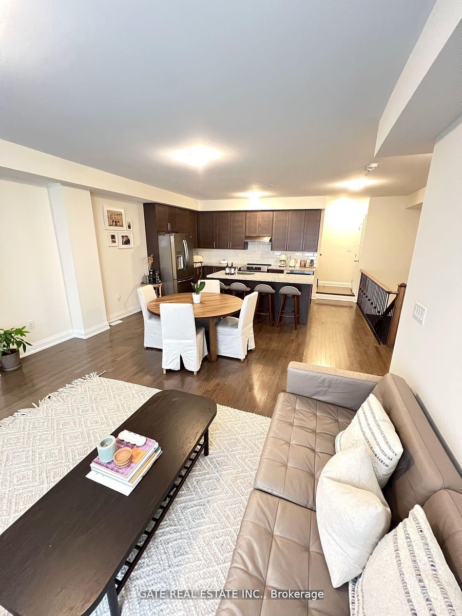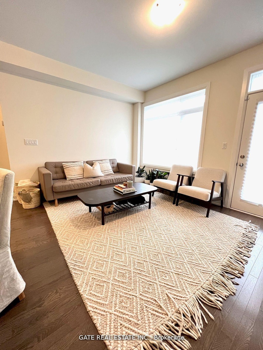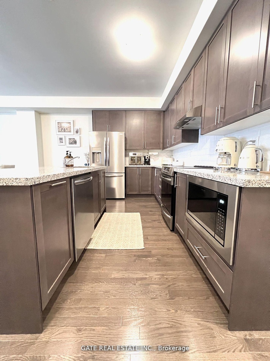 Indulge in luxury living with this elegantly designed 3-bedroom townhouse, meticulously maintained and boasting high-end finishes such as higher baseboards, elevated interior doors, and hardwood flooring throughout. The open-concept foyer welcomes you into a space with the living room on a separate level, featuring an electric fireplace and flowing seamlessly onto a spacious balcony, perfect for BBQs. The eat-in kitchen is equipped with high-end Frigidaire Gallery stainless steel appliances, and the bathrooms feature upgraded tiles, adding to the opulence. Additional features include a convenient garage door opener and proximity to schools, transit, and playgrounds. Dont miss the opportunity to lease this sophisticated gem.