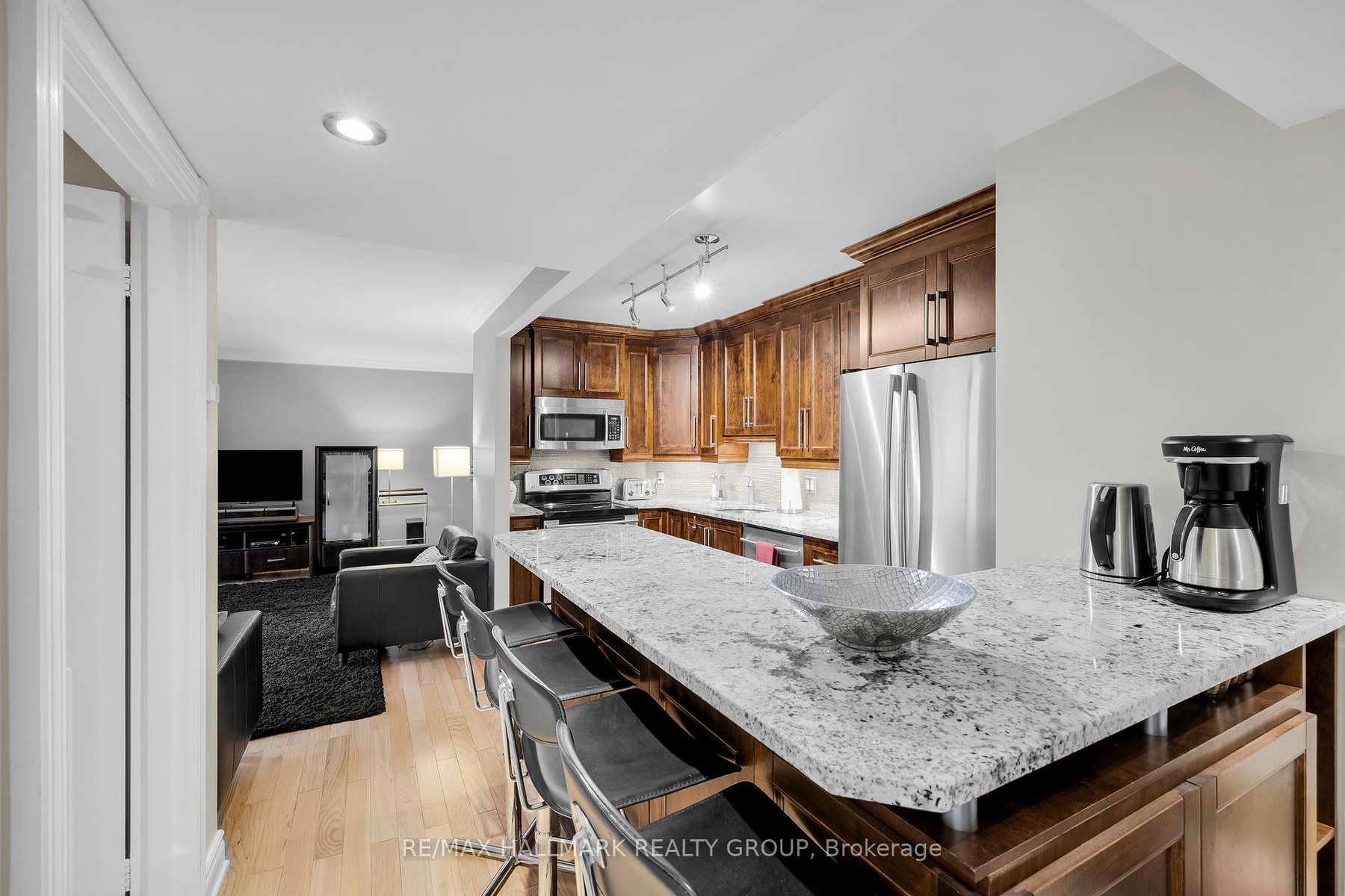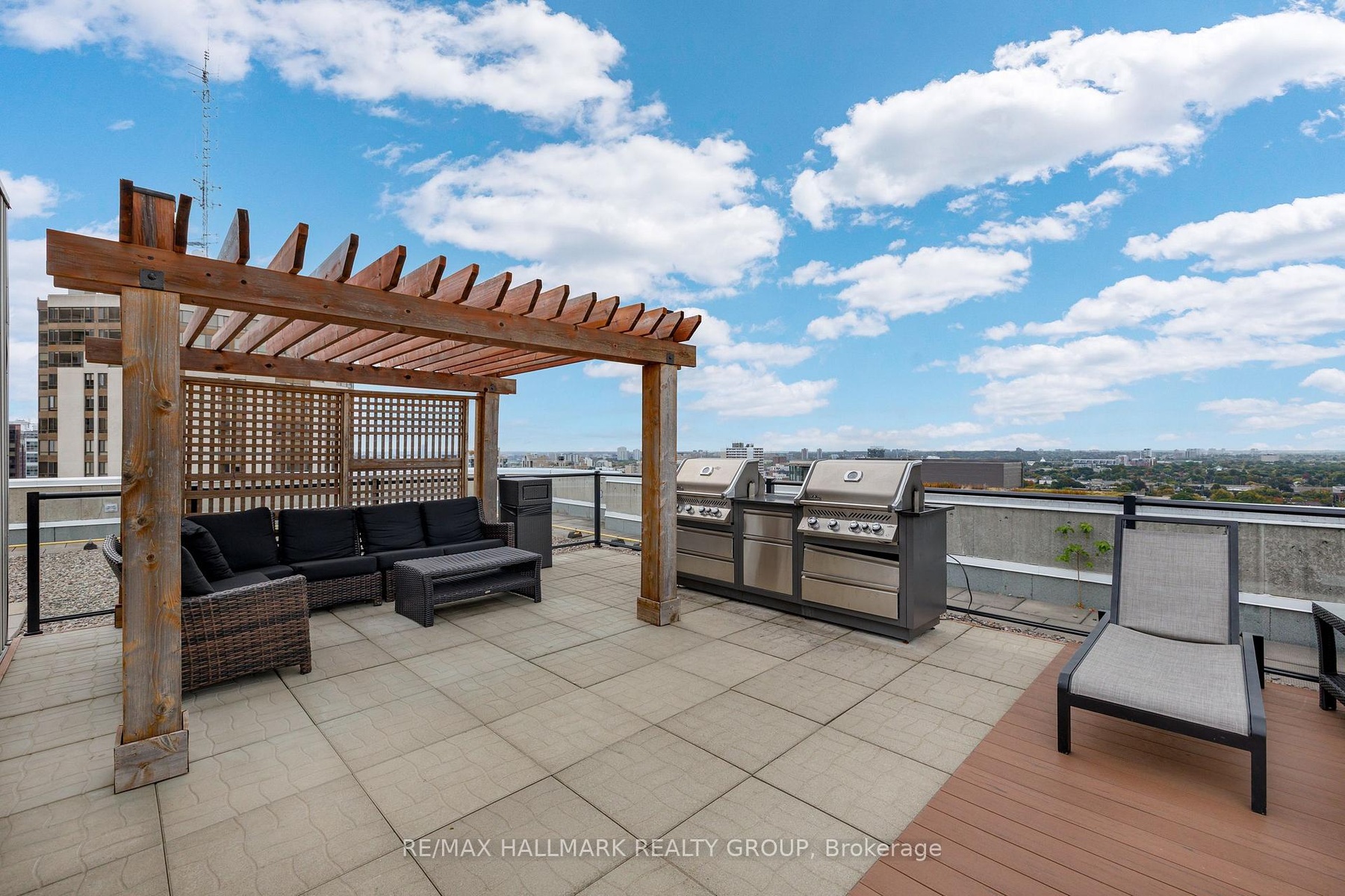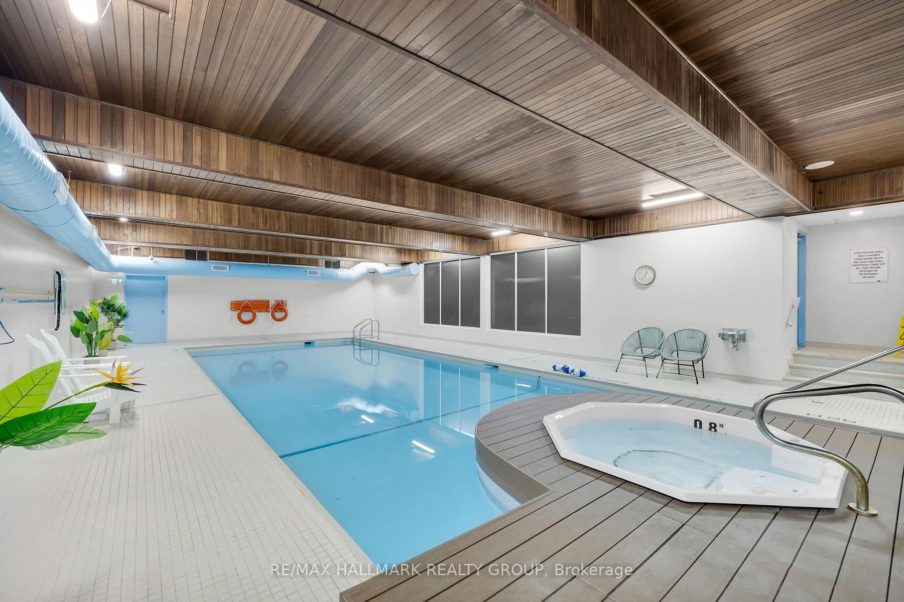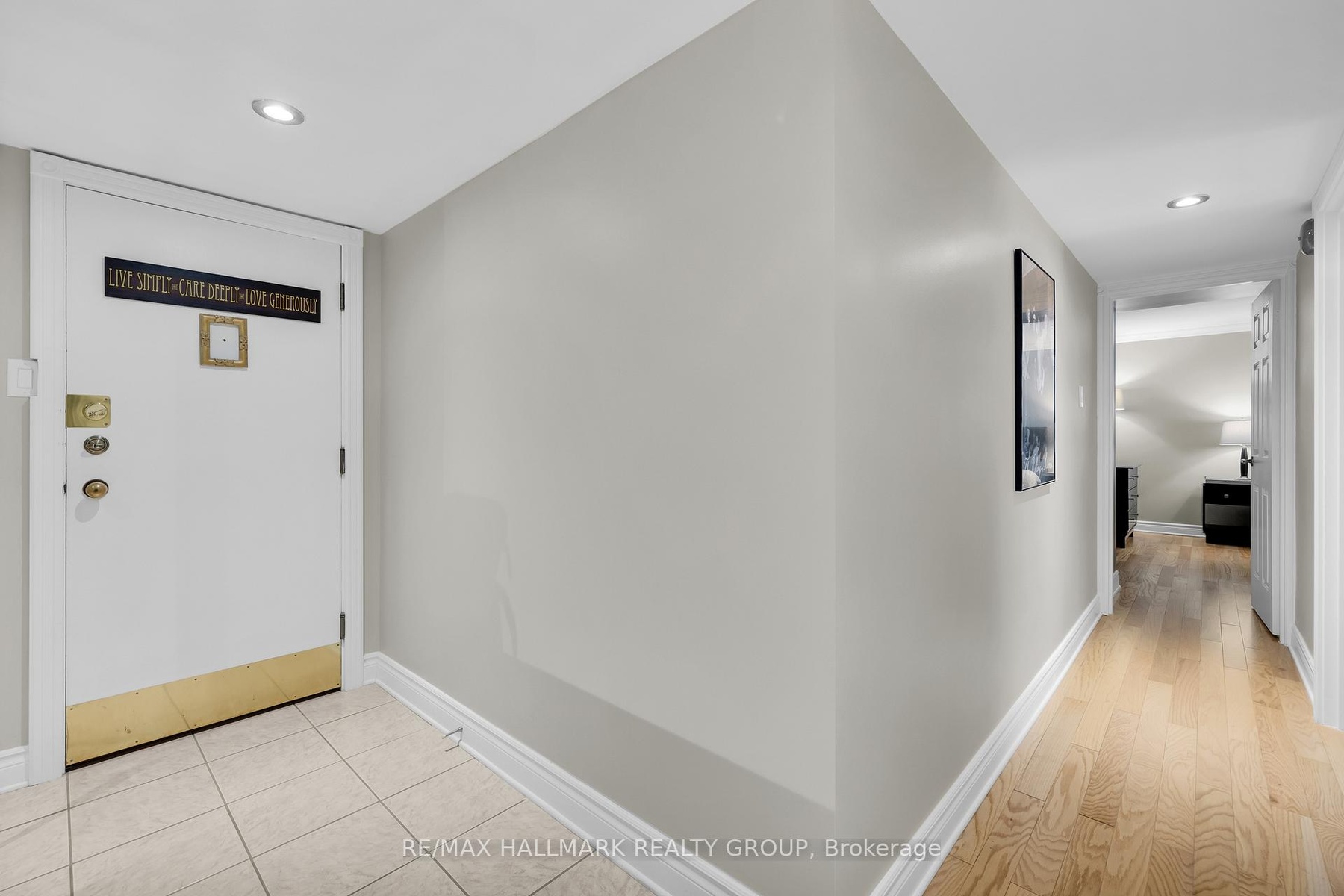 Beautifully updated & move-in ready, this spacious 2-bdrm, 2-bath corner unit condo (app. 1200 sf) blends style, comfort and convenience in the heart of the city. Open-concept layout features soundproof engineered real hardwood floors, crown moulding, high baseboard trim & wood trim around doors, high-end lighting fixtures throughout, and the entire unit is finished in neutral elegant paint tones. From the living area, step out to a large private balcony w/ great city views. The generous dining room offers ample space for entertaining or can easily serve as a home office. The contemporary kitchen is both stylish & functional, complete w/ granite counters on an extended breakfast bar, tiled backsplash, energy-efficient appliances, ample cabinetry & under-cabinet lighting. Both bedrooms are generously sized with excellent storage, while individually controlled wall-mounted heaters & insulated blinds provide comfort & efficiency - helping keep heating & cooling bills low. The primary suite includes a large walk-in closet and private 2-pce ensuite, while the 2nd bedroom also has its own walk-in. The main 4-pce bath is beautifully finished w/ granite counters, updated tilework & excellent storage. A separate laundry room offers a stackable washer/dryer, & loads of storage. This secure building provides excellent amenities: 24-hr concierge & security cameras, indoor saltwater pool, hot tub, saunas, guest suite, party room, rooftop terrace (23rd flr) w/ dining & lounge areas, plus back courtyard w/ BBQ and seating. Unit comes w/ bike storage, storage locker & underground parking. Enjoy the very best of urban living just steps from your everyday conveniences, trendy restaurants, shops, Rideau Centre, Parliament Hill, ByWard Market, Parks, National Museums, all major Government offices, City Hall, & scenic walking/biking paths along the Canal. With Lyon LRT Station & major bus routes nearby, commuting is effortless while still avoiding the congestion of heavy traffic.