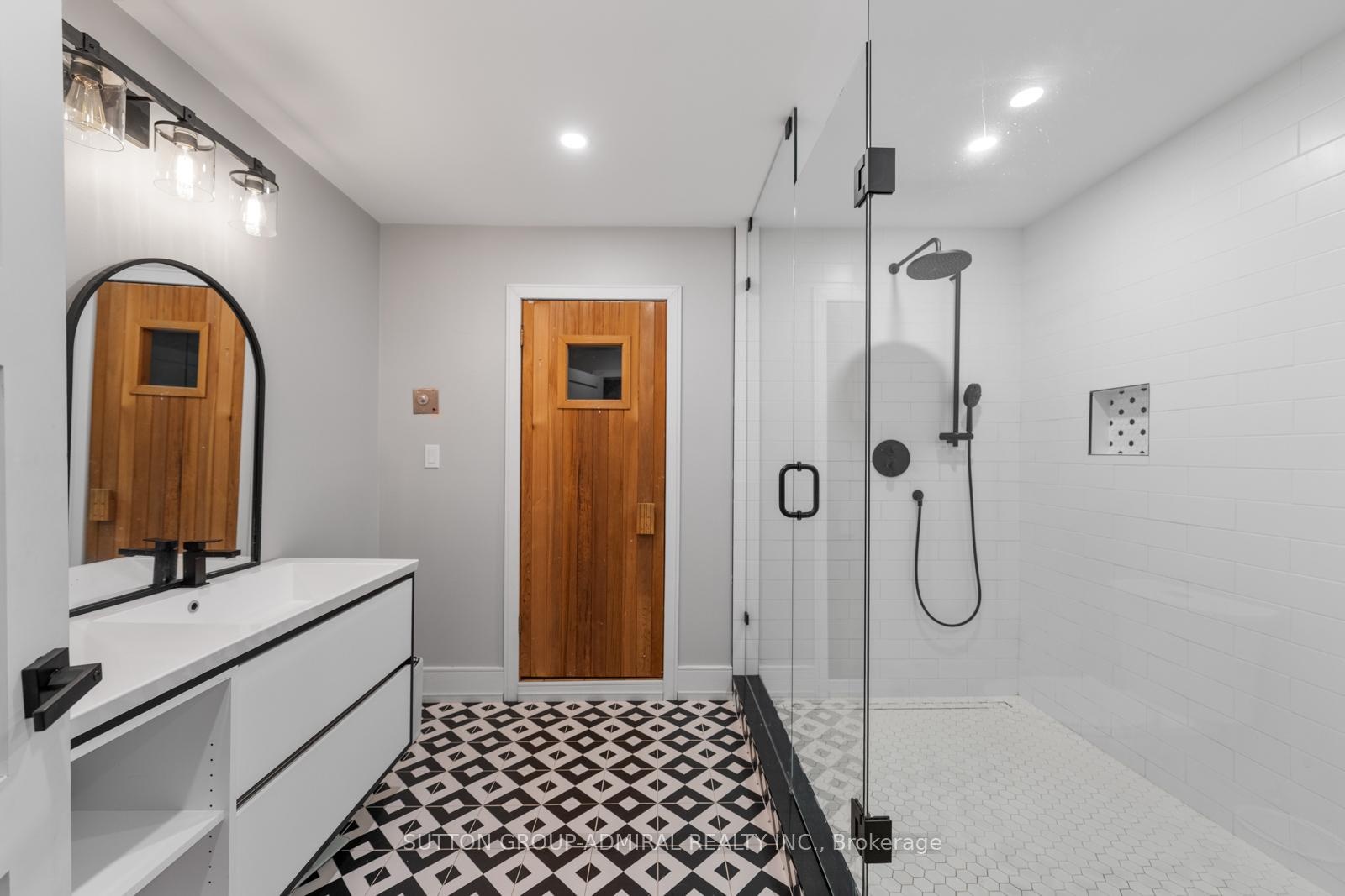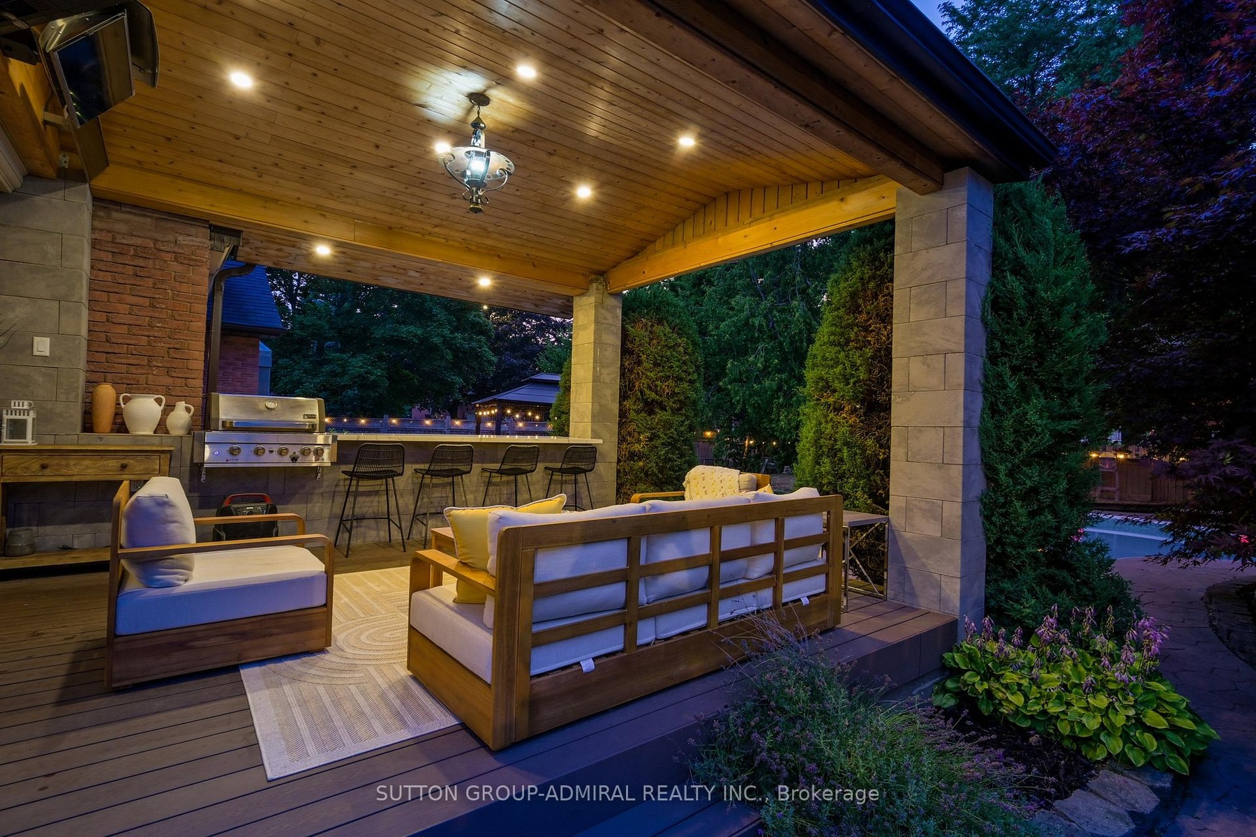 Nestled on a peaceful dead-end street with no sidewalks in prestigious Mill Pond, very inch of this open-concept residence has been thoughtfully reimagined with top-tier craftsmanship and designer finishes throughout.At the heart of the home, a show-stopping $200K kitchen commands attention-featuring a double-tiered custom island, integrated built-in appliances,an imported Italian stove, and a handcrafted steel hood. Wide-plank hardwood floors flow seamlessly through bright, expansive principal rooms, designed for both refined entertaining and relaxed everyday living.The Finished Lower Level Offers Versatile Living Space With A Large Recreation Area, Two Bedrooms,a sauna, and a 4 Piece Washroom.Step outside to your own private city retreat. The oversized backyard is an entertainer's dream-highlighted by a sparkling saltwater pool, newly constructed covered deck, and built-in barbecue station. The space offers both tranquility and grandeur.A rare 12-car driveway offers unparalleled convenience, perfect for hosting and multi-generational living. Walking distance to top-ranked Saint Theresa school, boutique shops, restaurants, cafes, and the movie theatre this is where lifestyle meets location.This Masterpiece Seamlessly Blends Modern Luxury With Timeless Elegance, Offering An Unparalleled Lifestyle In One Of Richmond Hills Most Coveted Enclaves.