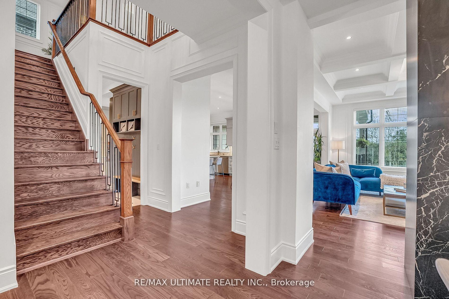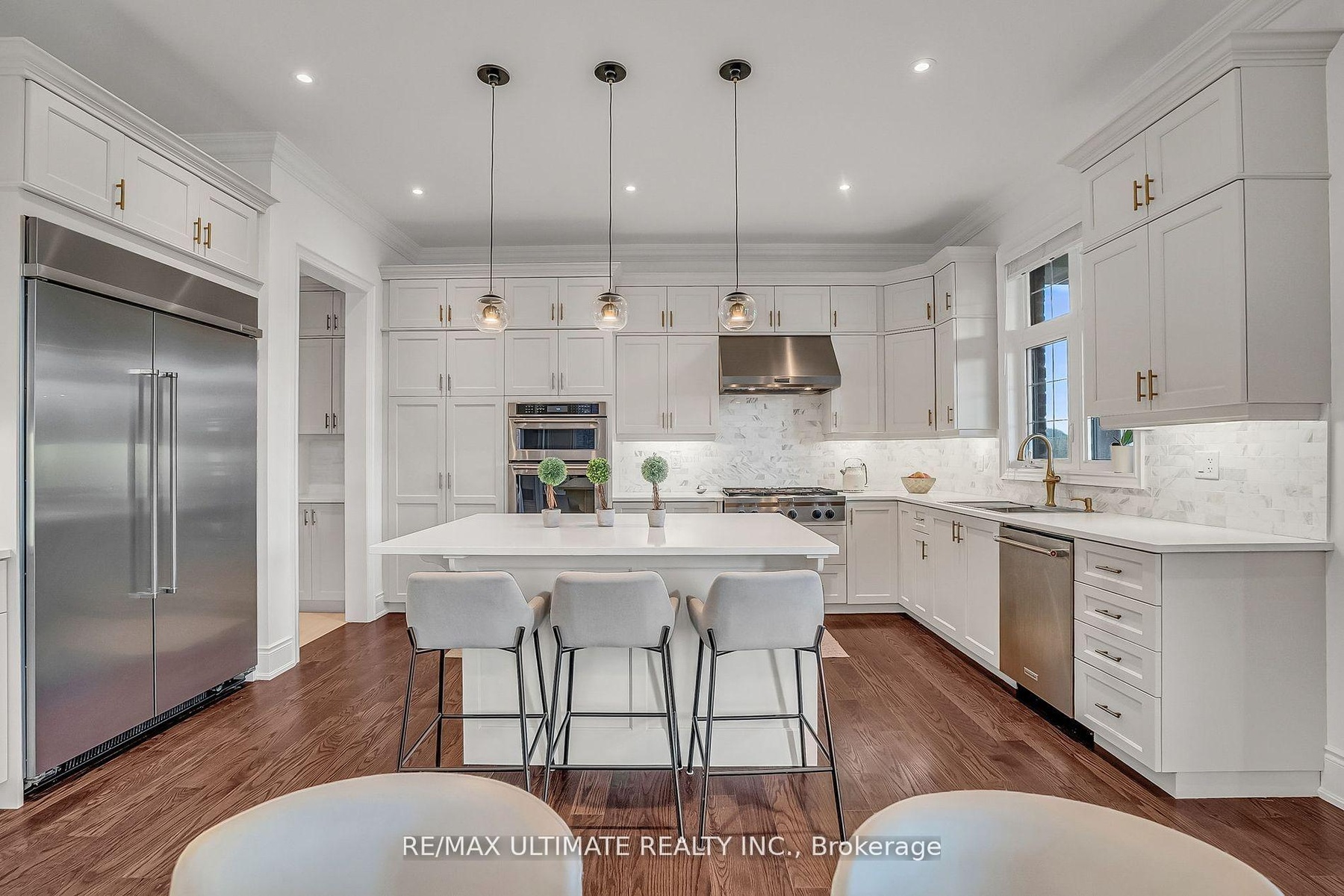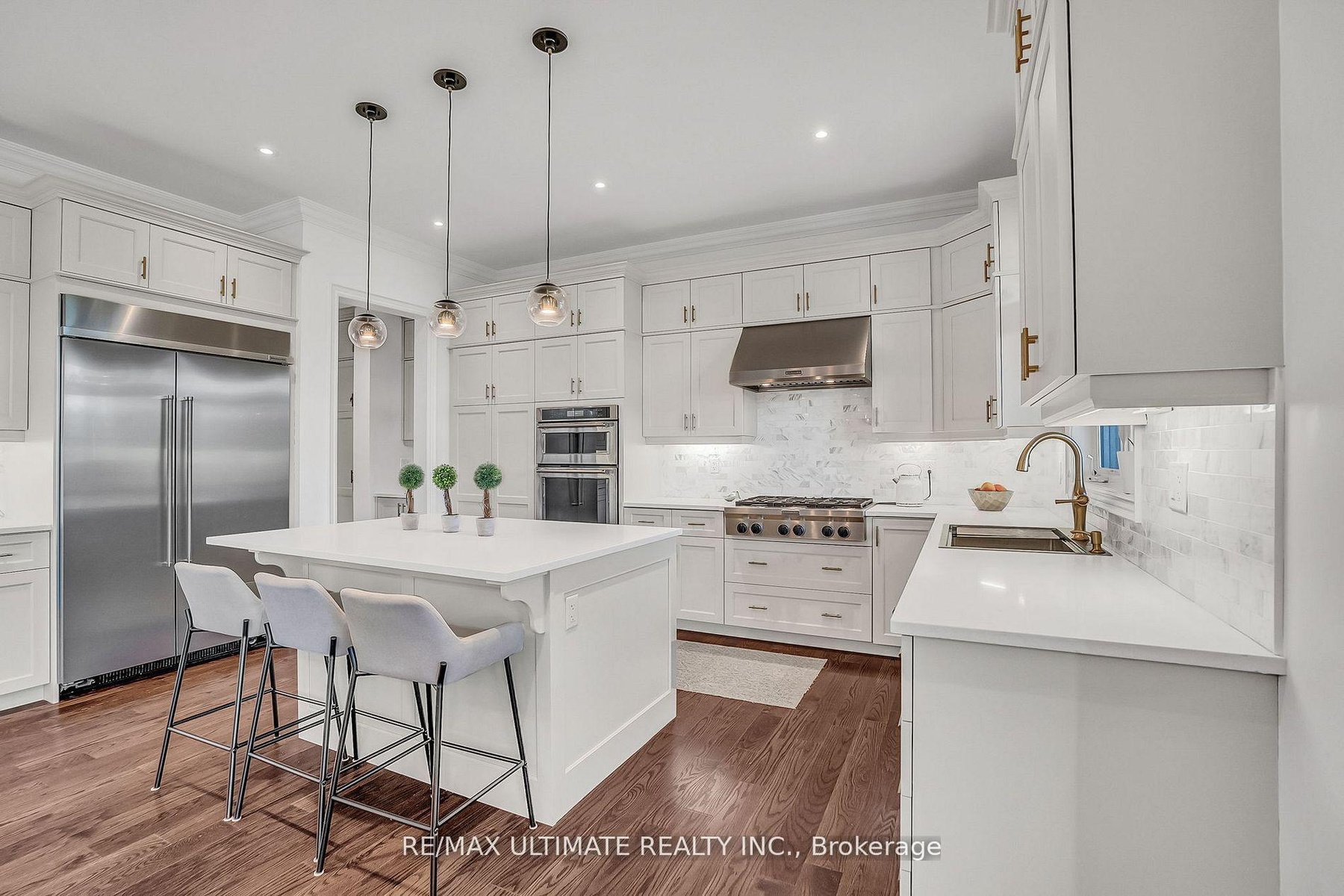 Executive sun filled luxury meets nature on a ravine lot tucked on a quiet cul de sac. Stunning just under 4000 ft2 executive home on a south-facing ravine lot with walkout lower level. Featuring 10 ft ceilings on main, 9 ft upstairs, 9ft lower, hardwood floors, and designer finishes throughout. The dream kitchen boasts quartz countertop, custom cabinetry, hidden pantry wall, servery and ample storage. Over 300k in improvements of custom upgrades and designer finishes.Open concept living room with dual-sided fireplace flows into the formal dining, perfect for entertaining. Upstairs offers a flexible family room (easily a 5th bedroom), laundry, and 4 generous bedrooms, each with its own ensuite or semi-ensuite.The primary retreat includes a spa-like ensuite, his & hers vanities with free standing tub and oversized shower. Elevator space roughed in. Enjoy outdoor living on the new oversized covered Loggia overlooking the ravine w/ gas fireplace and BBQ gas line. Add a pool or fire pit to the backyard. See feature sheet for details. Minutes to Hwy 400, GO Transit, Country Day School, Villanova and Zancor Recreation Complex. Don't miss this must see multi-generational home.