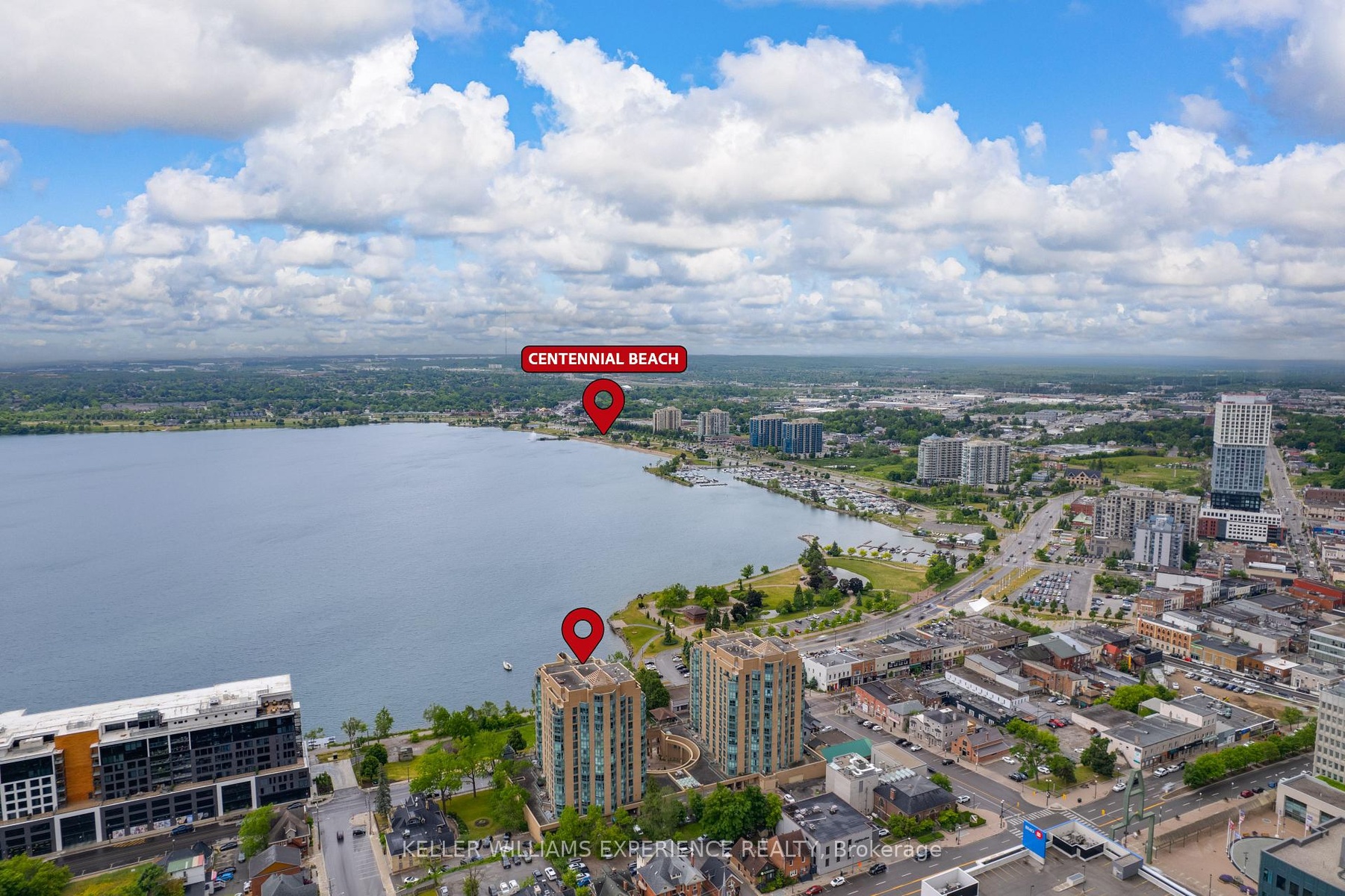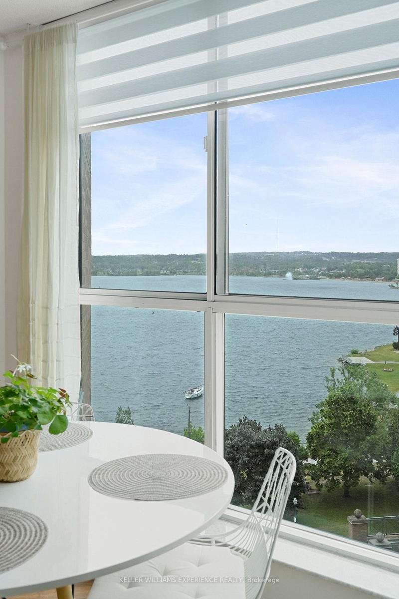 Live the Downtown Barrie Lifestyle - Steps from the Bay! Discover the perfect blend of comfort, convenience, and community in this bright and affordable 1-bedroom + den condo in the heart of downtown Barrie. Designed for easy living, this modern unit offers an unbeatable location just steps from Kempenfelt Bay, Centennial Beach, and Heritage Park-plus restaurants, shops, cafés, and entertainment right outside your door. Inside, a smart layout makes the most of every square foot, featuring a versatile den ideal for a home office or guest space, and a Juliette balcony with lovely views of the bay and City Hall. Enjoy recent upgrades like a new dishwasher and lighting (2022) and sleek zebra blinds (2024) for a fresh, contemporary feel. The building makes life effortless with condo fees that include heat, A/C, water, and sewer, keeping monthly costs predictable and stress-free. You'll also have access to standout amenities: an indoor pool, hot tub, sauna, and a bright party room where neighbours regularly gather for community events. Enjoy peace of mind with new security cameras, overnight monitoring, and spotless common areas maintained by friendly staff. Convenient extras-like ample visitor parking, annual maintenance services, and the option to rent extra parking-make this a truly easy place to call home. Whether you're a young professional craving walkable city living, a couple ready to simplify life, or a retiree seeking comfort and connection, this location has it all-urban energy, lakeside relaxation, and a strong sense of community. Move-in ready, beautifully maintained, and minutes from Highway 400, this downtown gem offers incredible value in one of Barrie's most desirable buildings. Experience effortless living by the bay-welcome home.