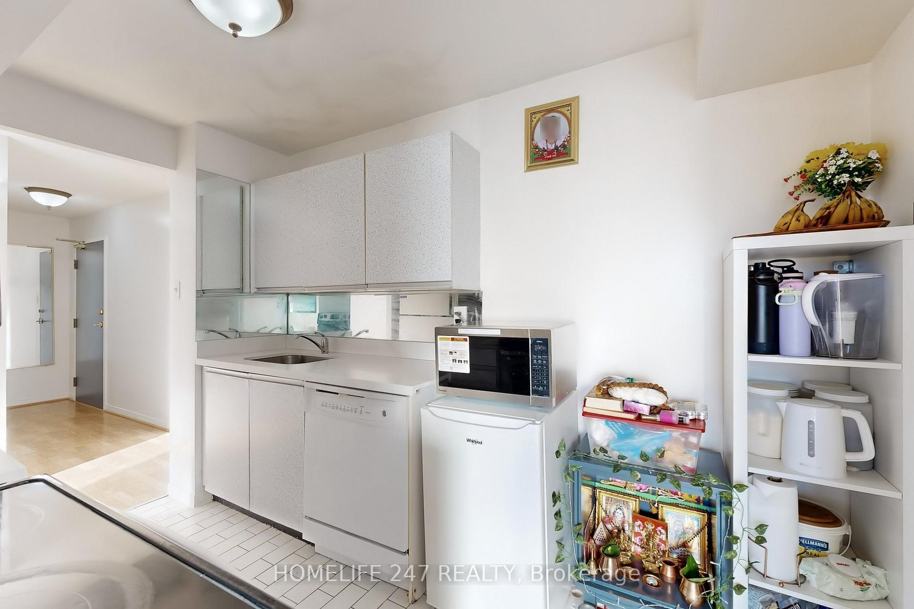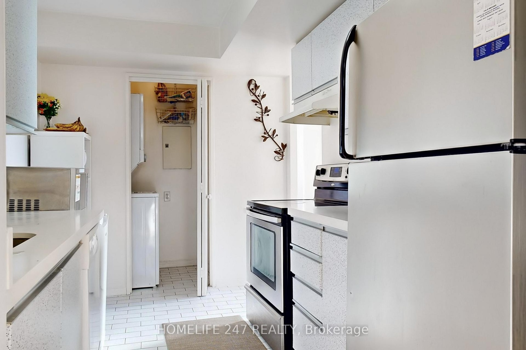 Excellent Opportunity for Buyers and Investors!!! Bright and spacious corner unit with freshly painted interiors, upgraded Kitchen counter top, sink and faucet. Features 2 bedrooms plus den with a solarium, offering plenty of natural sunlight throughout. The primary bedroom boasts double-door entry, adding a touch of elegance. Located in a well-maintained condo building with top-notch amenities, including 24-hour concierge, indoor pool, gym, sauna, party/meeting room, and ample visitor parking. Prime Location: Steps to GO Station, TTC, Kennedy Subway, Home Depot, and No Frills - everything you need is within reach. Don't miss this great opportunity - a must-see!!!! Maintenance fee Includes Water, Hydro, Heat, CAC, Building Insurance And Common Elements, Parking and Locker.