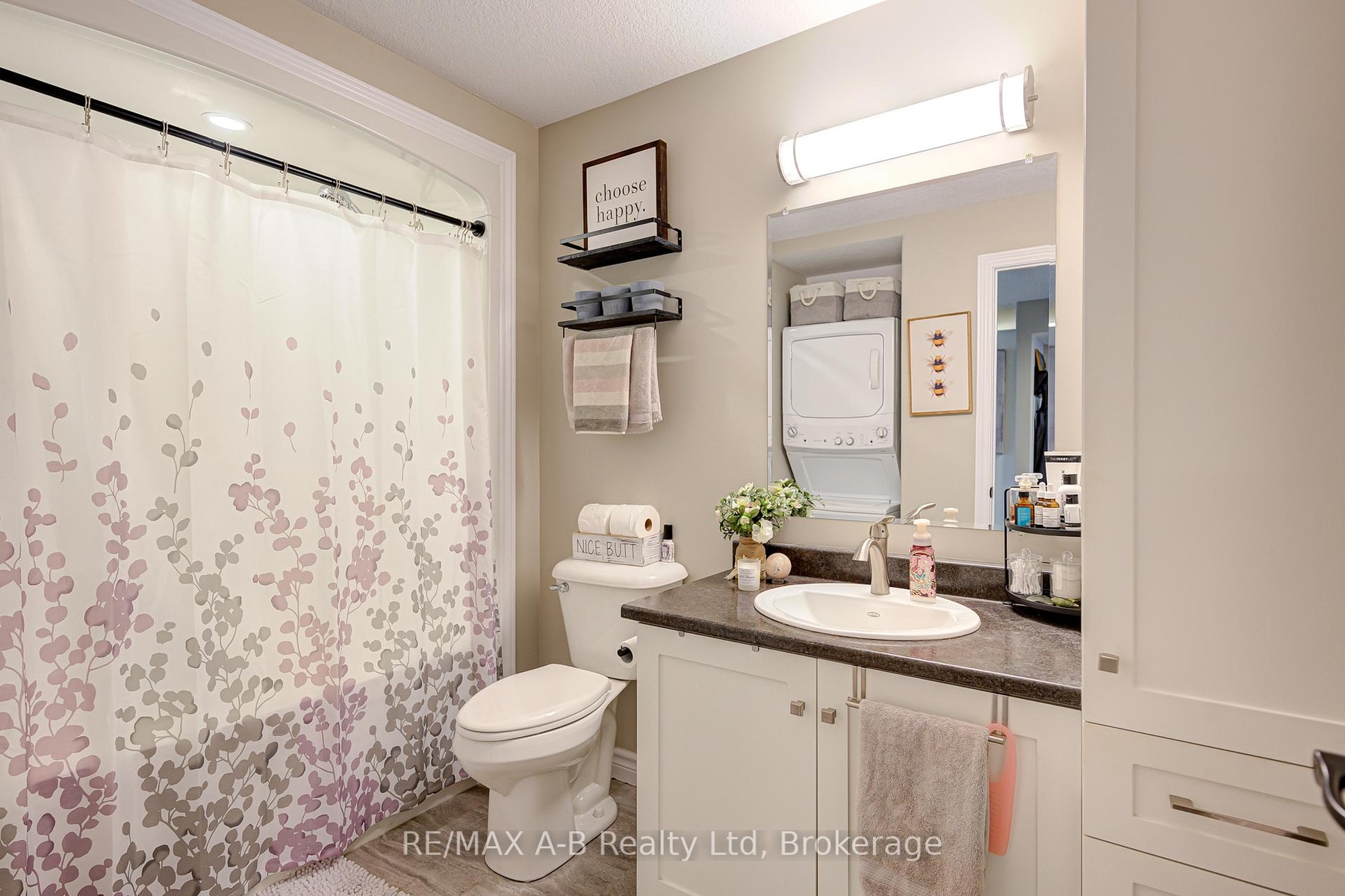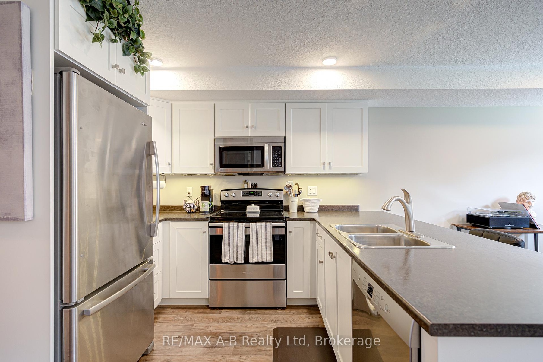 Built in 2019 by award-winning builder Pol Quality Homes, this beautifully finished 1-bedroom condo offers modern living in one of Stratford's most desirable north-end locations. Step inside to an open-concept kitchen, living, and dining area featuring stainless steel appliances, premium vinyl plank flooring, and ample counter space and cabinetry perfect for both cooking and entertaining. The primary bedroom includes a large closet and direct access to the bathroom, which is equipped with a full-size in-suite stacked washer and dryer for your convenience. Designed with efficiency in mind, each suite is fitted with on-demand water heaters, hydronic heating systems, and a water softener to ensure comfort and cost-effectiveness year-round. This unit also includes one exclusive parking space and a private storage locker, offering both practicality and peace of mind. Located on the north end of Stratford, you'll enjoy convenient access to major routes making travel in and out of town a breeze. Whether you're a first-time buyer, downsizer, or investor, this condo combines modern finishes, efficient design, and exceptional build quality in one perfect package.