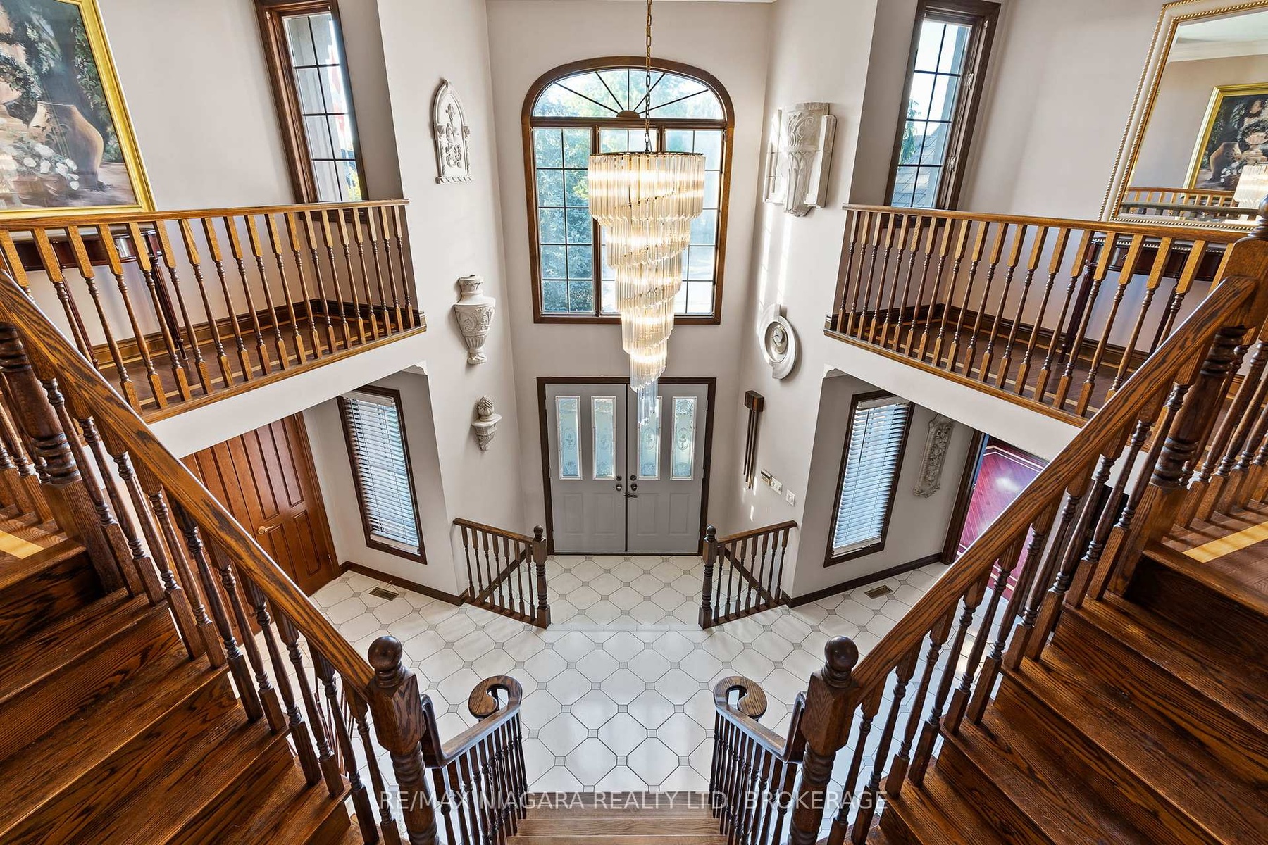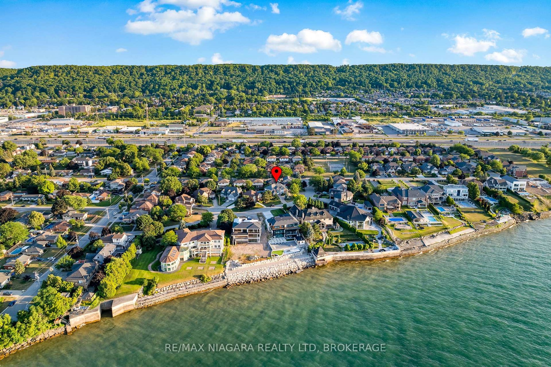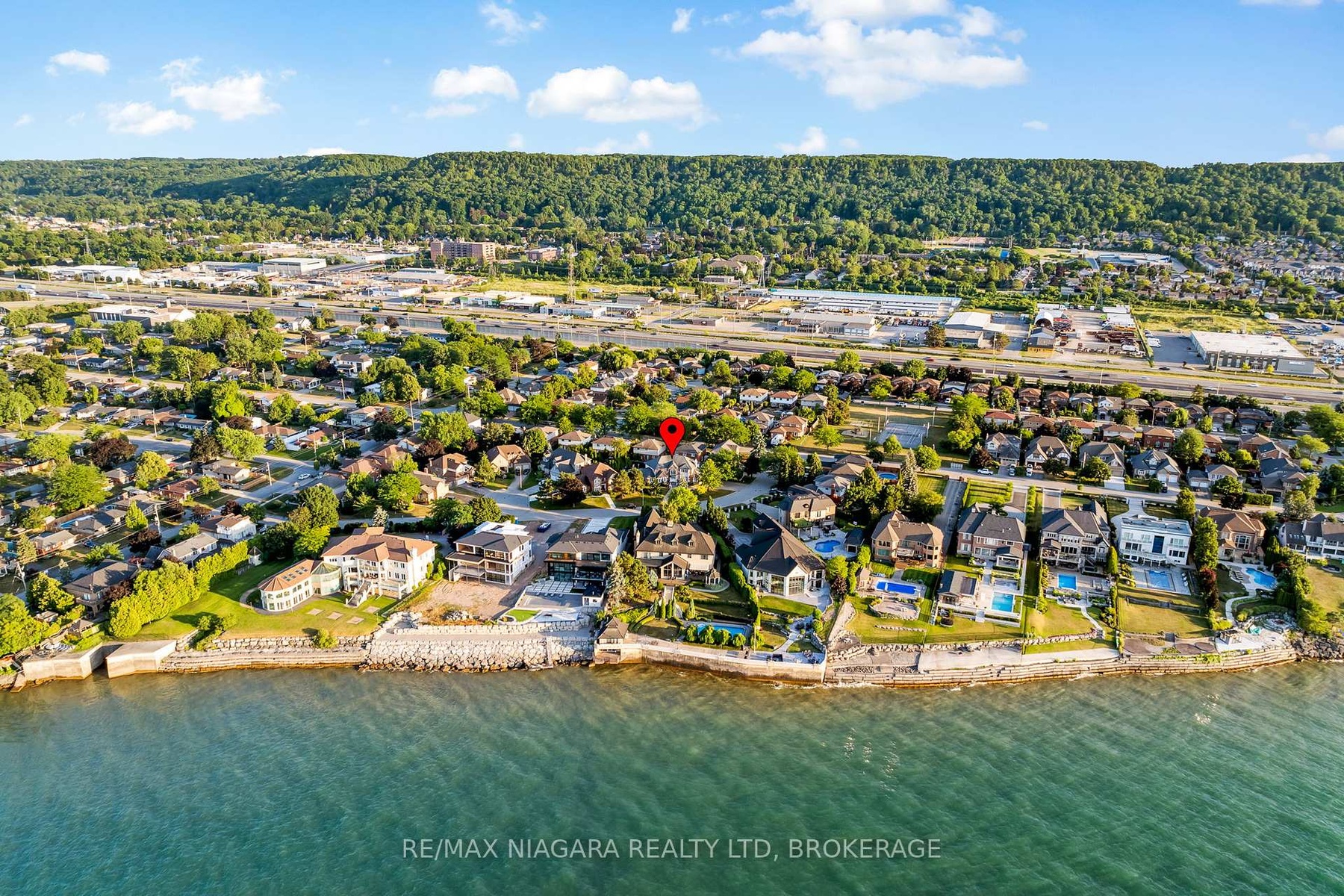 Welcome to the definition of luxury living at 13 Shoreline Crescent in Grimsby, just steps from the water and surrounded by prestigious estate-style homes. With undeniable curb appeal, this exceptional property offers expansive living space with 4 spacious bedrooms, 3 bathrooms, a finished basement, a 3-car garage, and a wrap-around driveway that can accommodate up to approximately 20 additional vehicles. The beautifully landscaped exterior is enhanced by a wrought-iron fence, an in-ground sprinkler system, and a large in-ground pool complete with changing rooms and a pool shed, perfect for entertaining. Inside, a grand dual staircase sets the tone for the sophisticated interior. The main floor features a private office, formal living and dining rooms, a spacious kitchen ideal for hosting, and a large family room with a cozy gas fireplace, along with a stylish 2-piece powder room. Upstairs, the home offers four oversized bedrooms, including a luxurious primary suite with a massive walk-in closet and a spa-like ensuite. The additional bedrooms are generously sized and share a well-appointed main bathroom. The finished basement adds extra living space and includes a rough-in for a future bathroom, offering great potential for further customization. Notable updates include the roof (8 years), furnace (2 years), A/C (3 years), pool pump (2 years), and pool liner (4 years). Perfectly situated near major highways, top-rated schools, scenic lakefront access, and the charming downtown core of Grimsby, this exceptional home offers the ultimate blend of elegance, comfort, and convenience, truly a rare opportunity not to be missed.