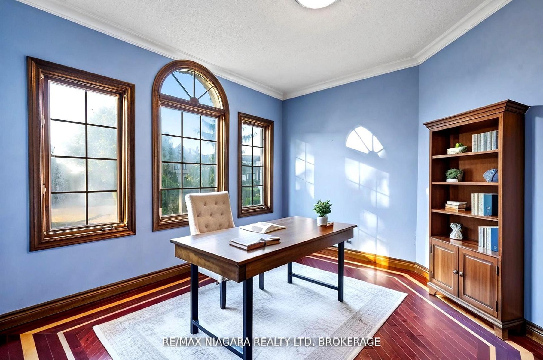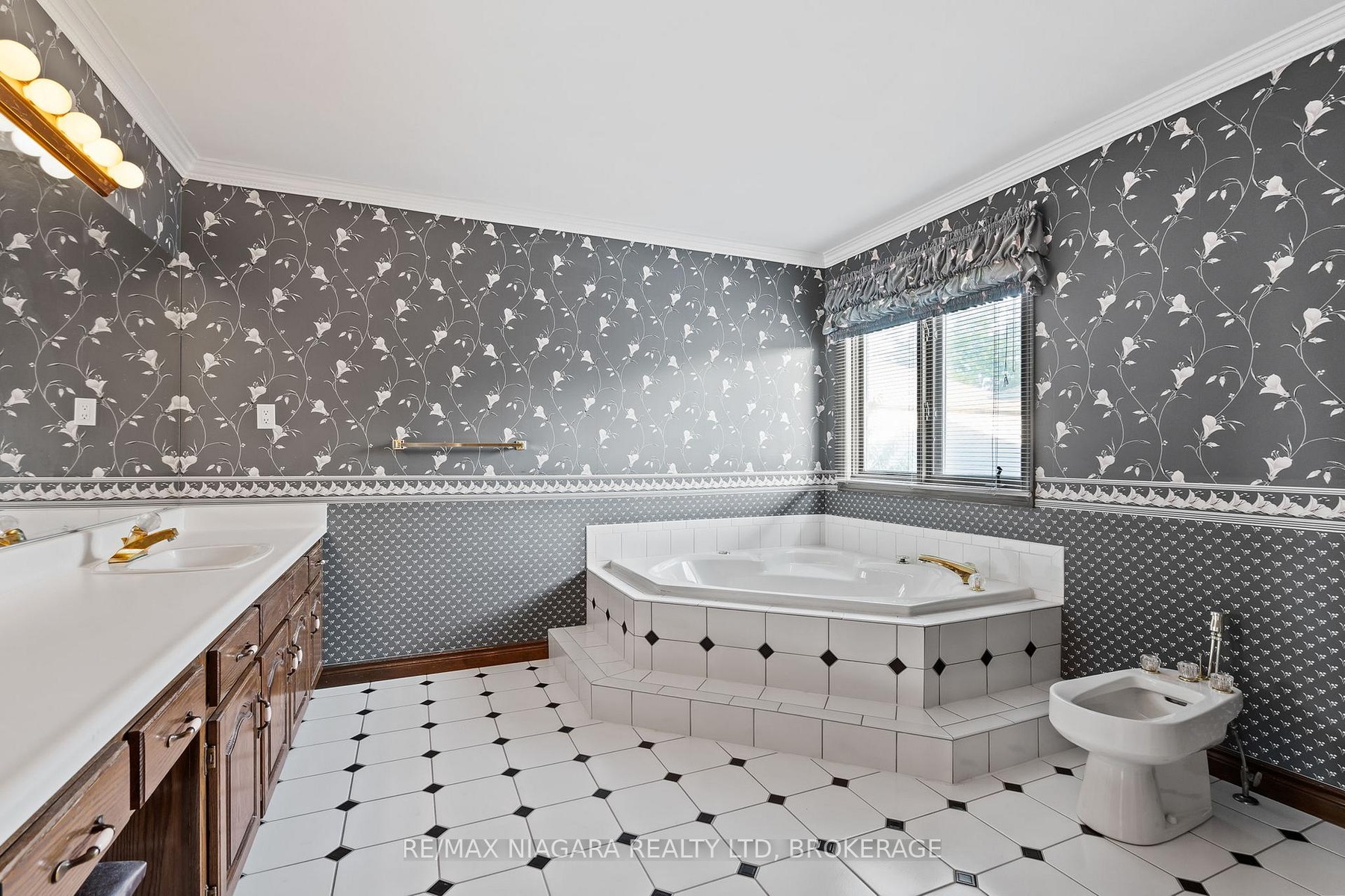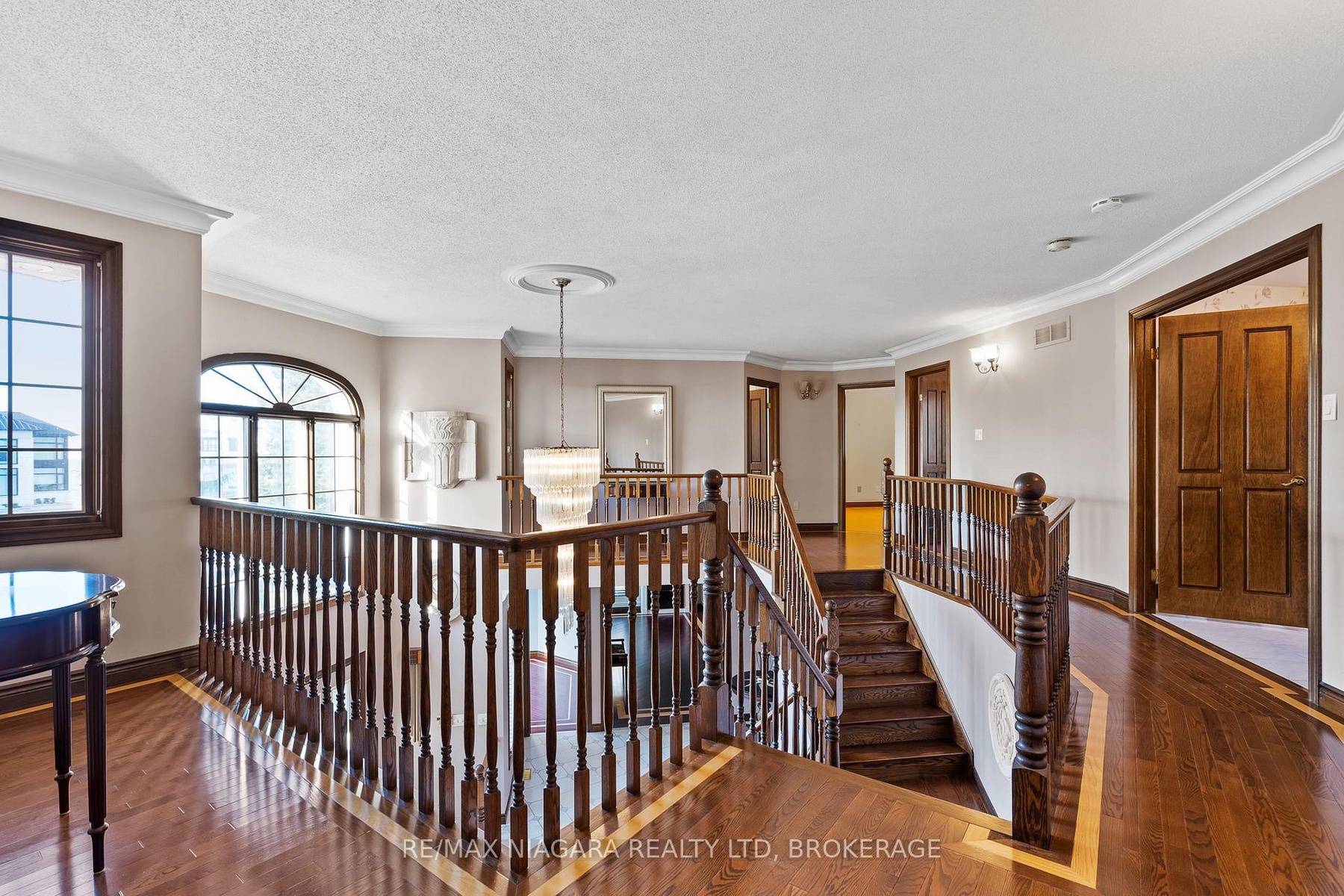 Welcome to the definition of luxury living at 13 Shoreline Crescent in Grimsby, just steps from the water and surrounded by prestigious estate-style homes. With undeniable curb appeal, this exceptional property offers expansive living space with 4 spacious bedrooms, 3 bathrooms, a finished basement, a 3-car garage, and a wrap-around driveway that can accommodate up to approximately 20 additional vehicles. The beautifully landscaped exterior is enhanced by a wrought-iron fence, an in-ground sprinkler system, and a large in-ground pool complete with changing rooms and a pool shed, perfect for entertaining. Inside, a grand dual staircase sets the tone for the sophisticated interior. The main floor features a private office, formal living and dining rooms, a spacious kitchen ideal for hosting, and a large family room with a cozy gas fireplace, along with a stylish 2-piece powder room. Upstairs, the home offers four oversized bedrooms, including a luxurious primary suite with a massive walk-in closet and a spa-like ensuite. The additional bedrooms are generously sized and share a well-appointed main bathroom. The finished basement adds extra living space and includes a rough-in for a future bathroom, offering great potential for further customization. Notable updates include the roof (8 years), furnace (2 years), A/C (3 years), pool pump (2 years), and pool liner (4 years). Perfectly situated near major highways, top-rated schools, scenic lakefront access, and the charming downtown core of Grimsby, this exceptional home offers the ultimate blend of elegance, comfort, and convenience, truly a rare opportunity not to be missed.