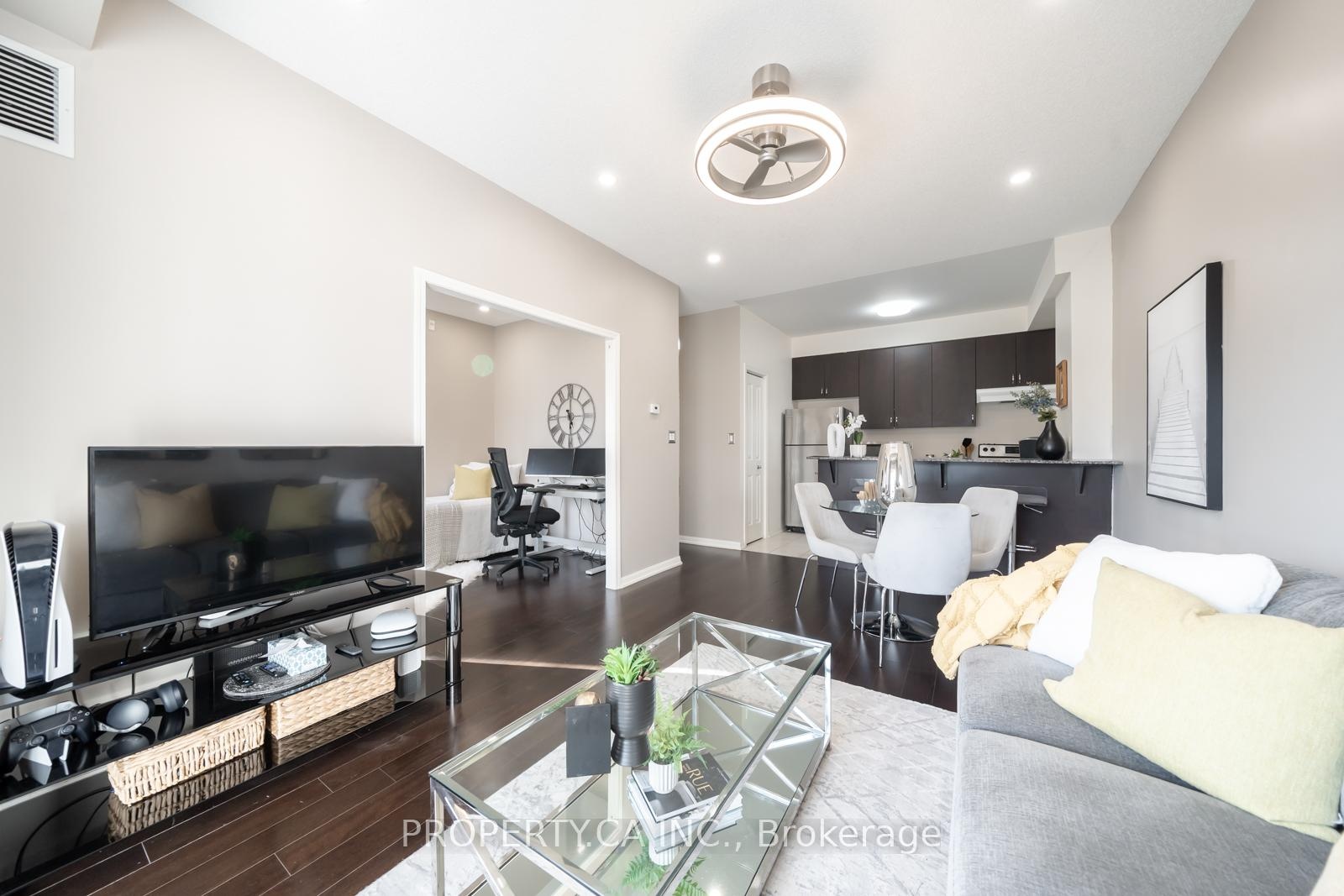 This rarely offered 1-bedroom + massive den suite blends comfort, versatility, and sunlight in one perfect package. With east-facing exposure and large windows throughout, this bright, airy home is filled with natural light from morning to afternoon. The oversized den features windows and ample space, making it ideal for a home office - or easily converted into a full second bedroom. Enjoy almost 800 sqft of space that encapsulates 9-ft ceilings, upgraded light fixtures, and pot lights with dimmers. The modern kitchen boasts granite countertops, a breakfast bar, pantry, and stainless steel appliances, overlooking a spacious living area with a walk-out to your private east-facing patio - perfect for morning coffee or convenient outdoor access for pet owners. The primary bedroom offers laminate floors and a large walk-in closet. Building amenities include a fitness centre, party/meeting room, and visitor parking. Located in the sought-after Aspen Springs community, close to schools, parks, shopping, the recreation centre, and downtown Bowmanville, with quick access to Hwy 401 and the GO Bus. Move-in ready and perfect for first-time buyers, downsizers, or investors!