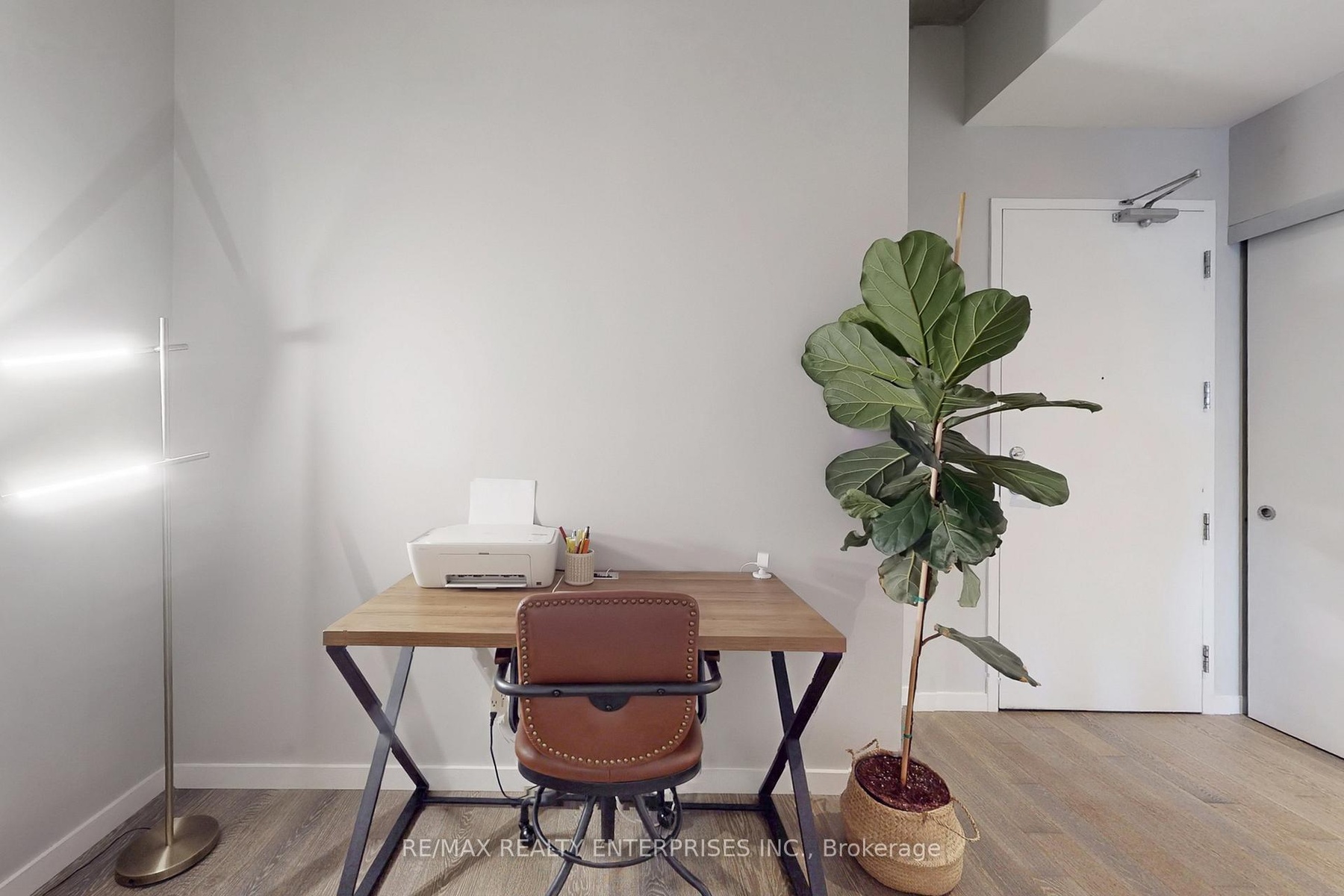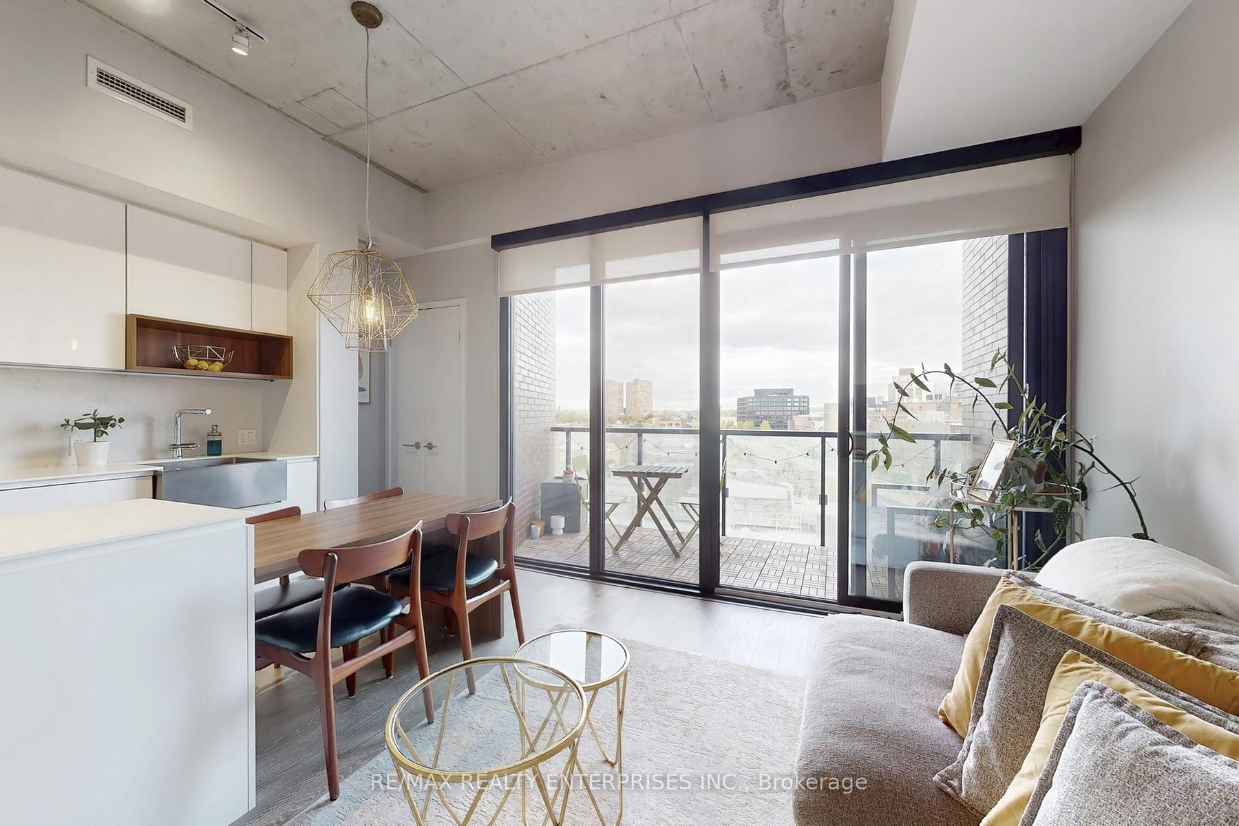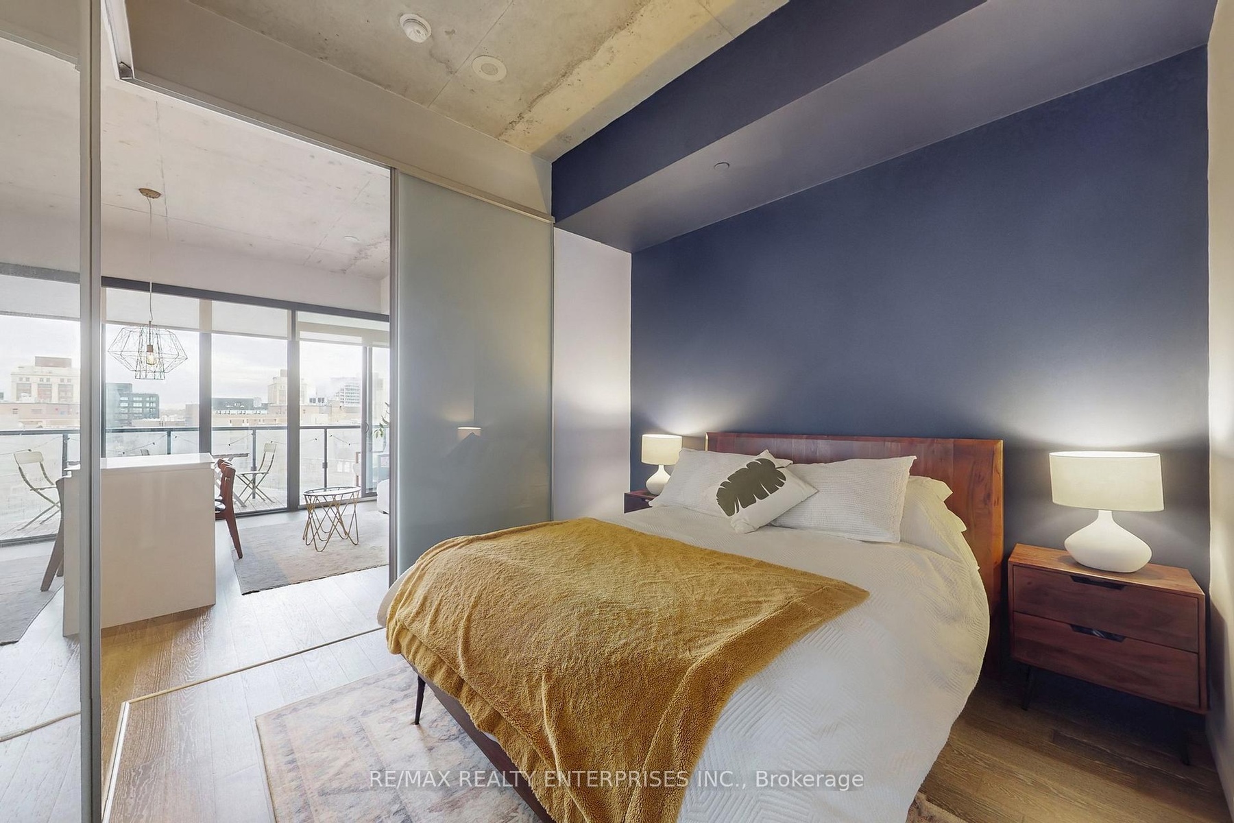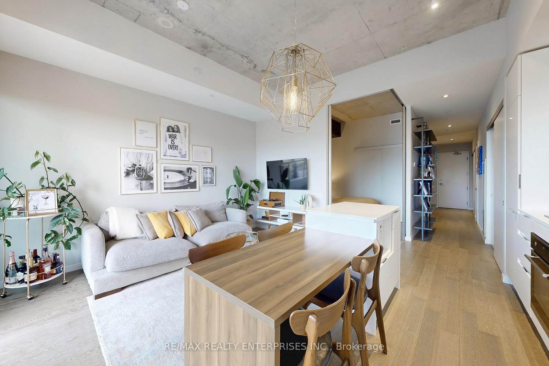 Welcome to 383 Sorauren Ave #808 - where industrial edge meets everyday ease in the heart of Roncesvalles. This 1+D unit comes with 1 Bath and locker. Parking is available for rent (owner can transfer to new tenant). From the moment you step inside, you'll feel the calm confidence of a space designed for modern city living. Exposed concrete ceilings stretch high above an airy open-concept layout, while floor-to-ceiling windows flood the home with soft northern light and sweeping urban views. The kitchen is sleek yet soulful - complete with integrated appliances, an industrial stainless sink, and a full island that invites conversation as easily as it hosts dinner. The bedroom feels like a peaceful hideaway, with expansive glass, generous storage, and direct access to a spa-inspired bath - a rare luxury in one-bedroom layouts. The versatile den gives you options: a home office, reading nook, or cozy guest space. Step outside your door and you're minutes from Sorauren Park farmers' markets, Roncy cafés, and High Park's trails. Every element of this home celebrates balance - design and warmth simplicity and comfort, work and rest.