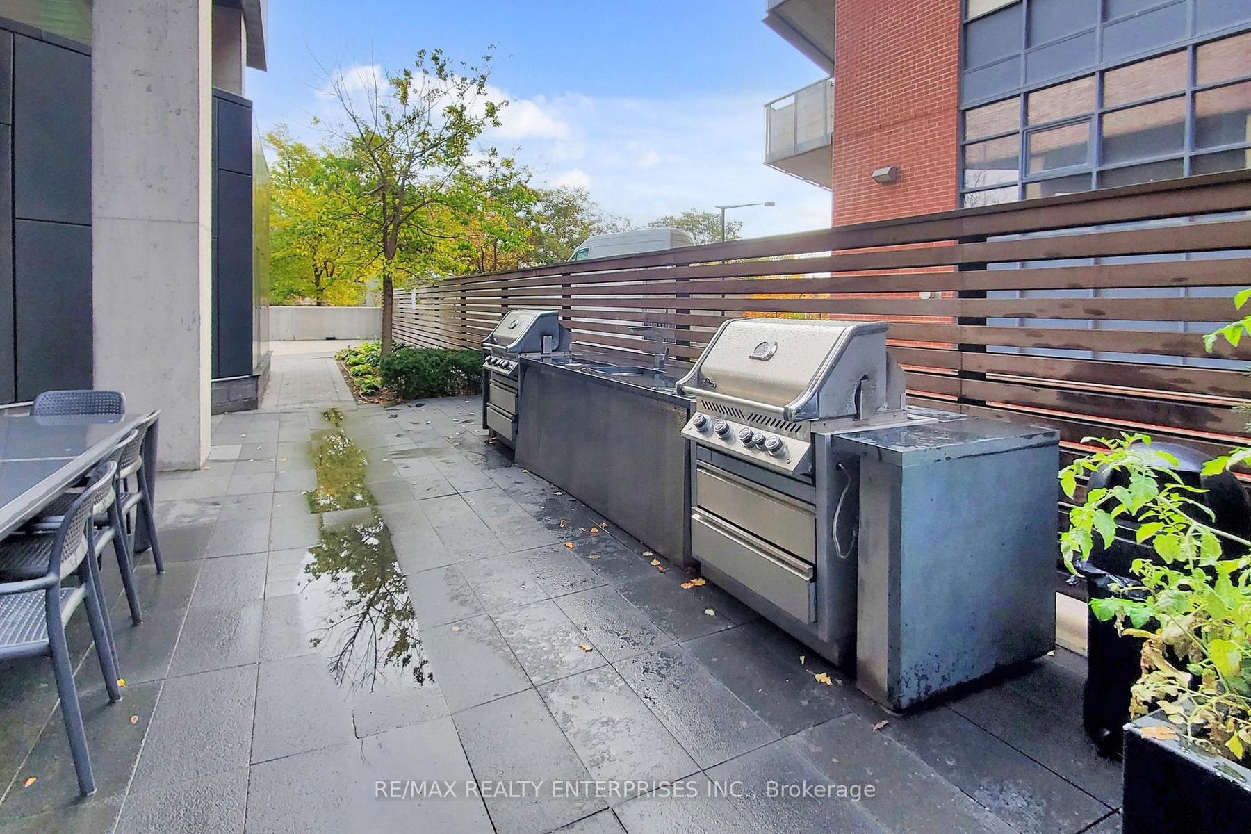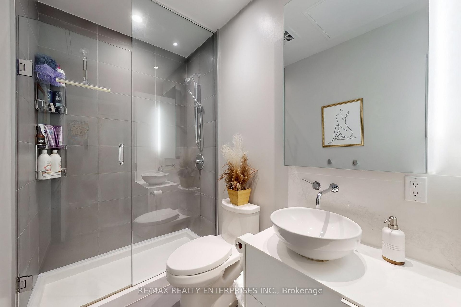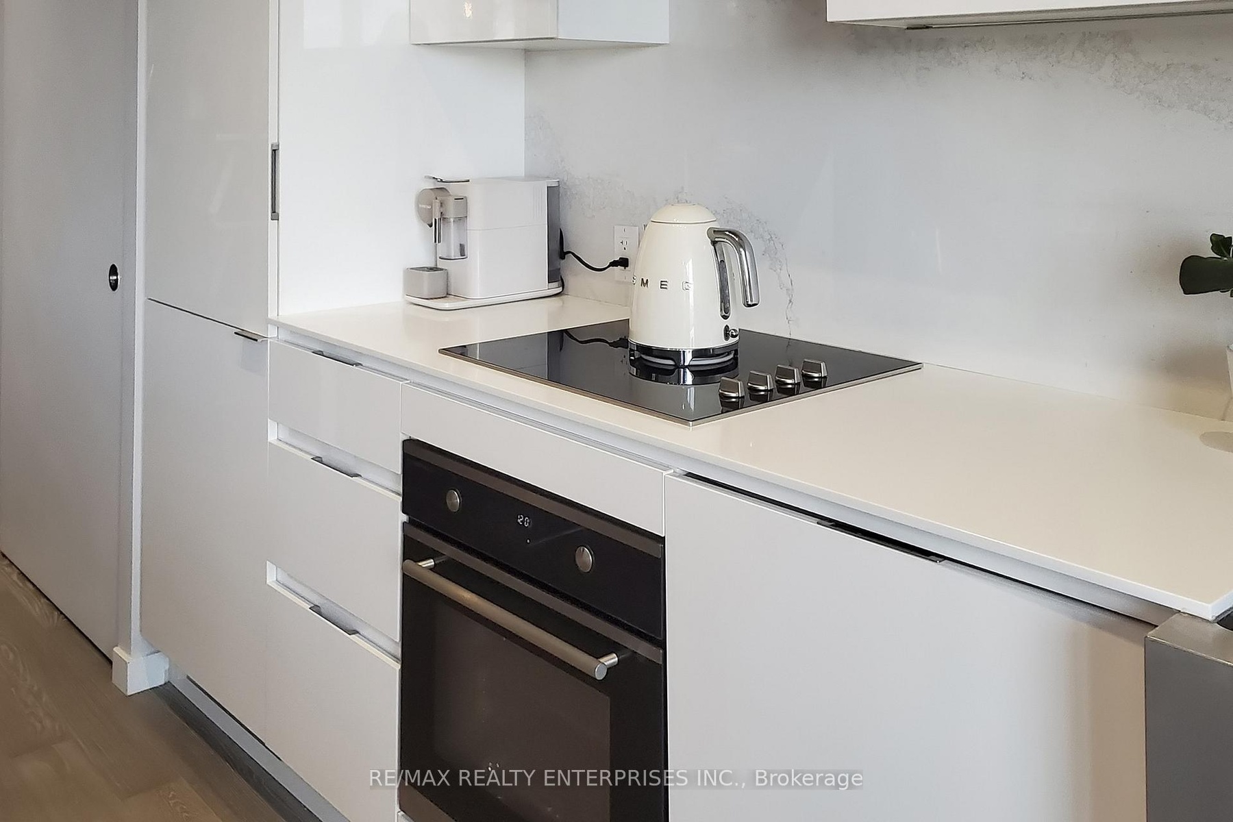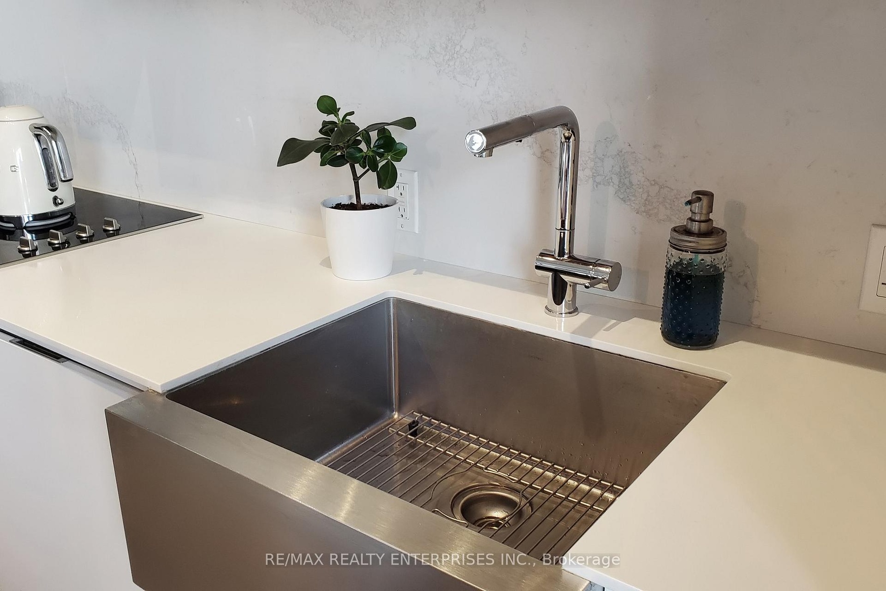 Welcome to 383 Sorauren Ave #808 - where industrial edge meets everyday ease in the heart of Roncesvalles. This 1+D unit comes with 1 Bath and locker. Parking is available for rent (owner can transfer to new tenant). From the moment you step inside, you'll feel the calm confidence of a space designed for modern city living. Exposed concrete ceilings stretch high above an airy open-concept layout, while floor-to-ceiling windows flood the home with soft northern light and sweeping urban views. The kitchen is sleek yet soulful - complete with integrated appliances, an industrial stainless sink, and a full island that invites conversation as easily as it hosts dinner. The bedroom feels like a peaceful hideaway, with expansive glass, generous storage, and direct access to a spa-inspired bath - a rare luxury in one-bedroom layouts. The versatile den gives you options: a home office, reading nook, or cozy guest space. Step outside your door and you're minutes from Sorauren Park farmers' markets, Roncy cafés, and High Park's trails. Every element of this home celebrates balance - design and warmth simplicity and comfort, work and rest.
