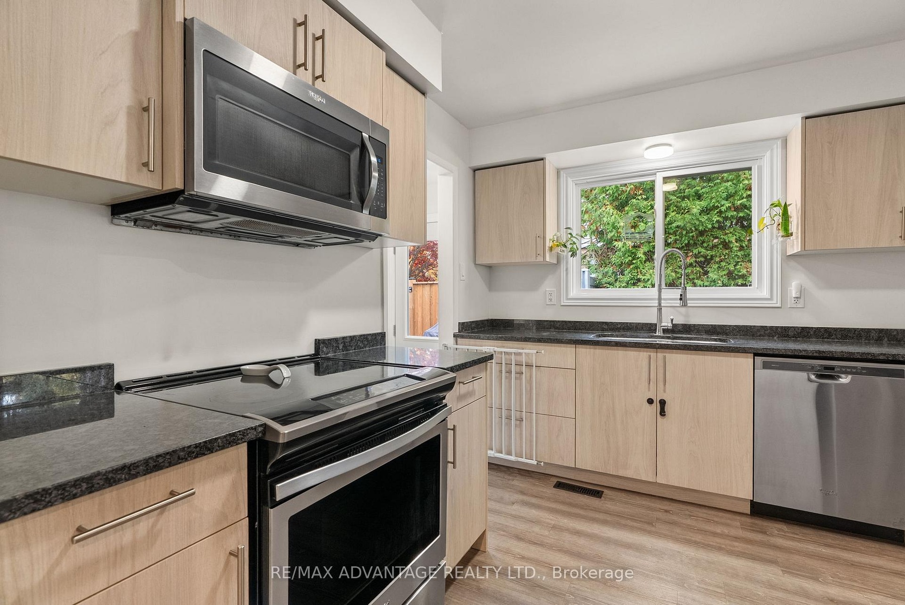 This beautifully renovated 4-level backsplit is truly move-in ready, offering the perfect blend of modern updates and long-term peace of mind. Situated in a family-friendly neighbourhood, this home has been completely finished on all levels-including a bright lower-level with high ceilings and large windows. You'll appreciate the consistent, high-quality design throughout. The custom kitchen features timeless cabinetry, granite countertops, and stainless-steel appliances, opening to a bright main level with durable luxury vinyl plank flooring and pot lights that create a warm, welcoming atmosphere. Unlike most, this home has undergone not only cosmetic updates but major system and structural improvements: Updated Roof, Eaves, Soffits & Fascia (2021), All new Windows & Doors (2024) with a Transferable Lifetime Warranty, New AC and Thermostat (2025), Updated Electrical Panel and full conversion from aluminum to Copper Wiring (120-amp service), New fencing and Vinyl Gate (2022), Attic Insulation Upgrade (2022), Fresh Paint (2025), washer & dryer, and bathroom fans replaced for improved ventilation. The private side entry provides easy access to the lower level, ideal for a home office or in-law setup. Outside, enjoy a fully fenced backyard with trees for privacy, gazebo, plus a private driveway with space for multiple vehicles. All of this located steps from park, schools, Argyle Mall, minutes to the downtown core and the 400 series highways. This home has been thoughtfully updated-simply unpack, settle in, and enjoy!